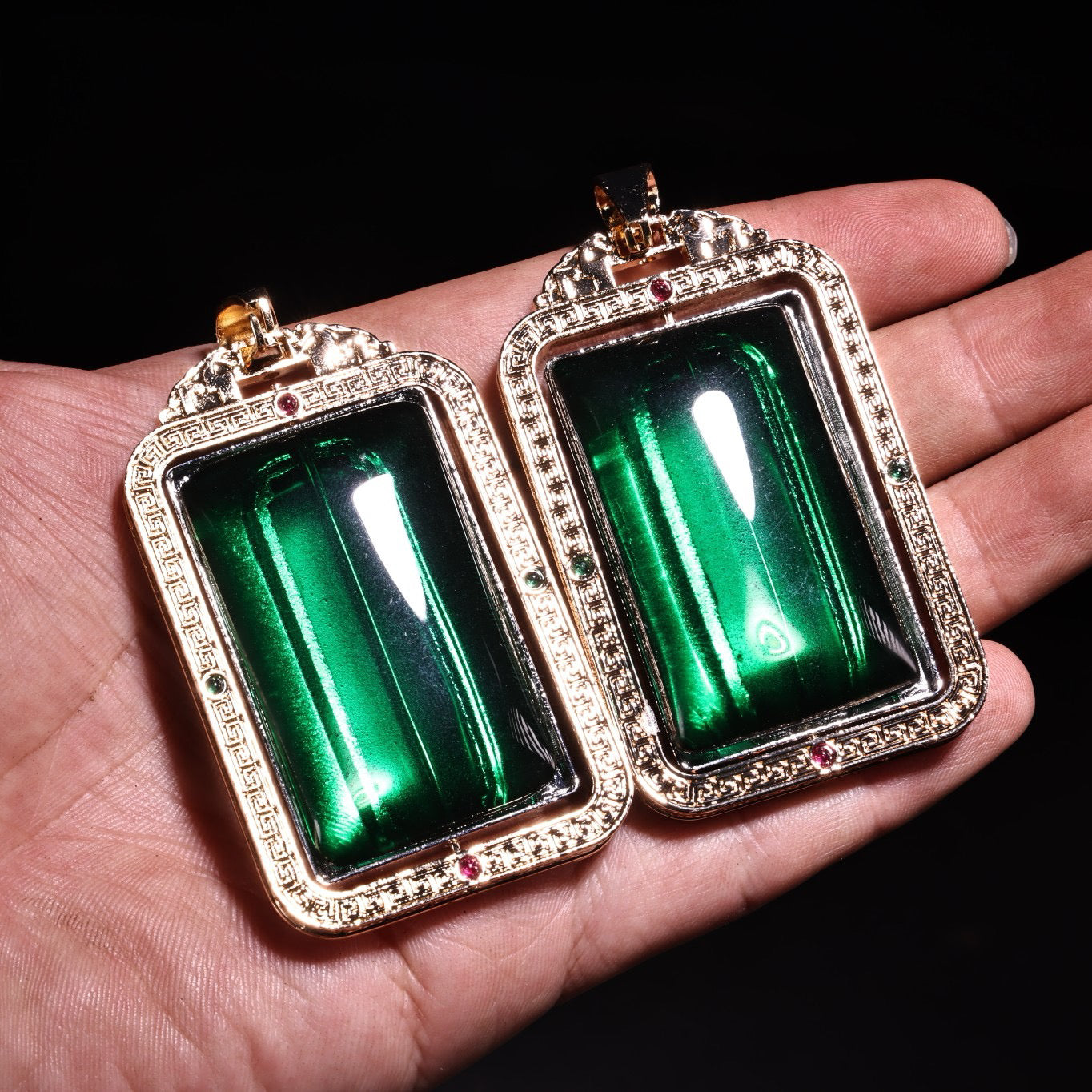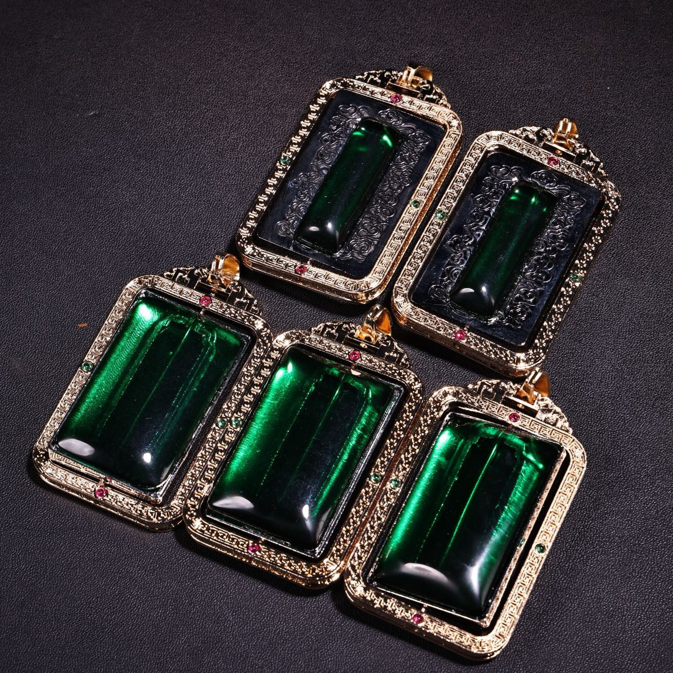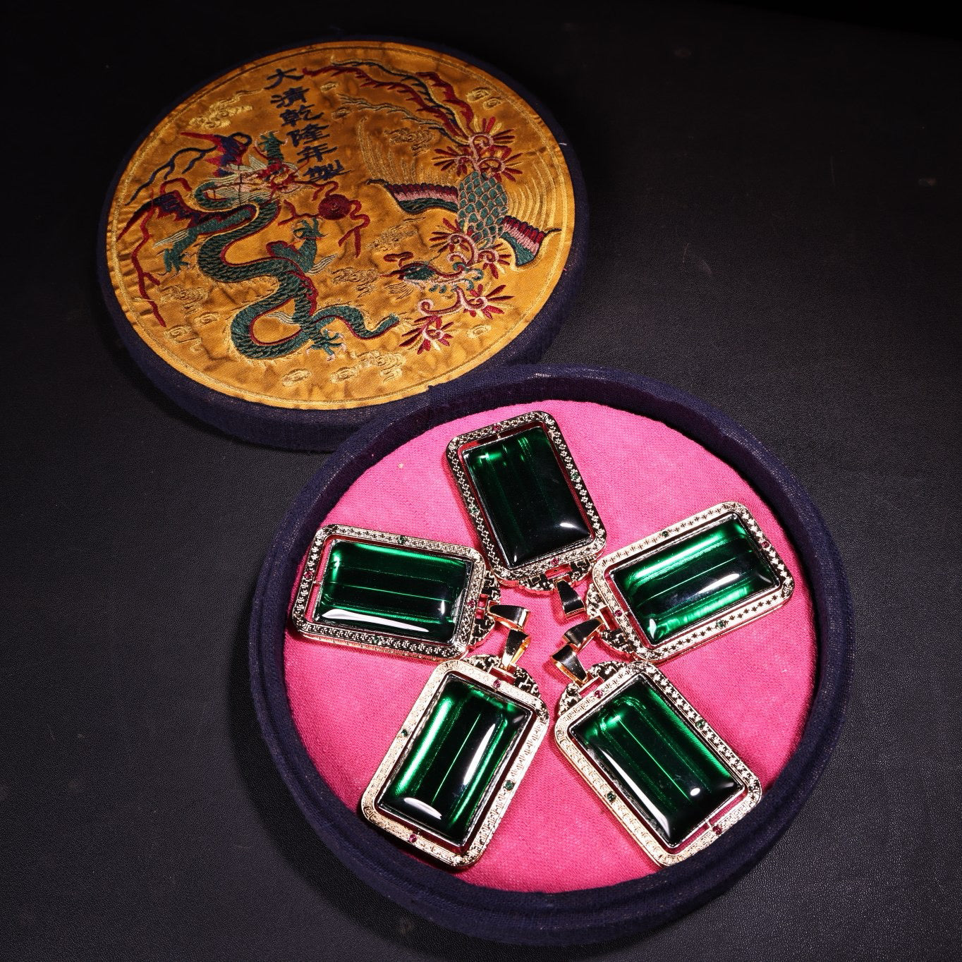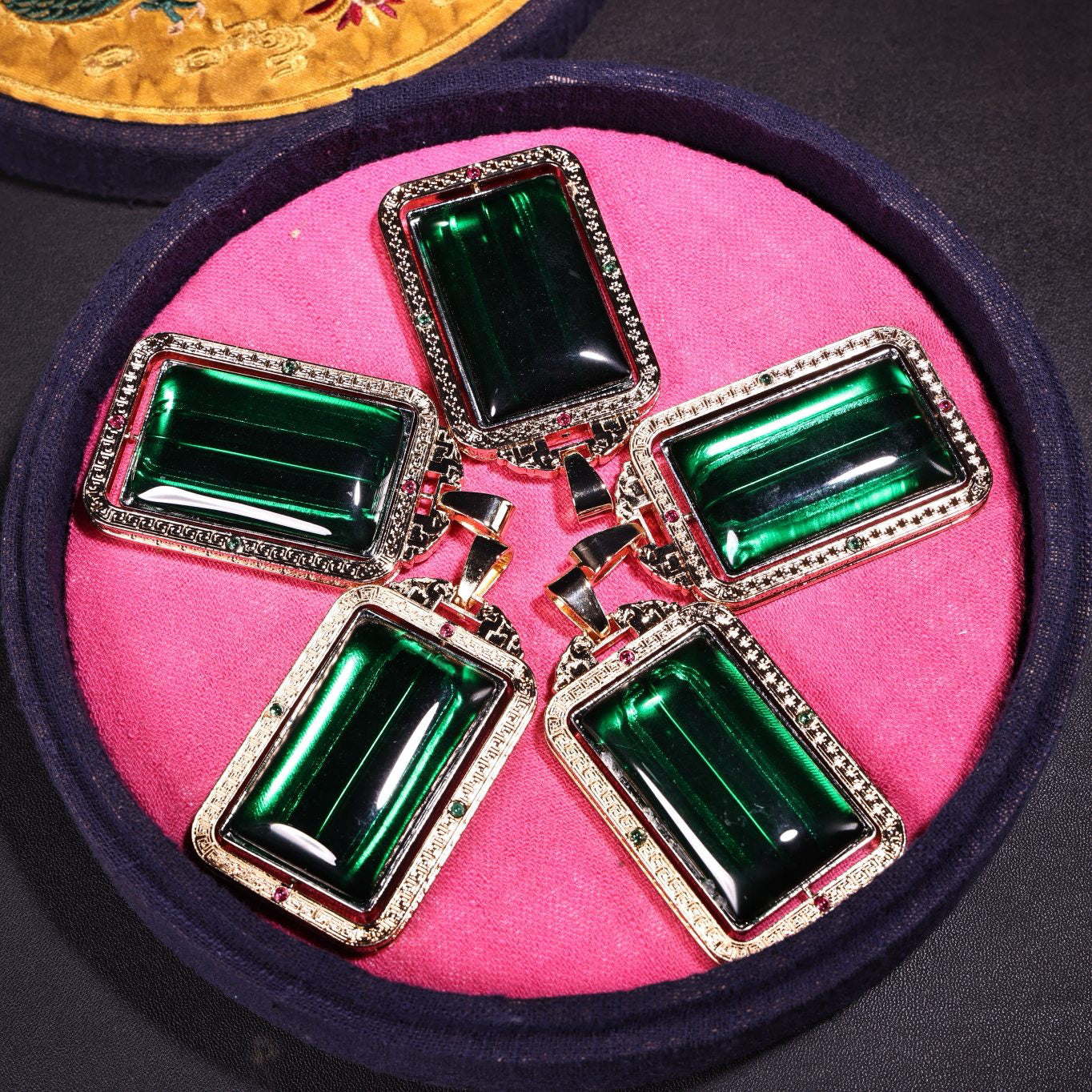 A box of Chinese antique emerald transport rackets