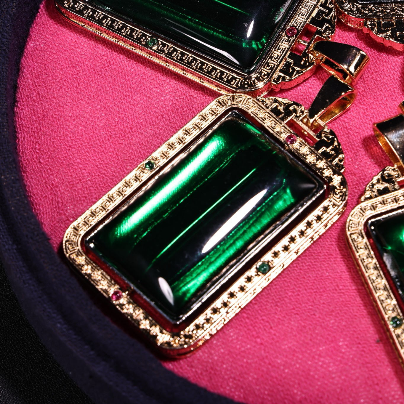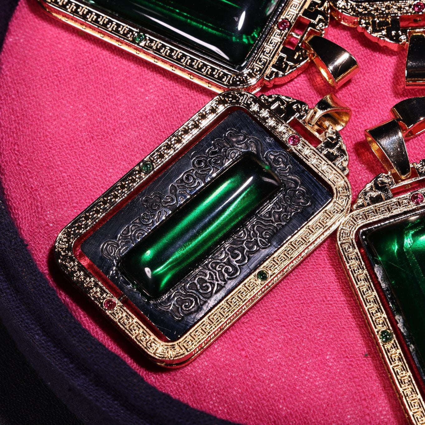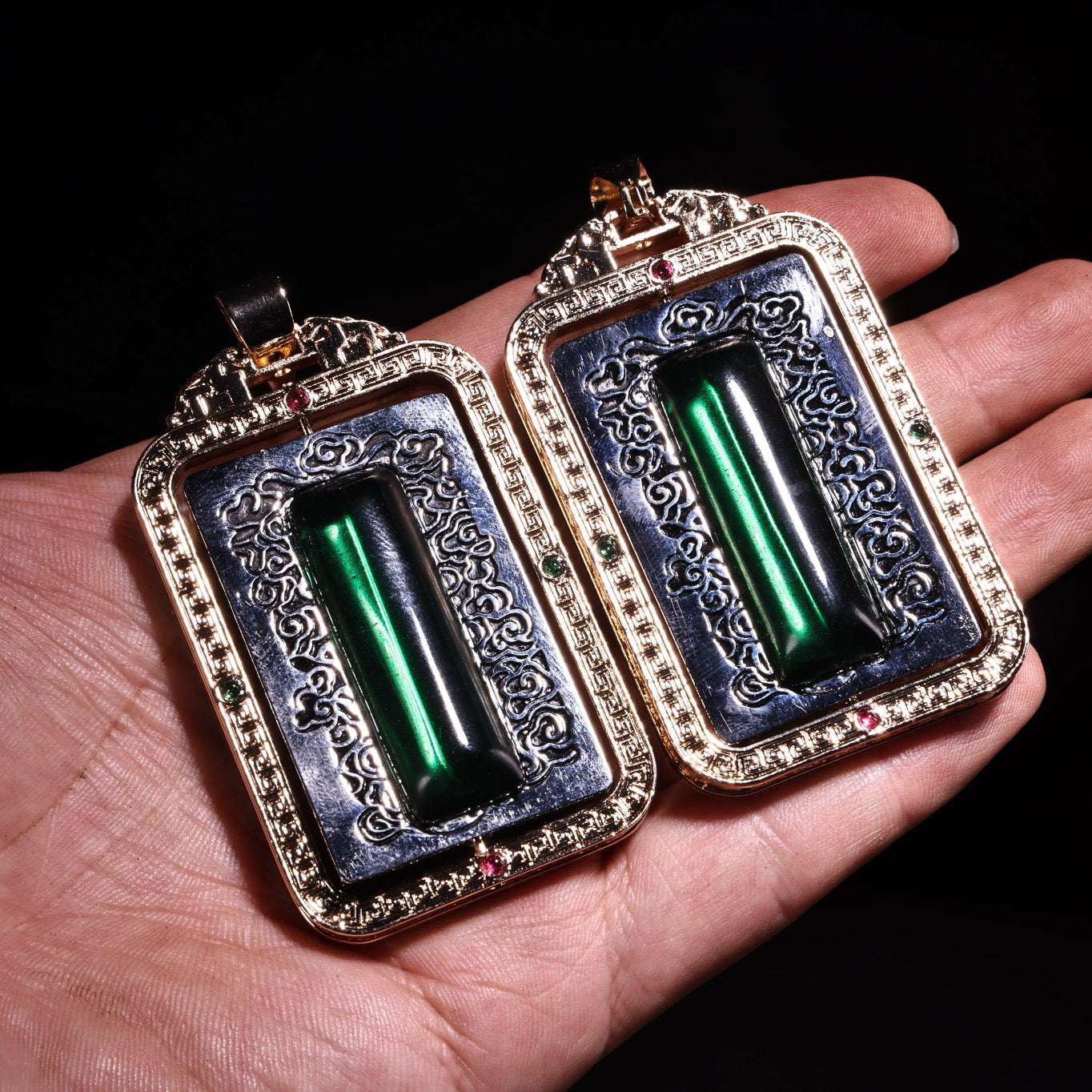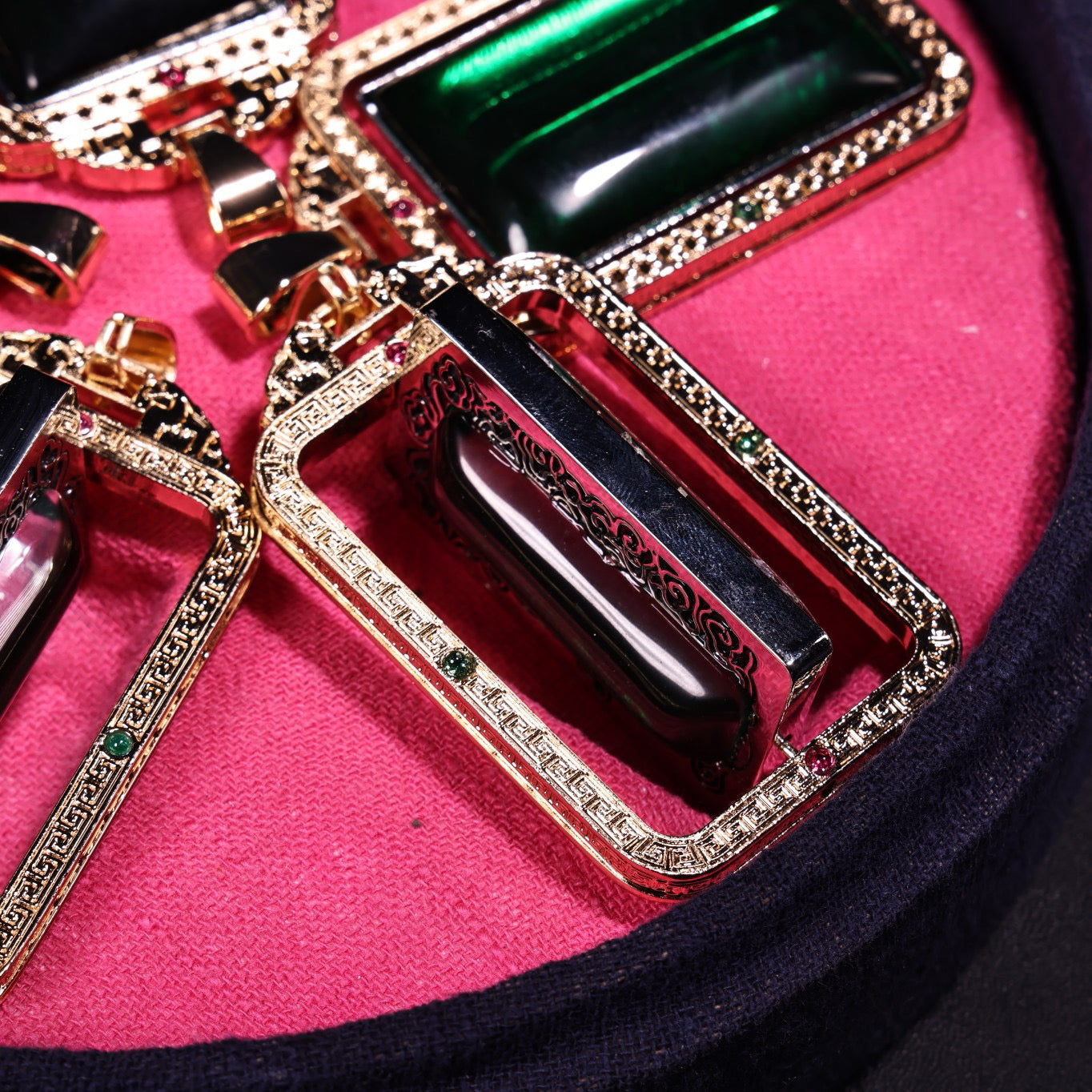 A box of Chinese antique emerald transport rackets