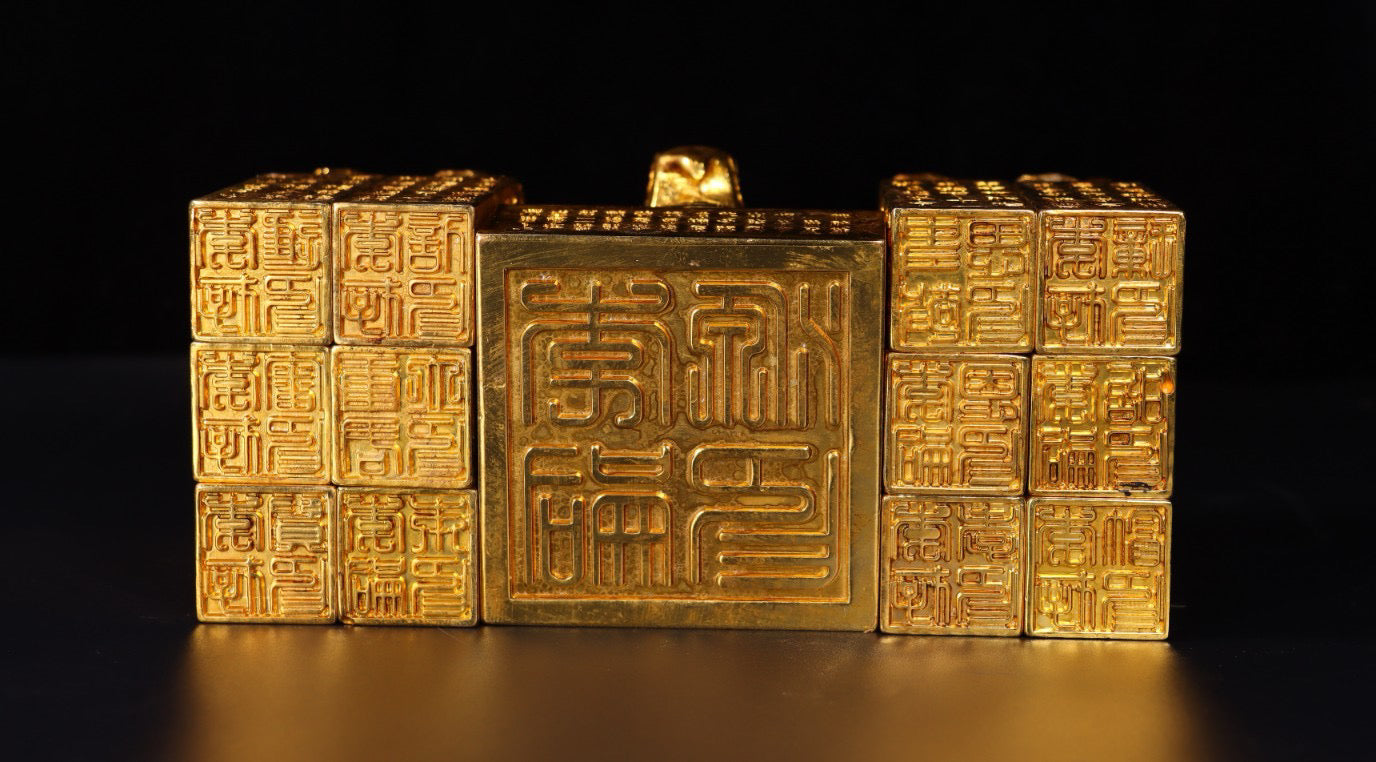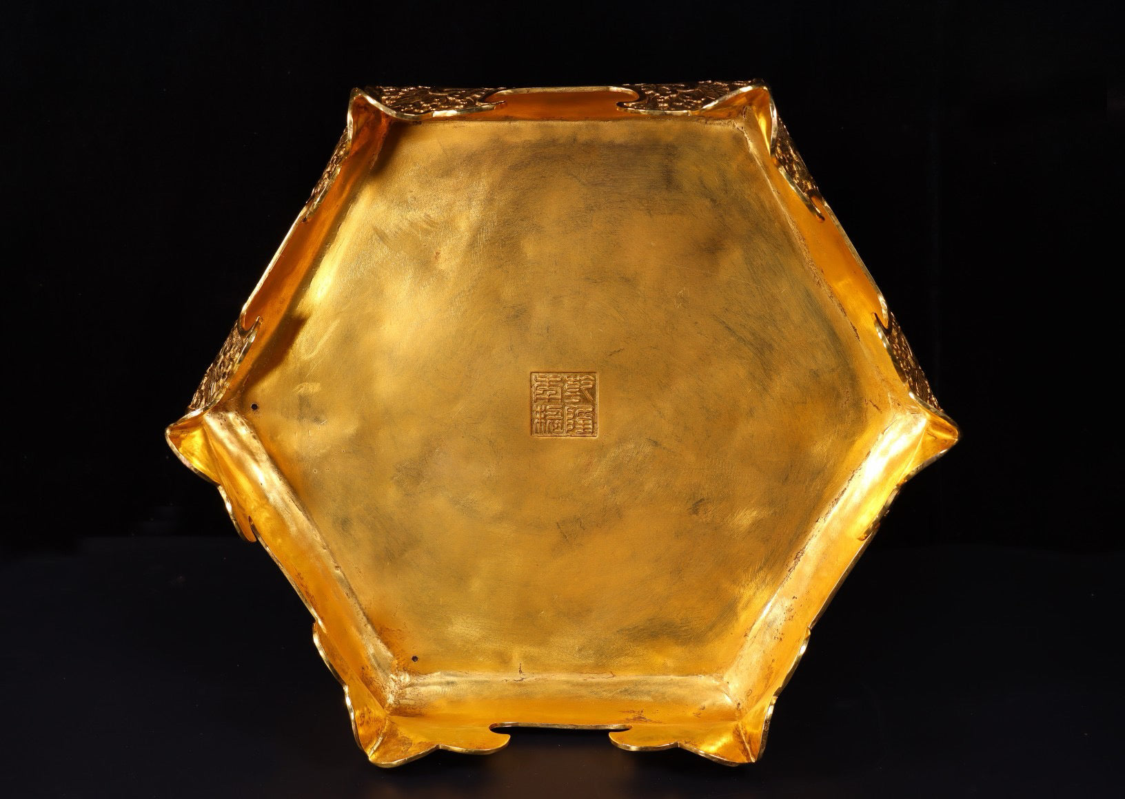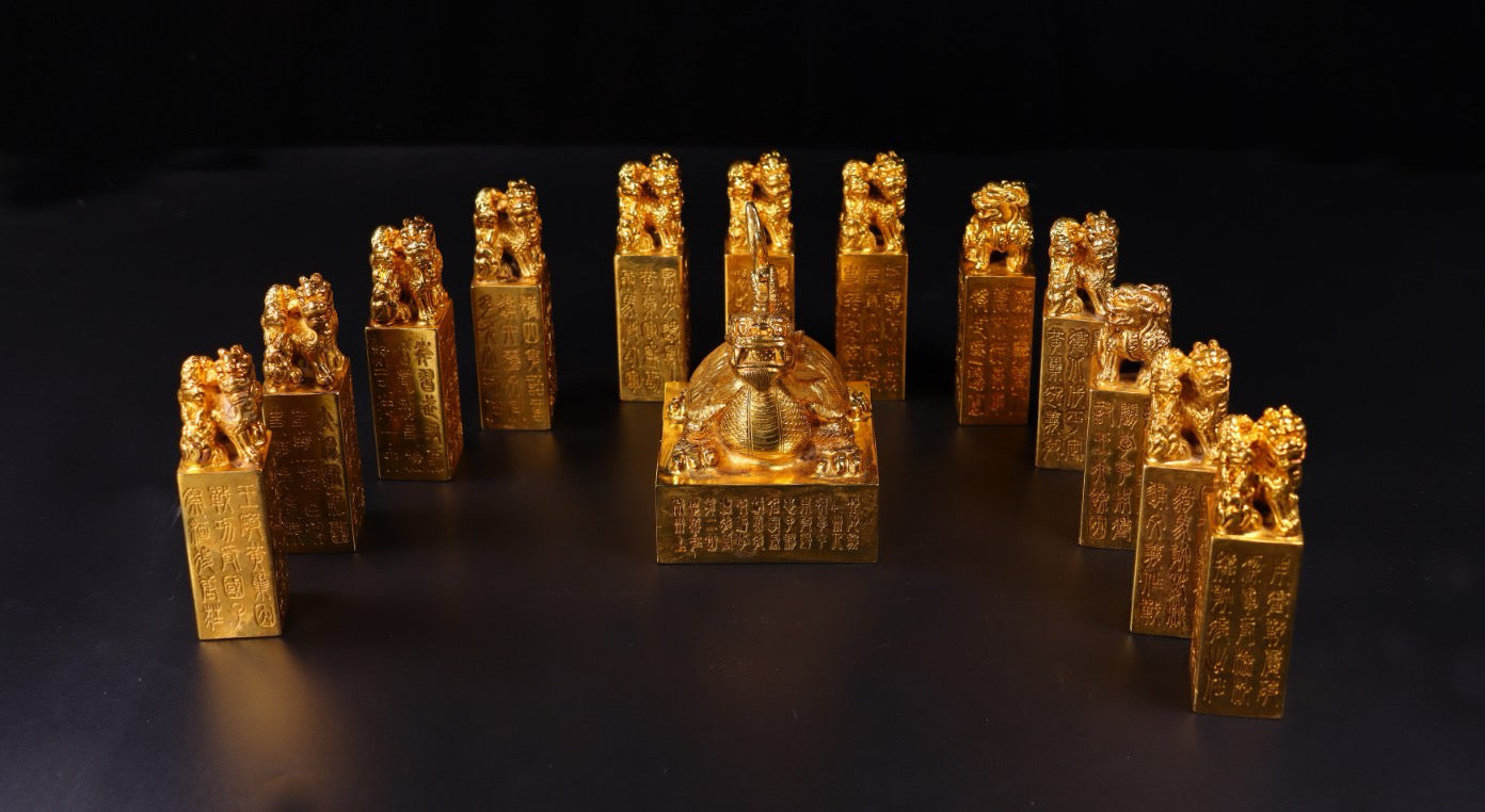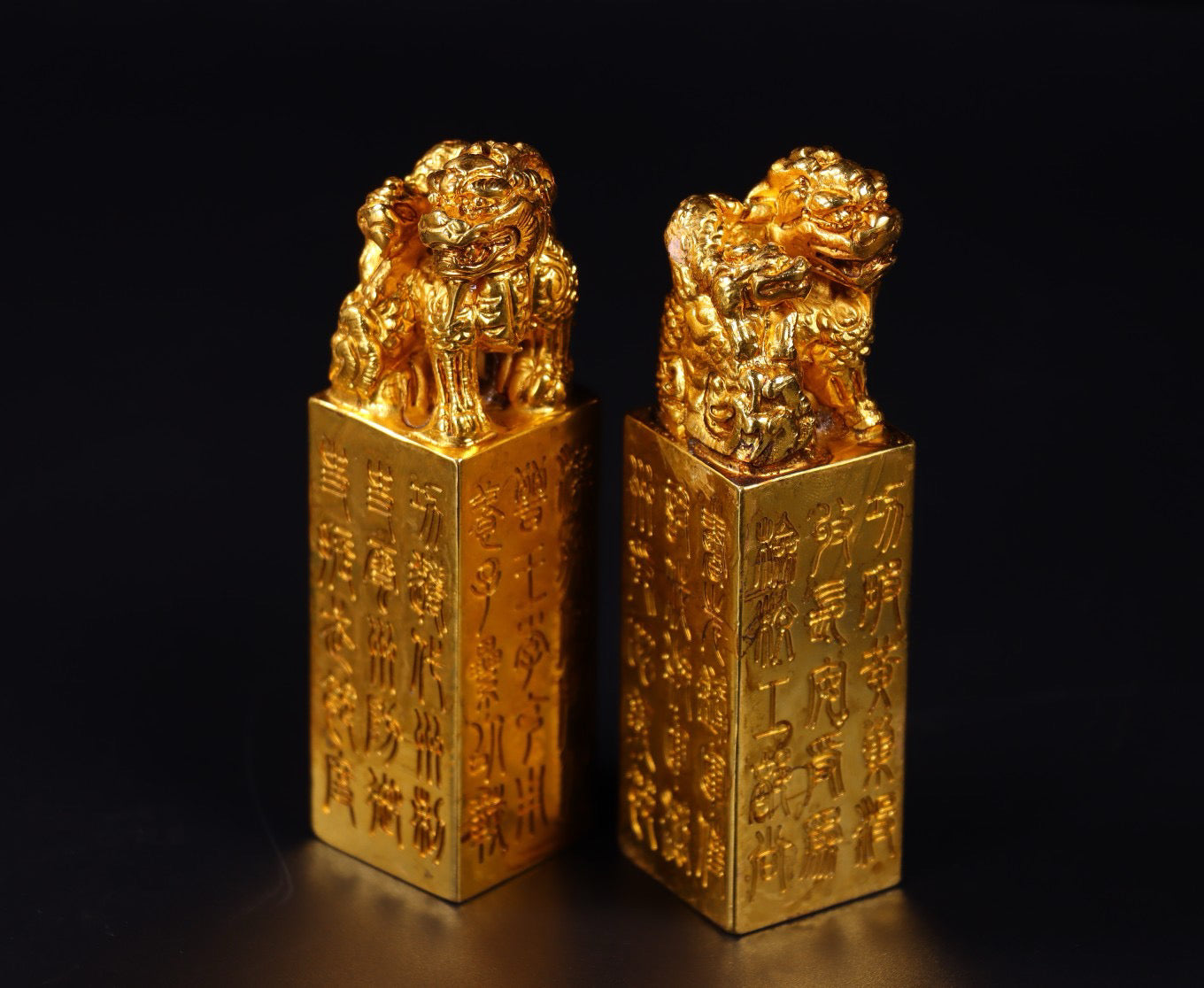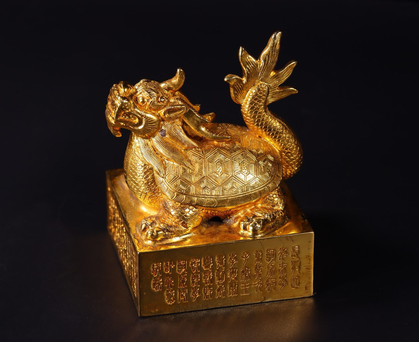 A box of Chinese antiques handcrafted with copper gilded high relief carving and carving of the "Thirteen Taibao" seal