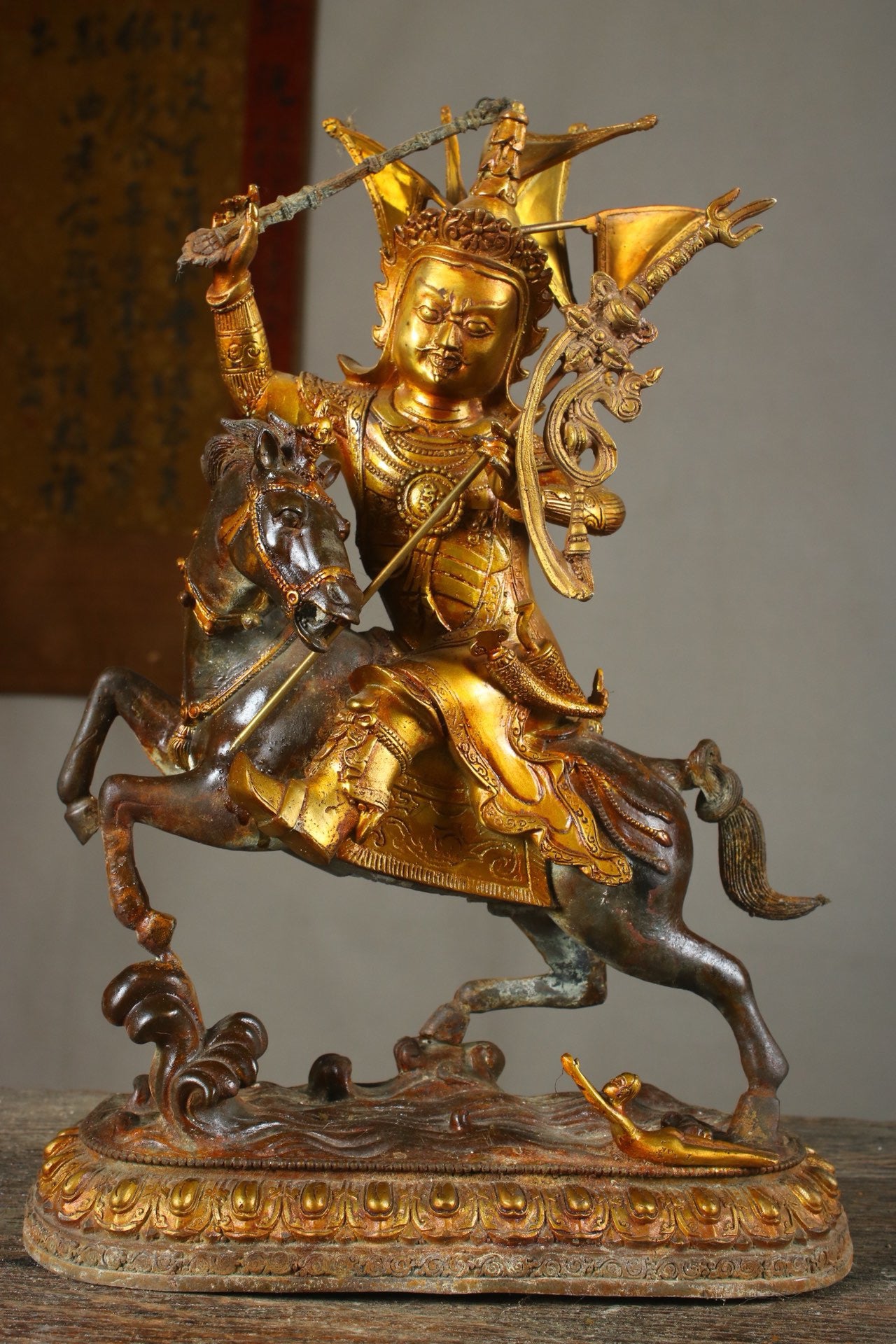 A Chinese antique bronze gilded handmade exquisite horse protector