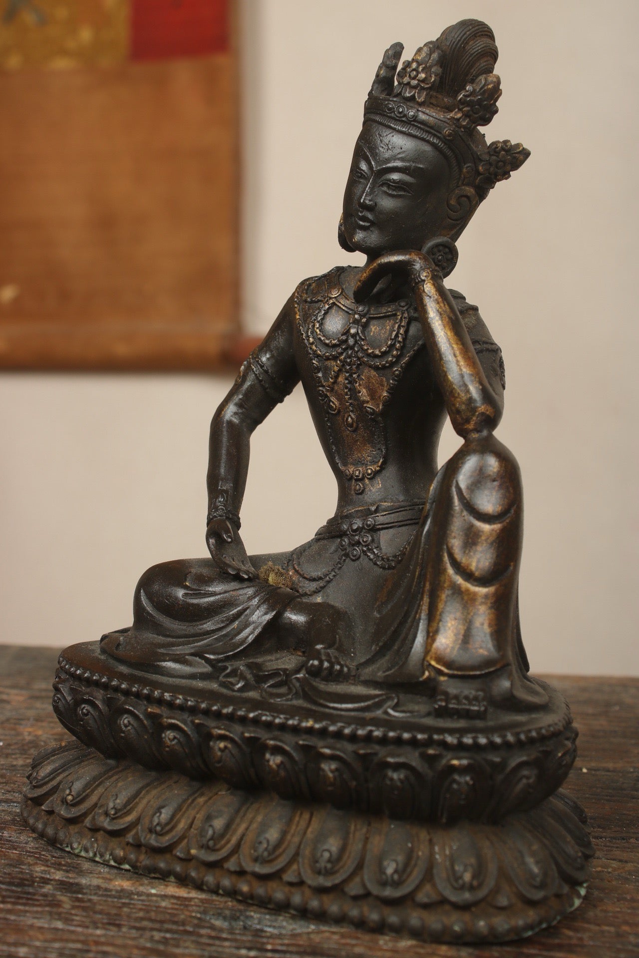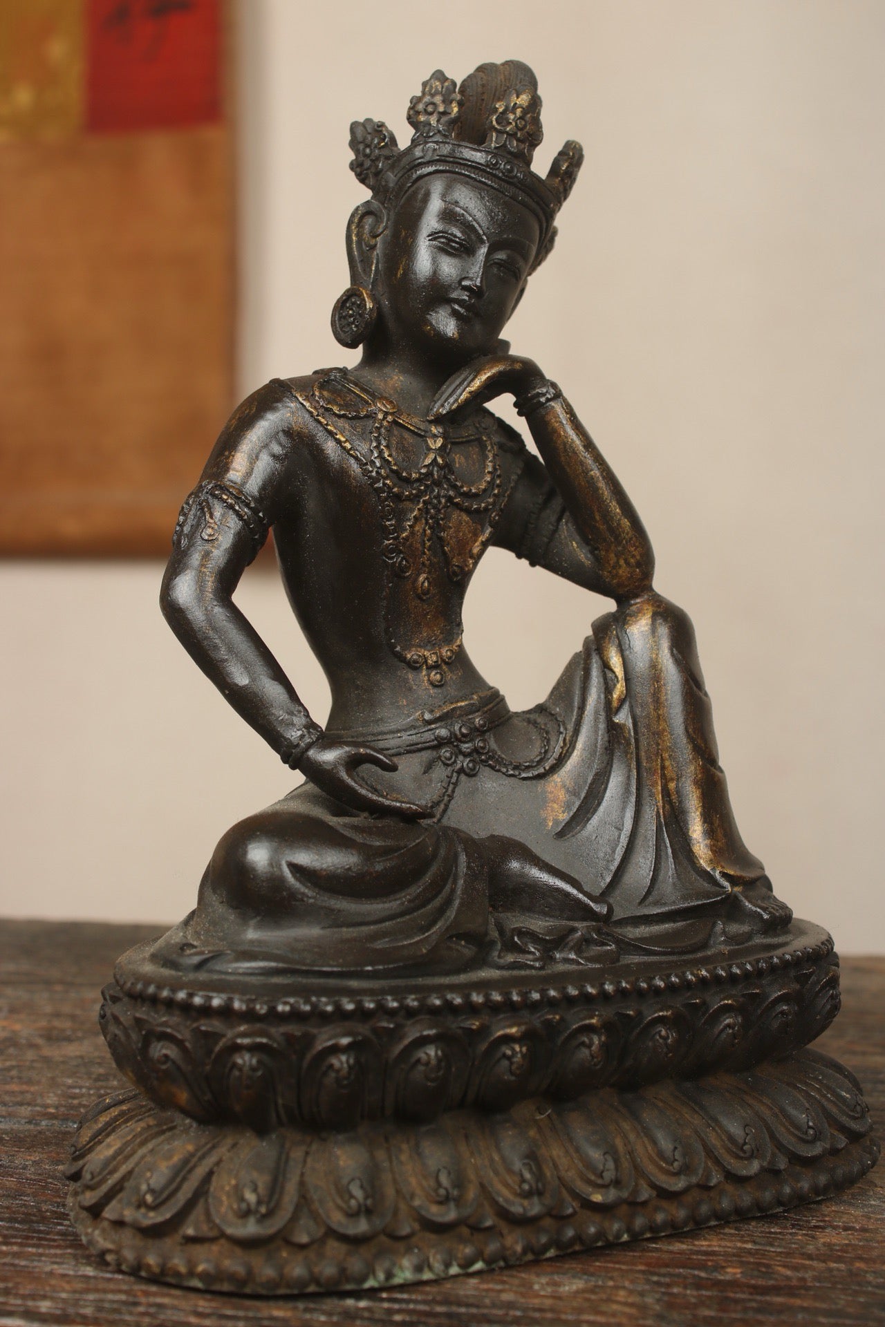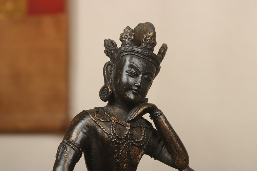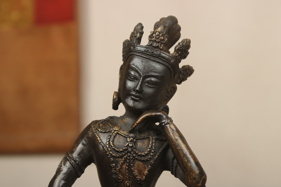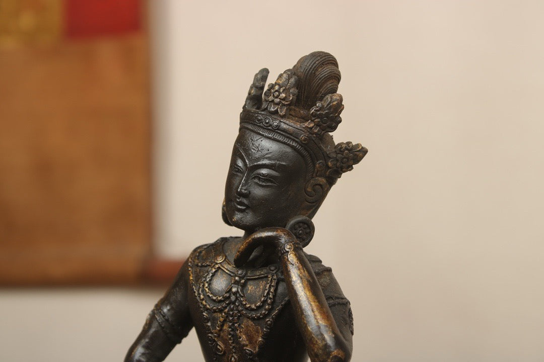 A Chinese antique bronze gilded handmade statue of the Mind Bodhisattva
