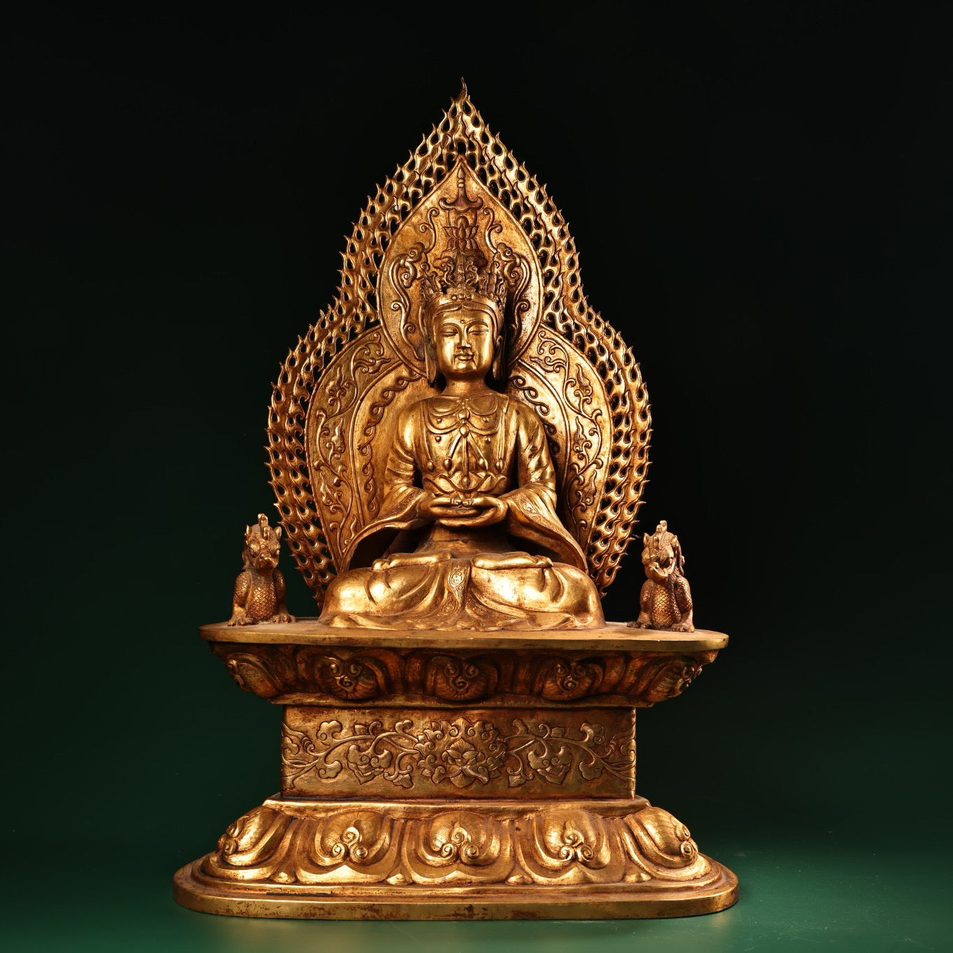 A Chinese antique pure copper high relief carved with gilded immeasurable longevity Buddha