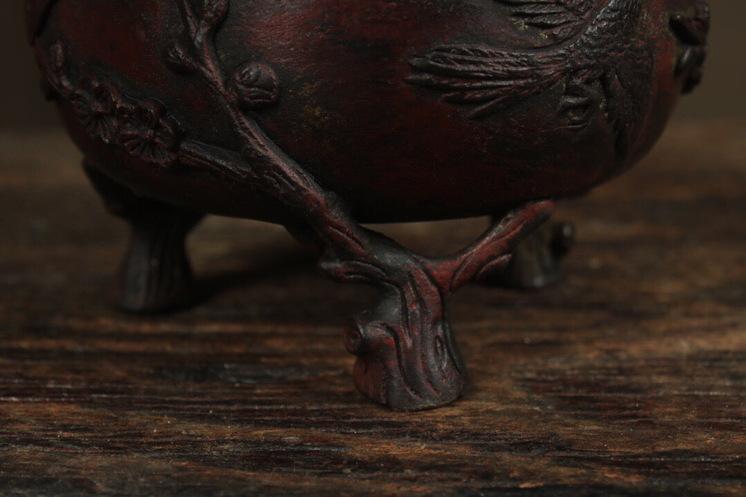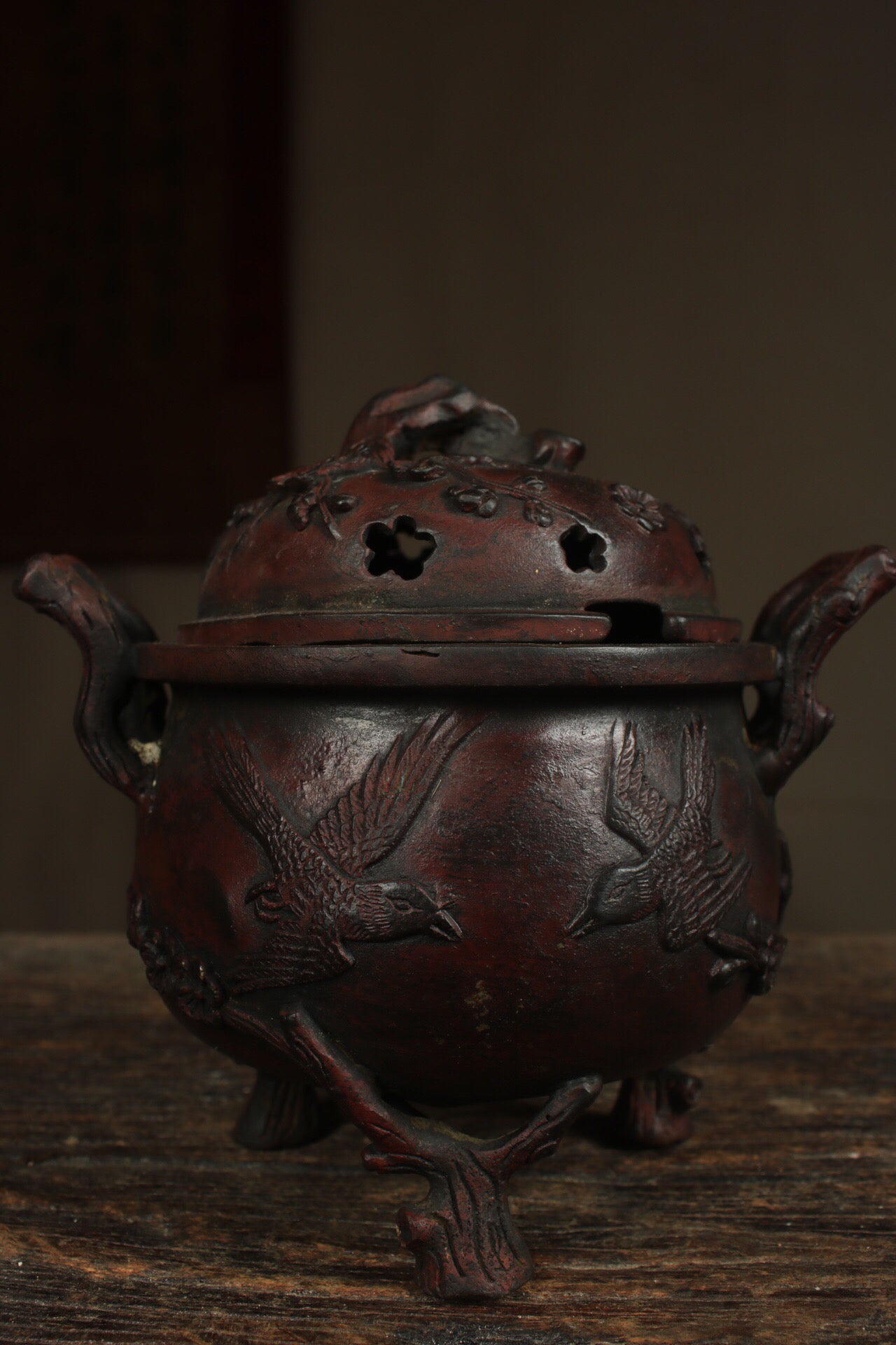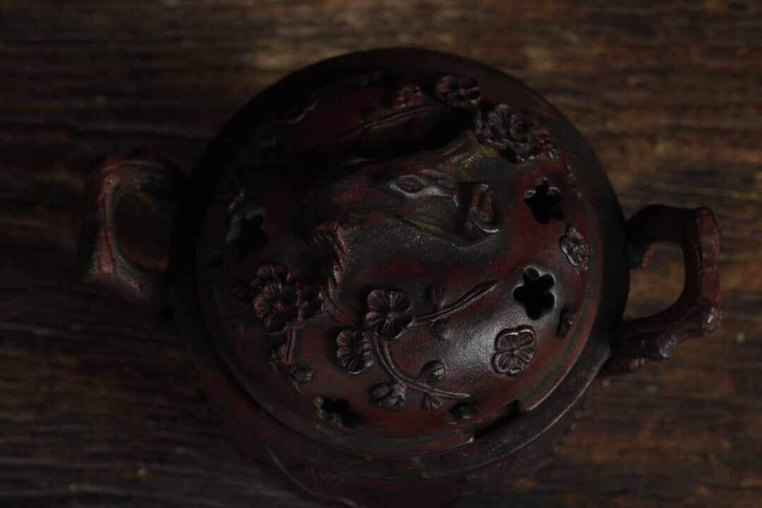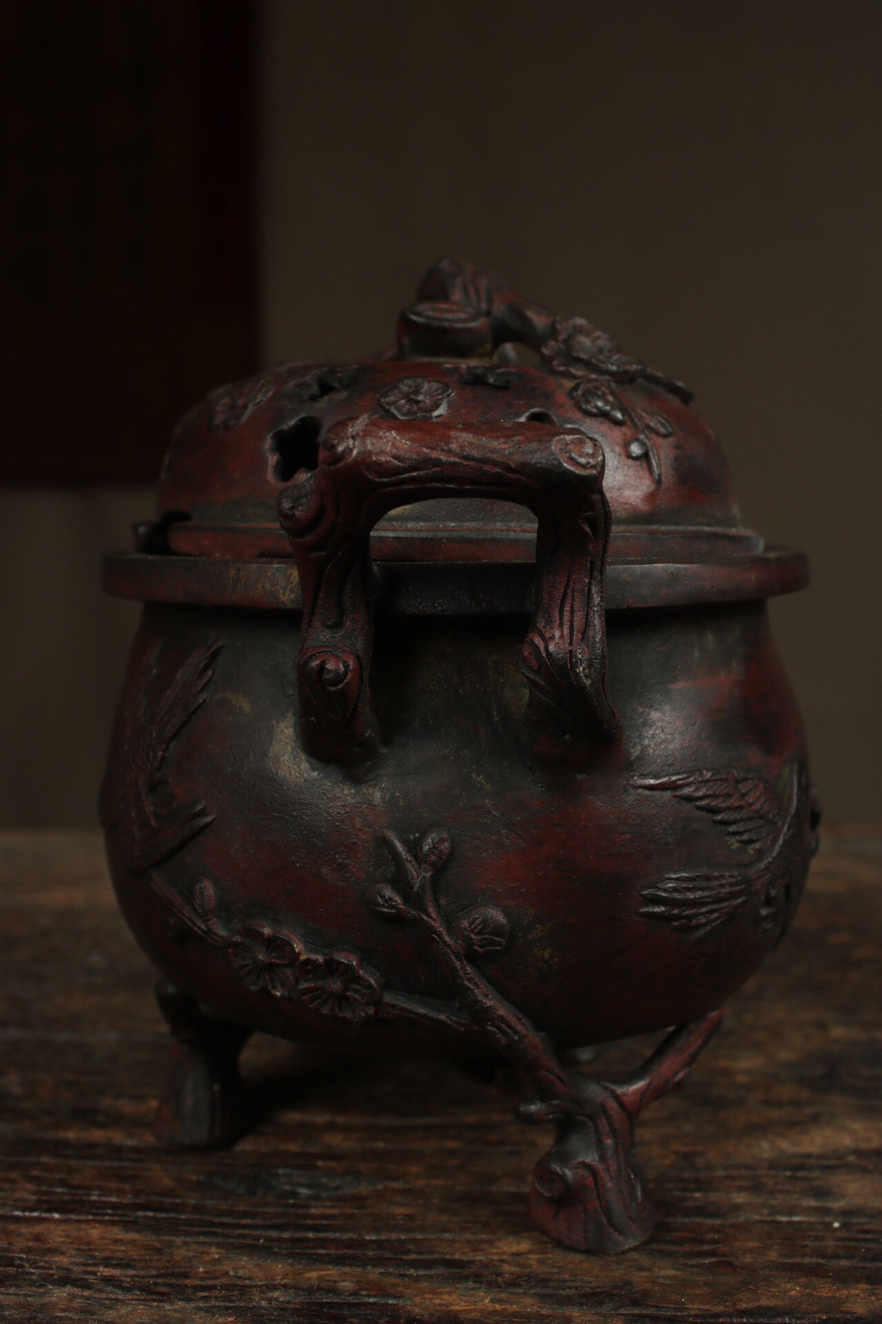 A Chinese antique pure copper incense burner with delighted eyebrows