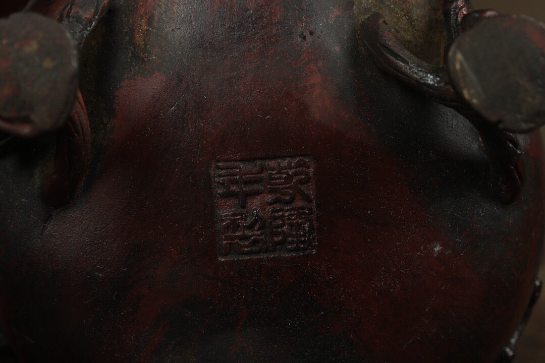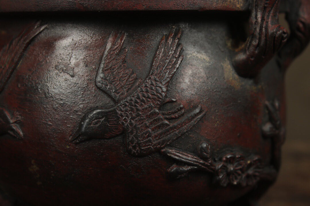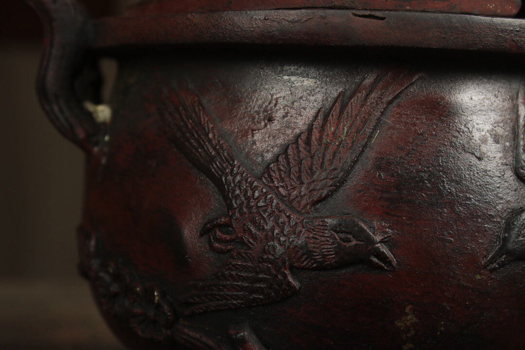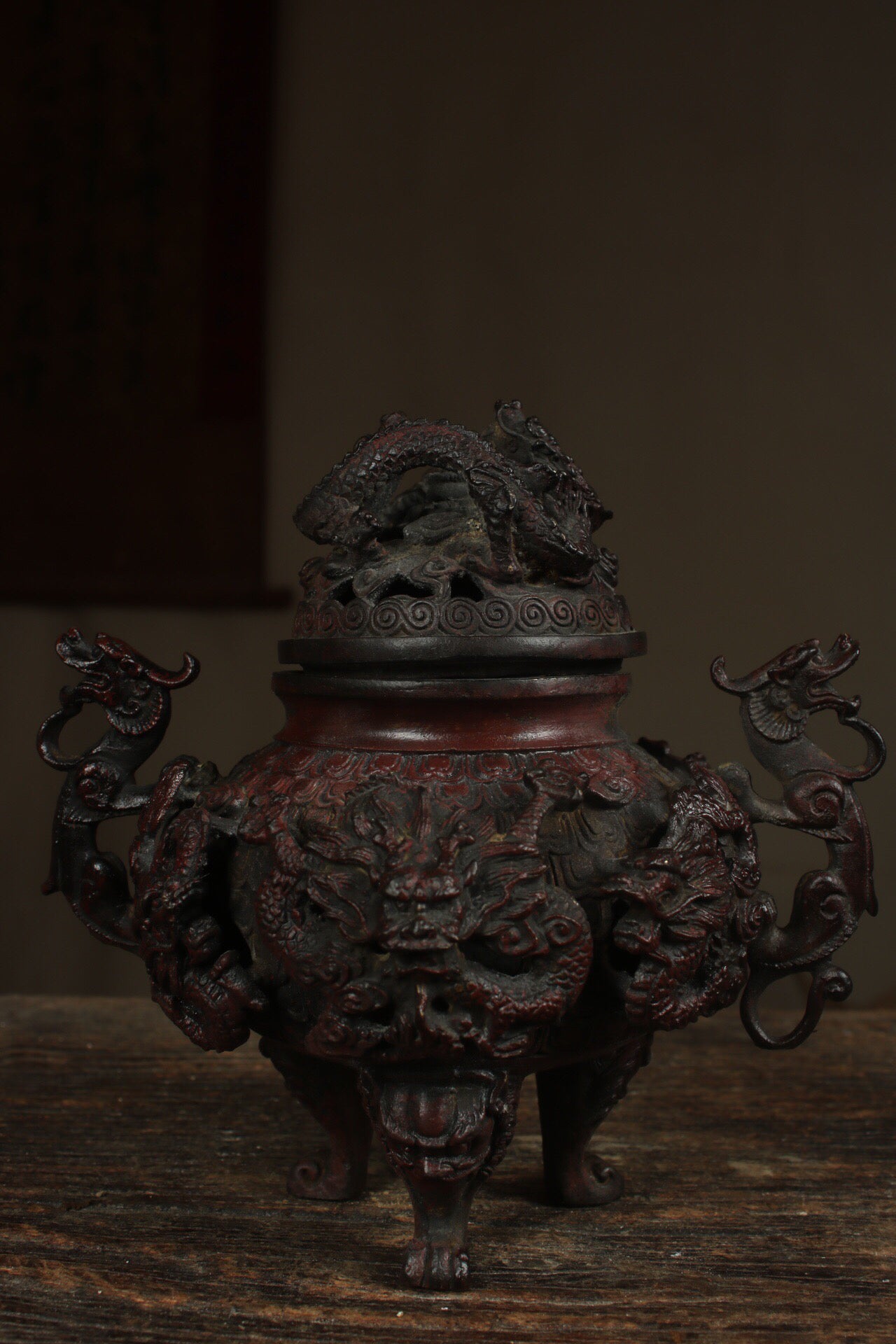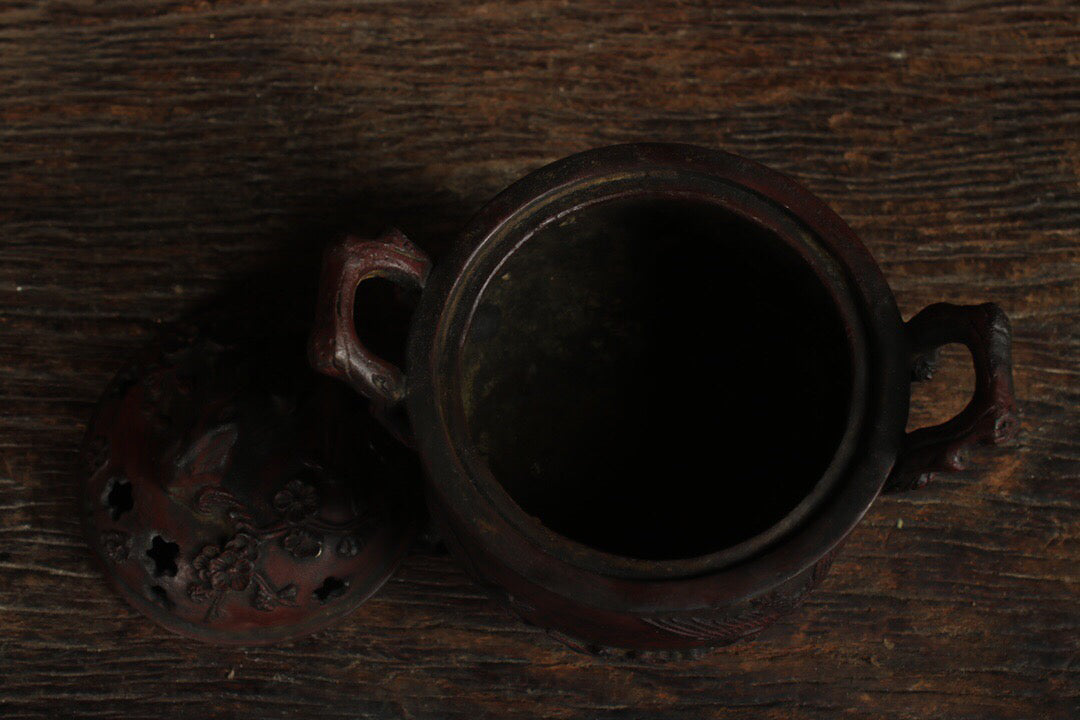 A Chinese antique pure copper incense burner with delighted eyebrows