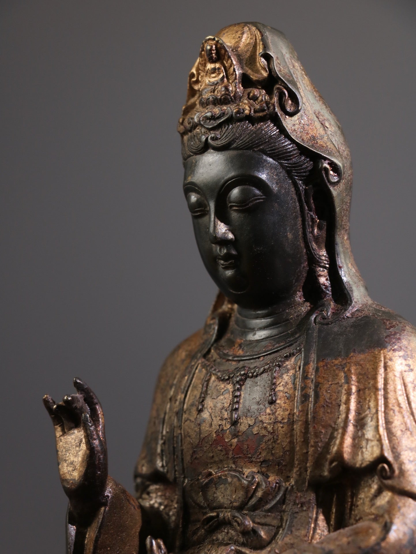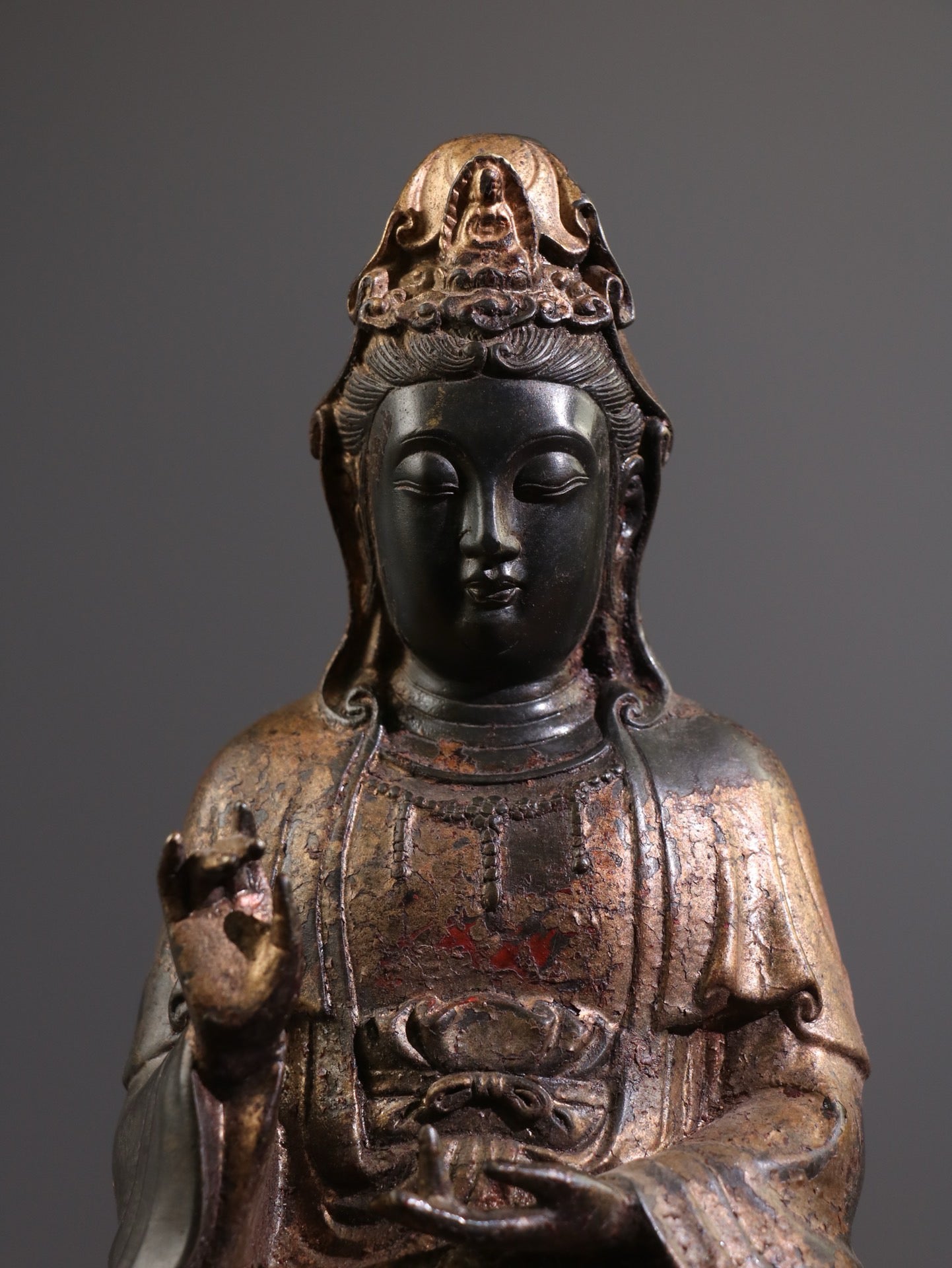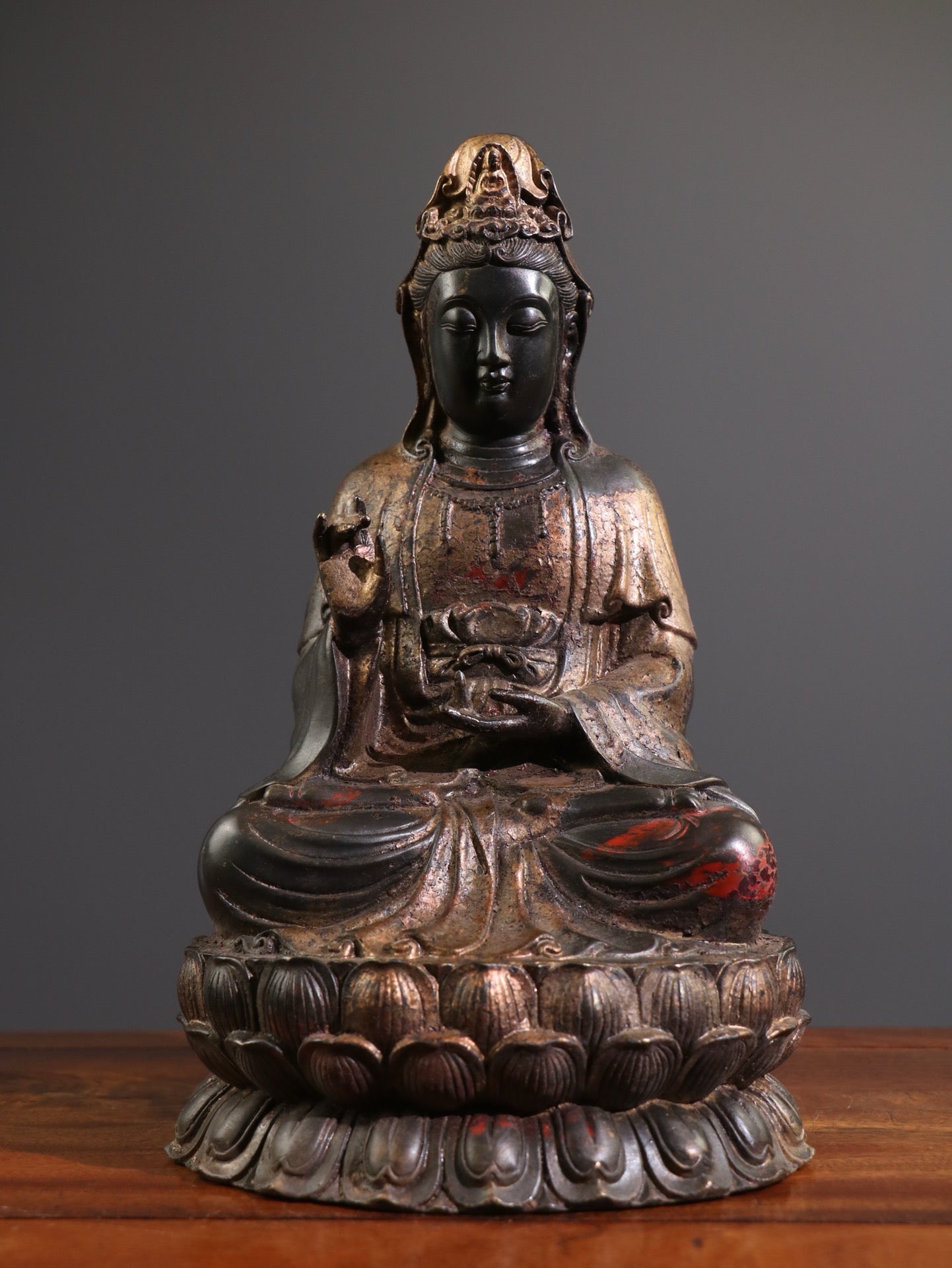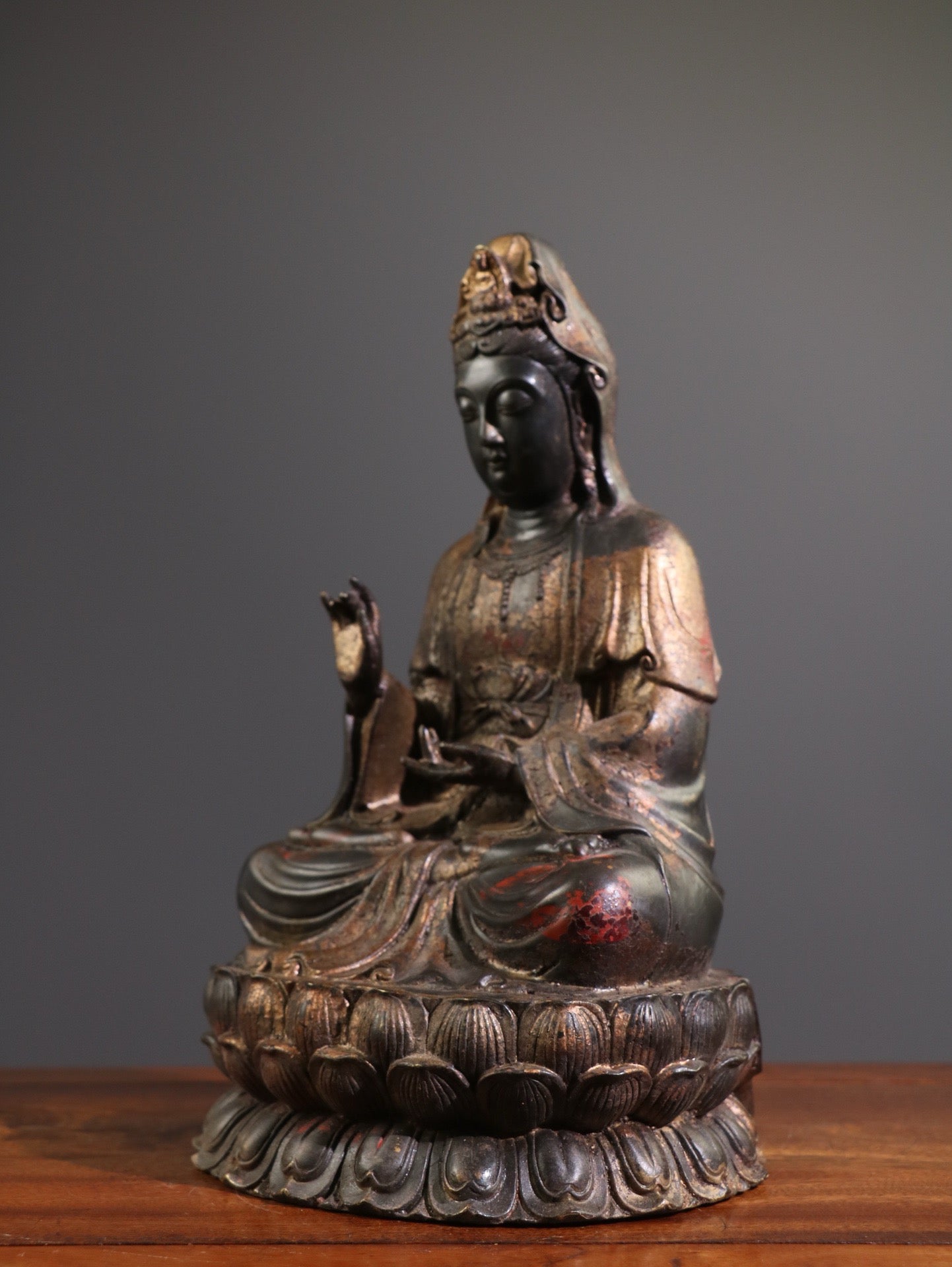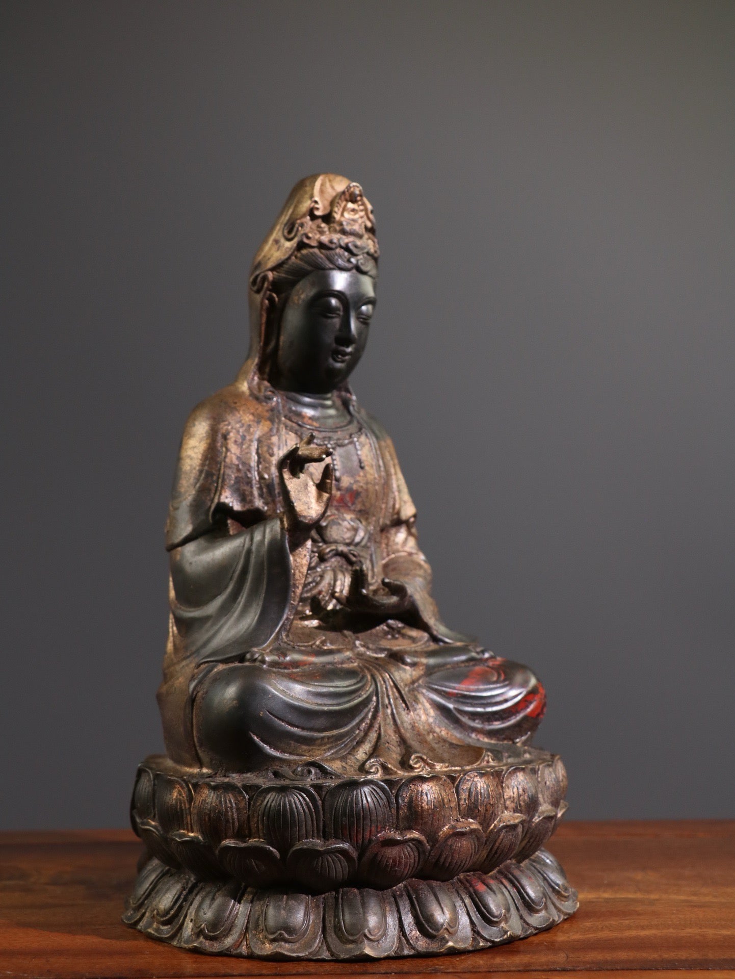 A Chinese antique pure copper statue of Guanyin Bodhisattva