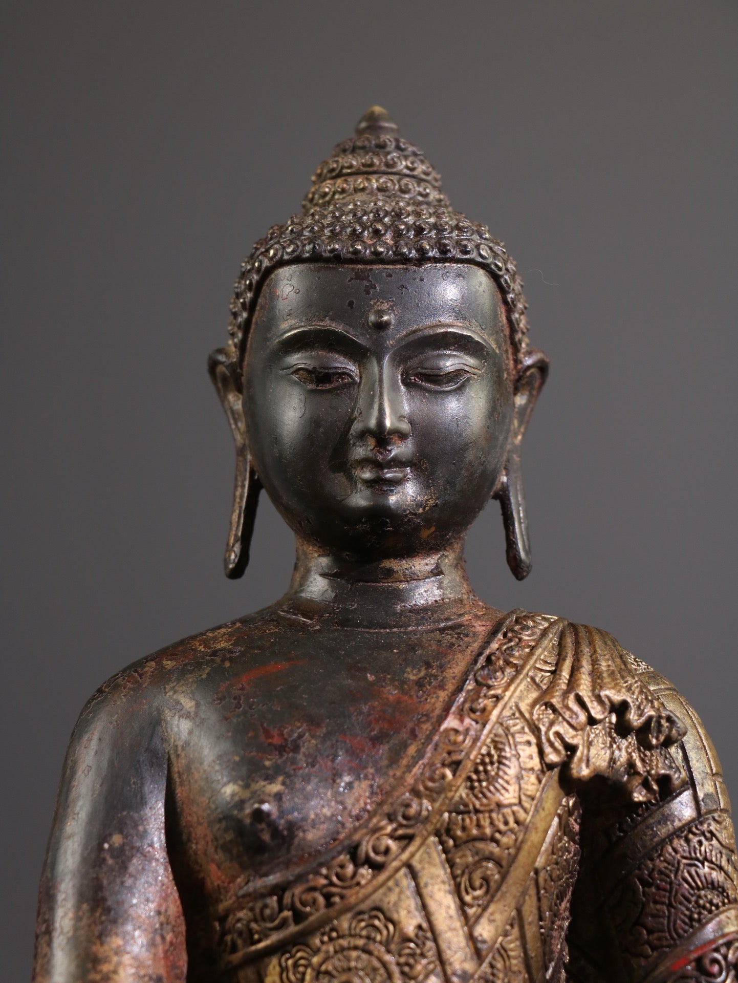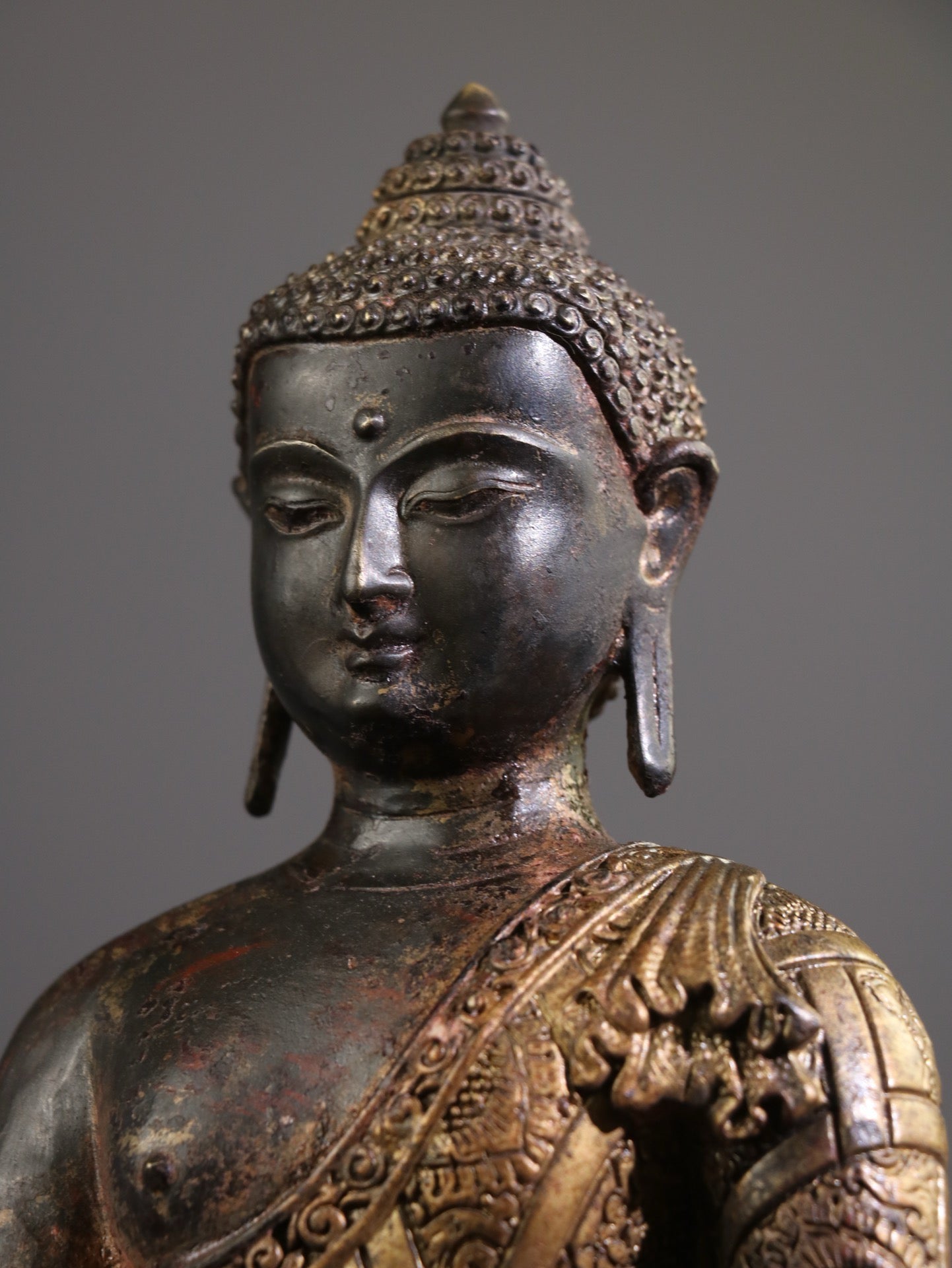 A Chinese antique pure copper statue of Shakyamuni Buddha