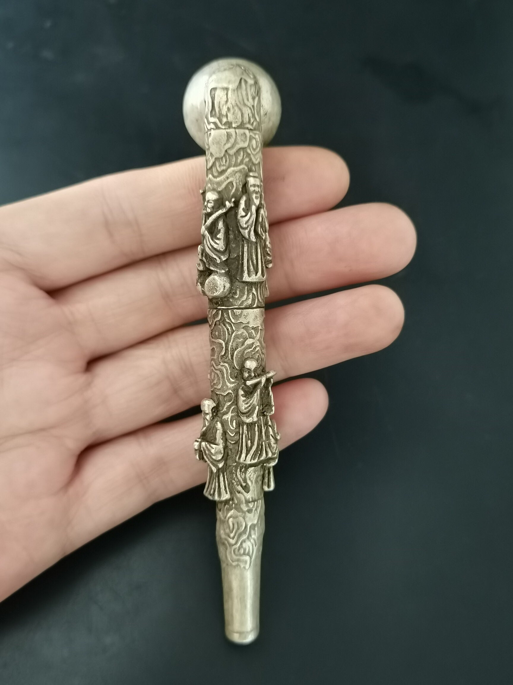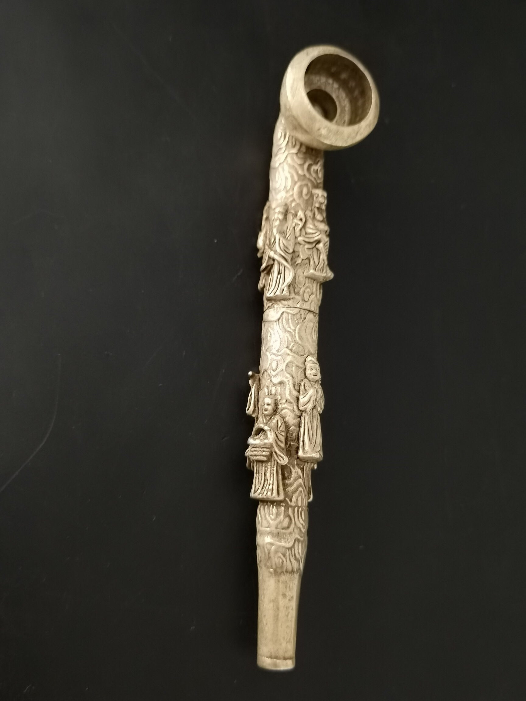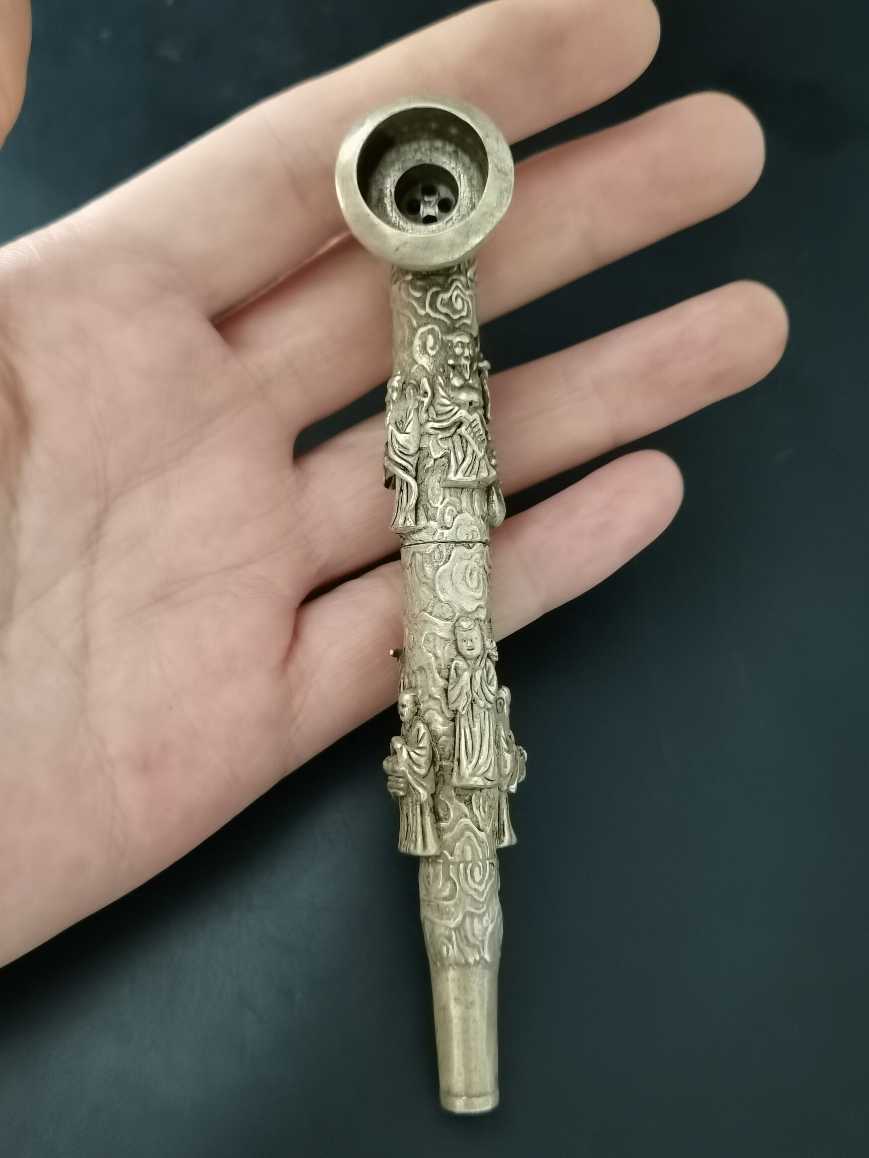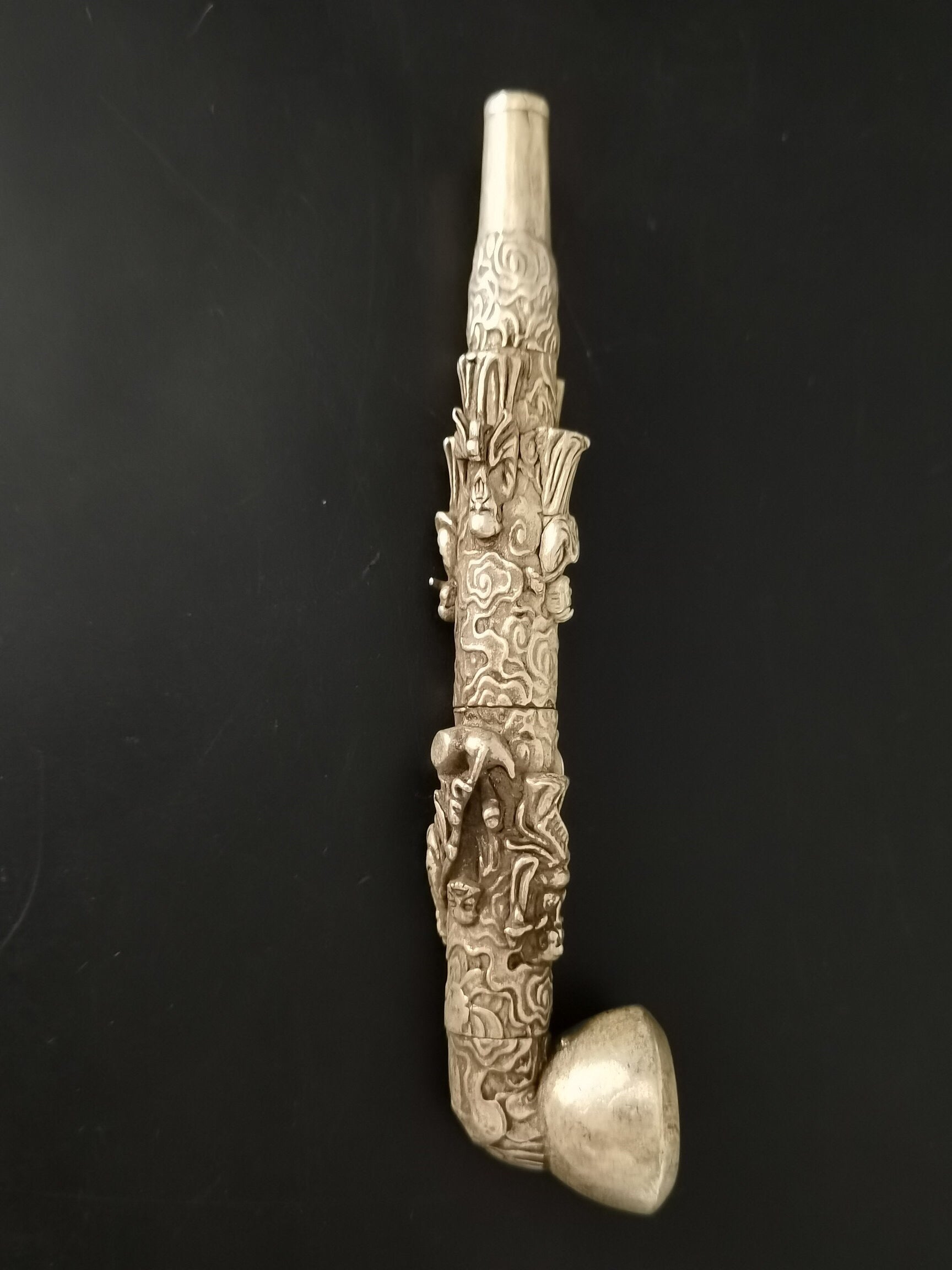 A Chinese antique silver Eight Immortals tobacco pipe