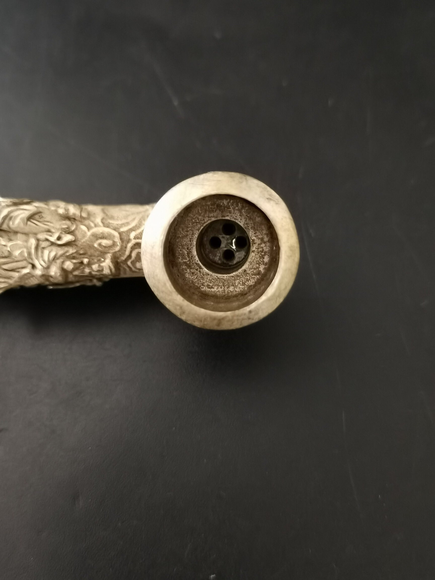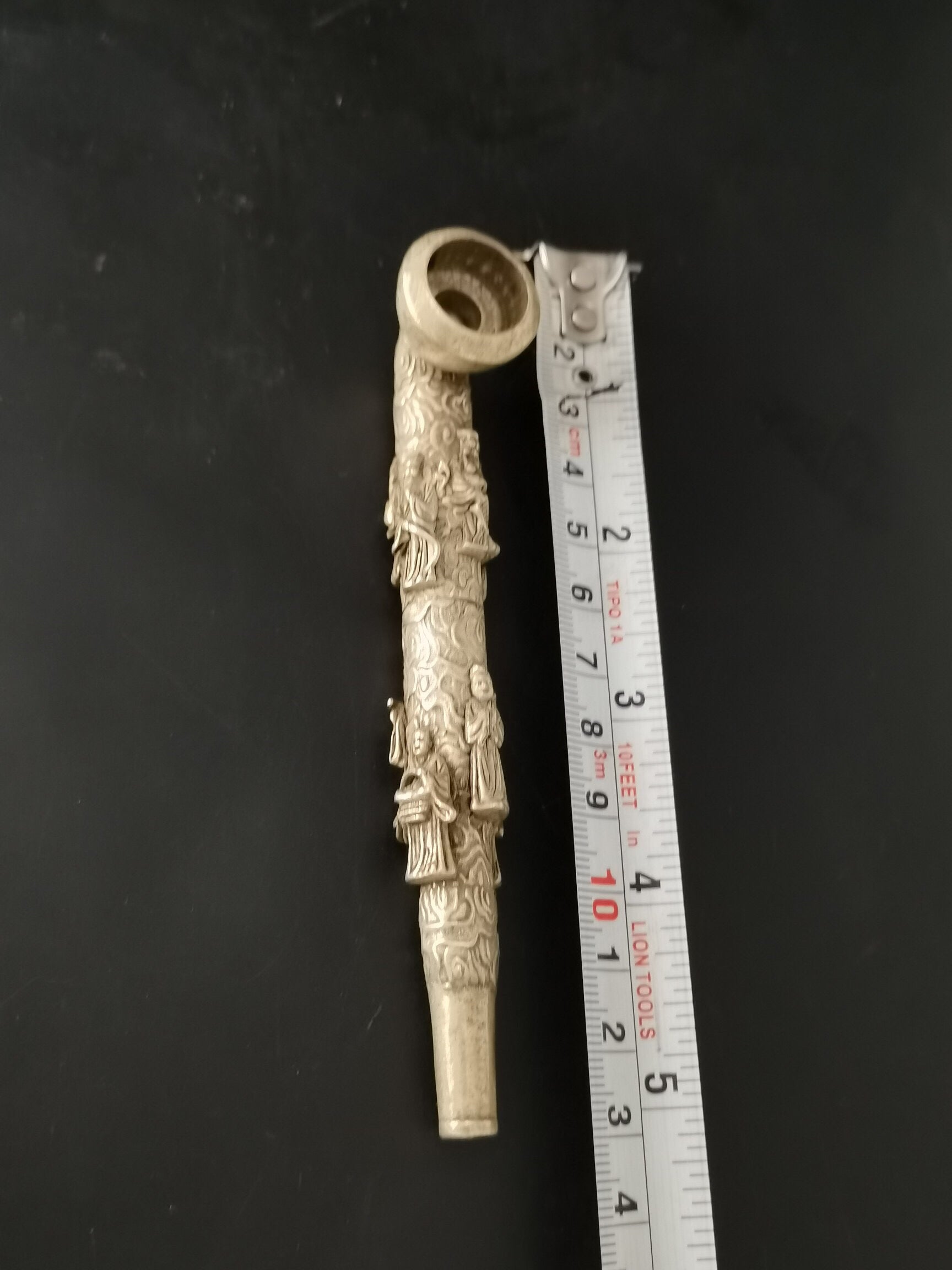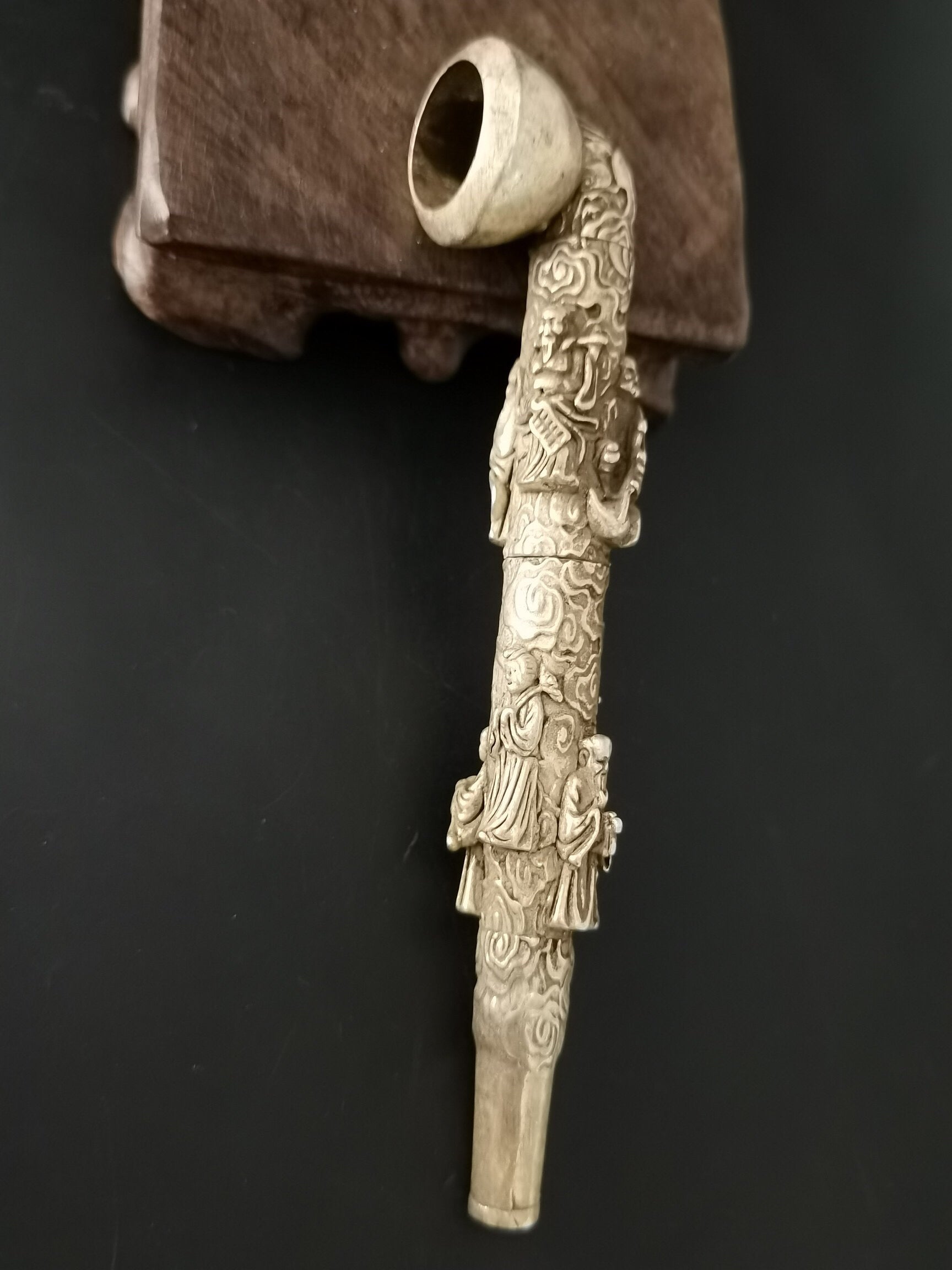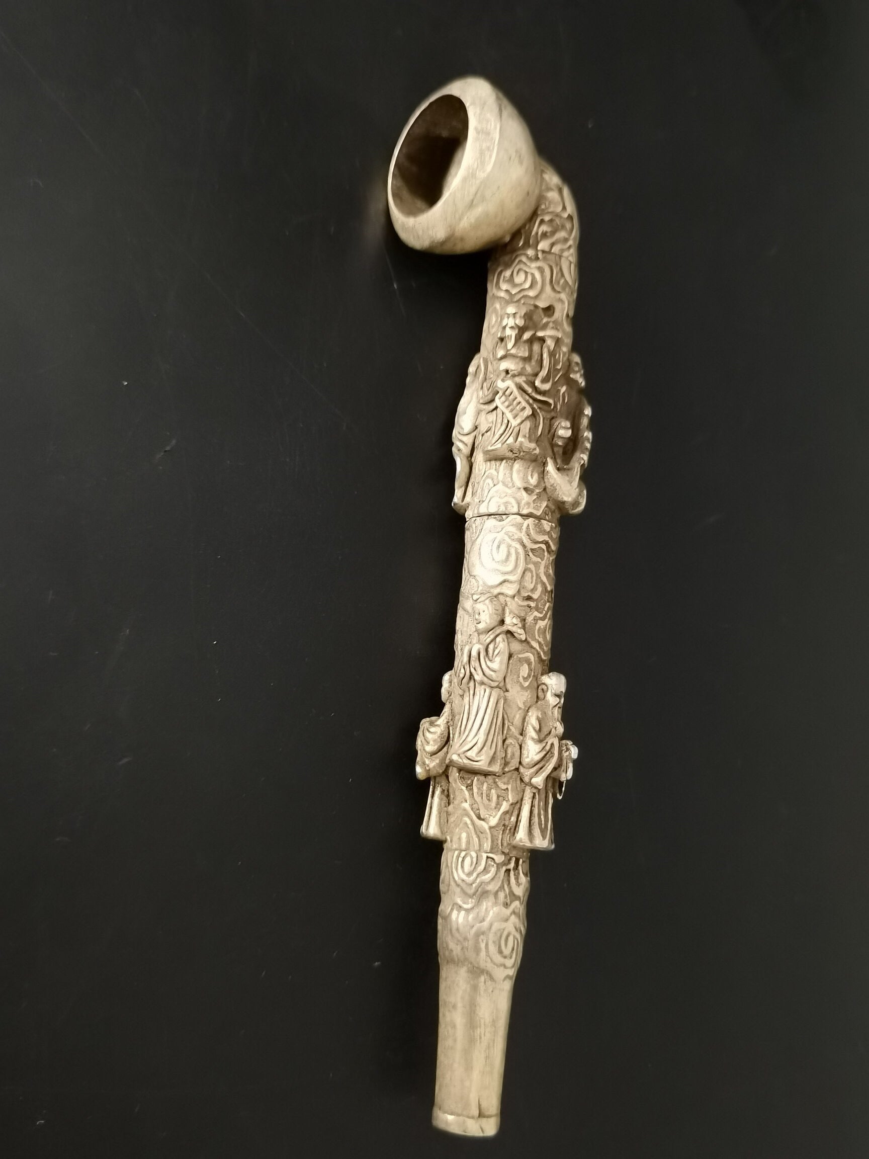 A Chinese antique silver Eight Immortals tobacco pipe