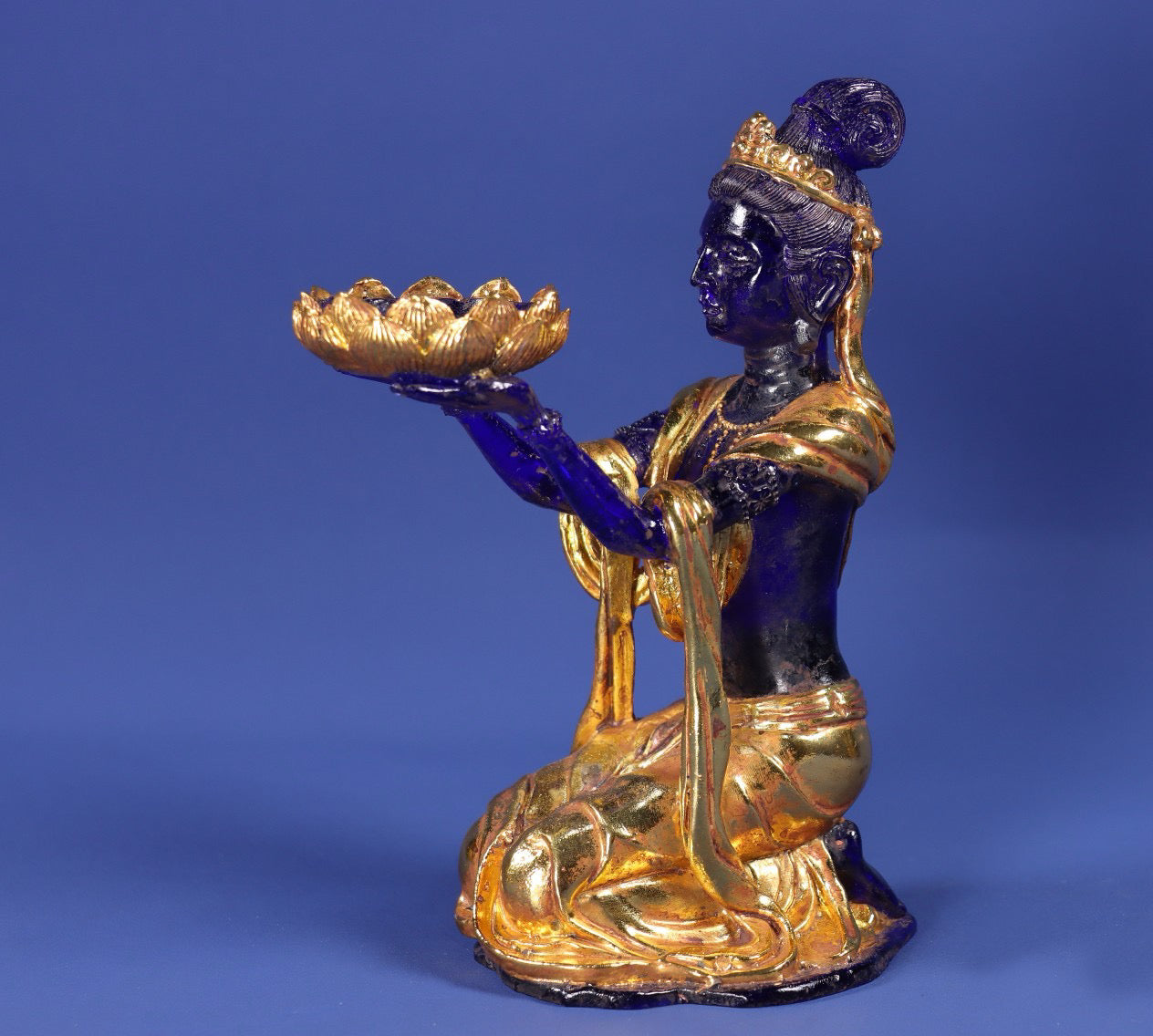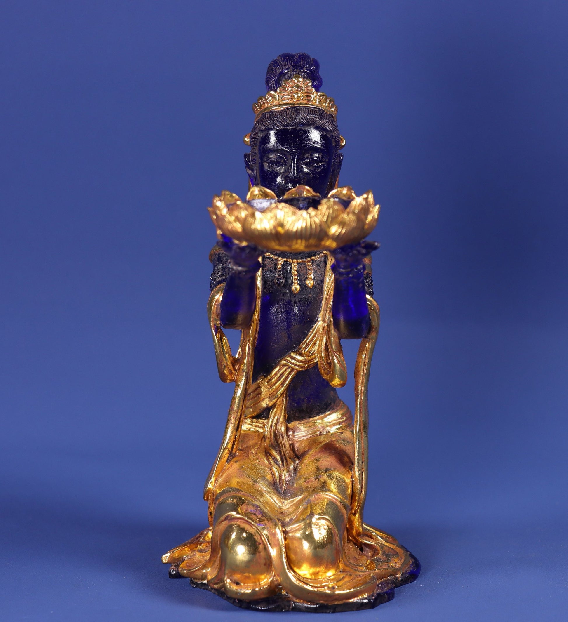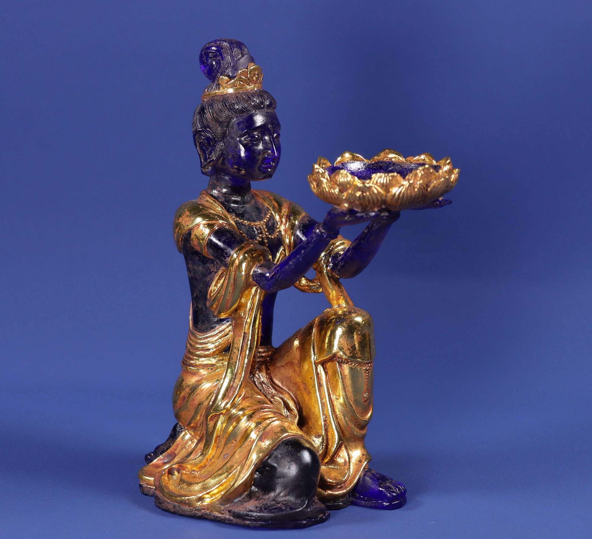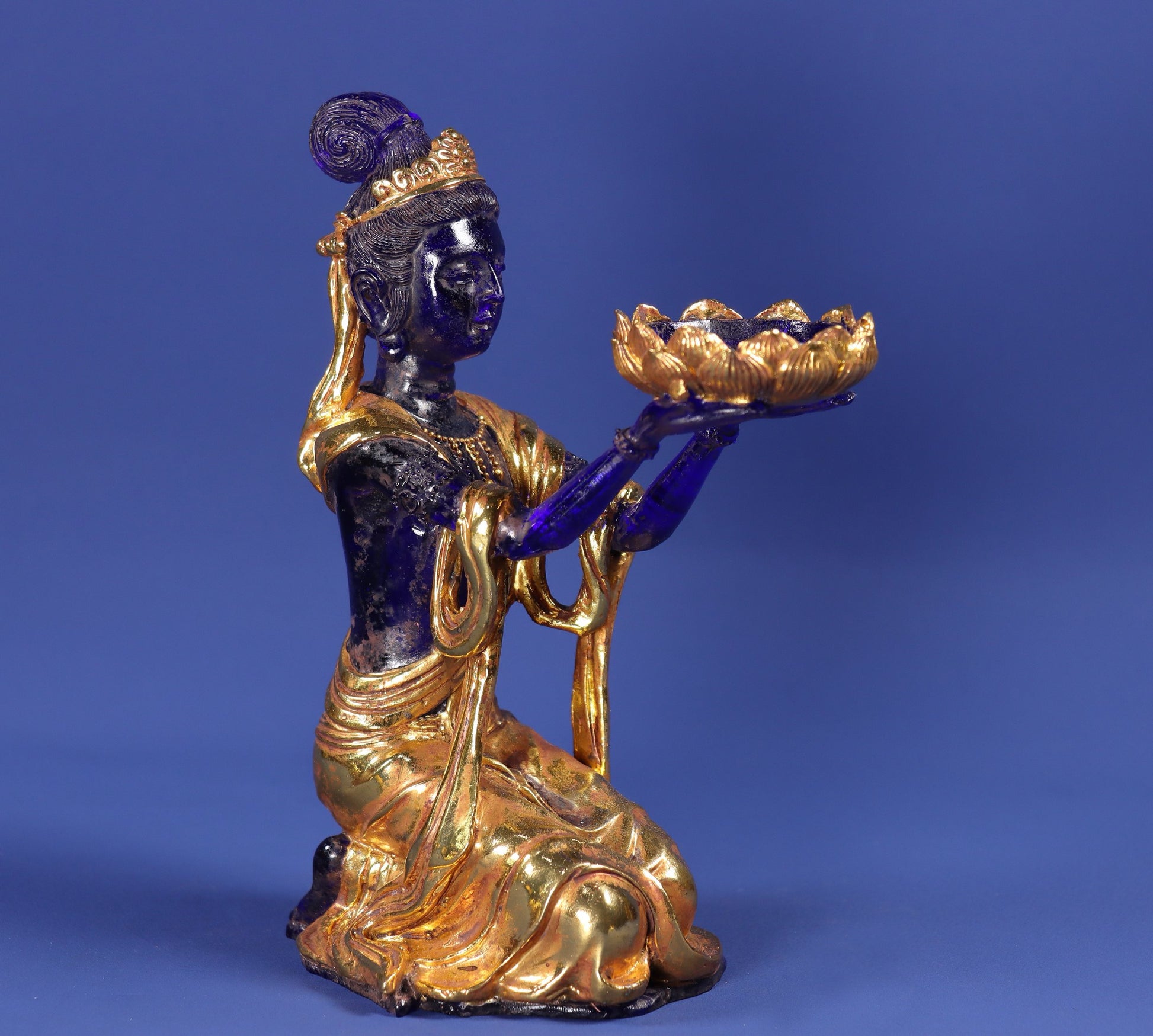 A pair of ancient Chinese glazed gold wrapped fairy candlestick ornaments