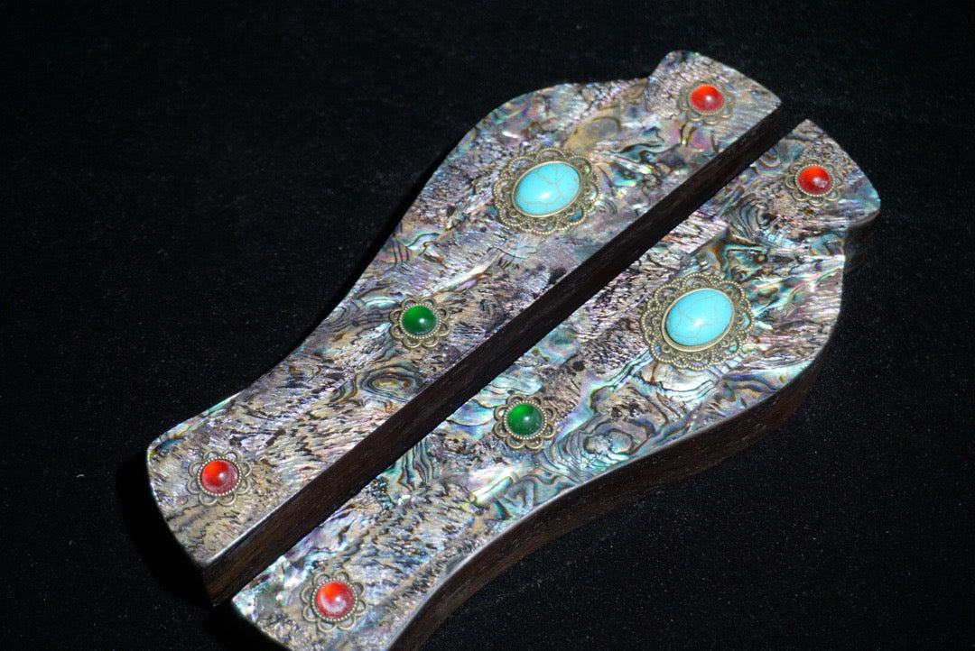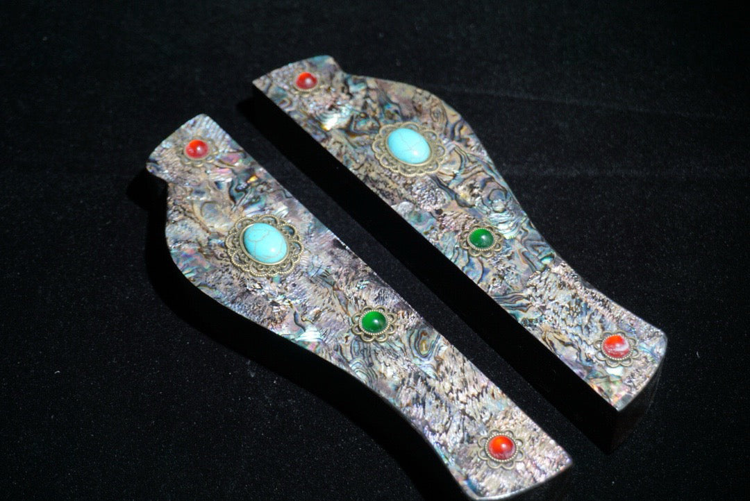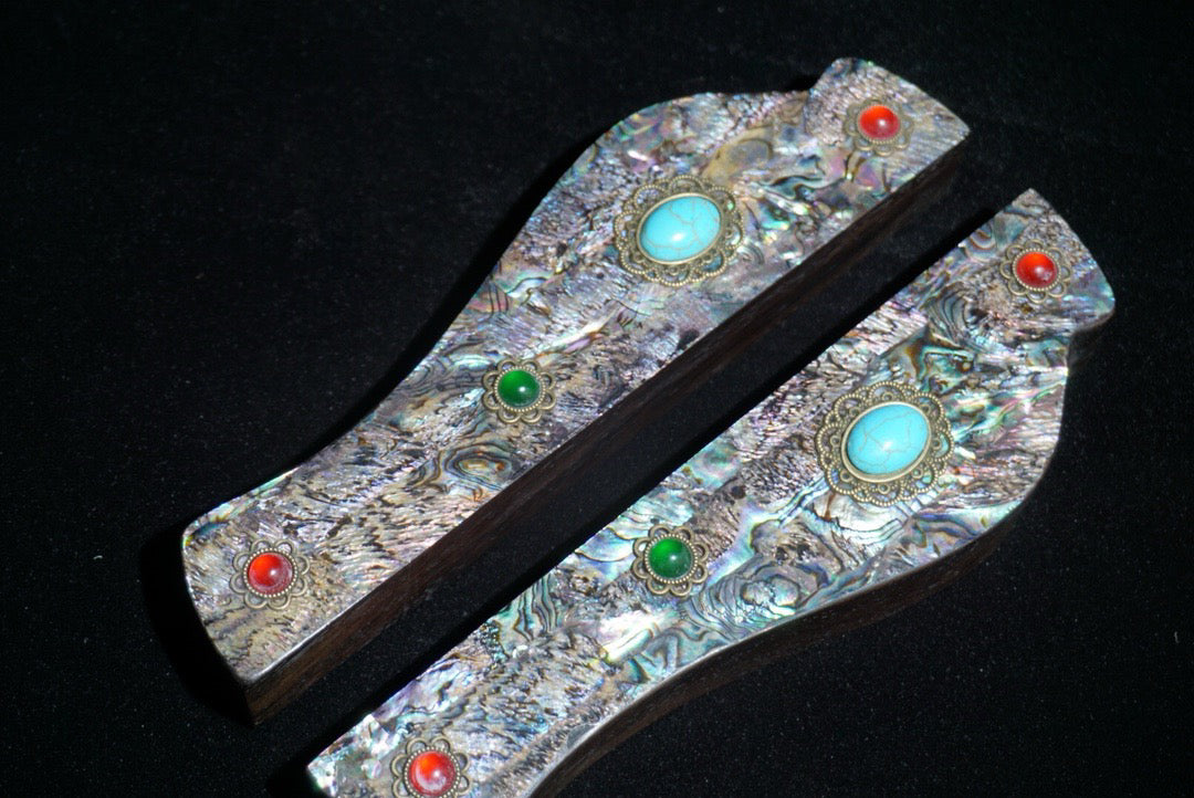 A pair of black sandalwood inlaid inlaid mother-in-law study rulers