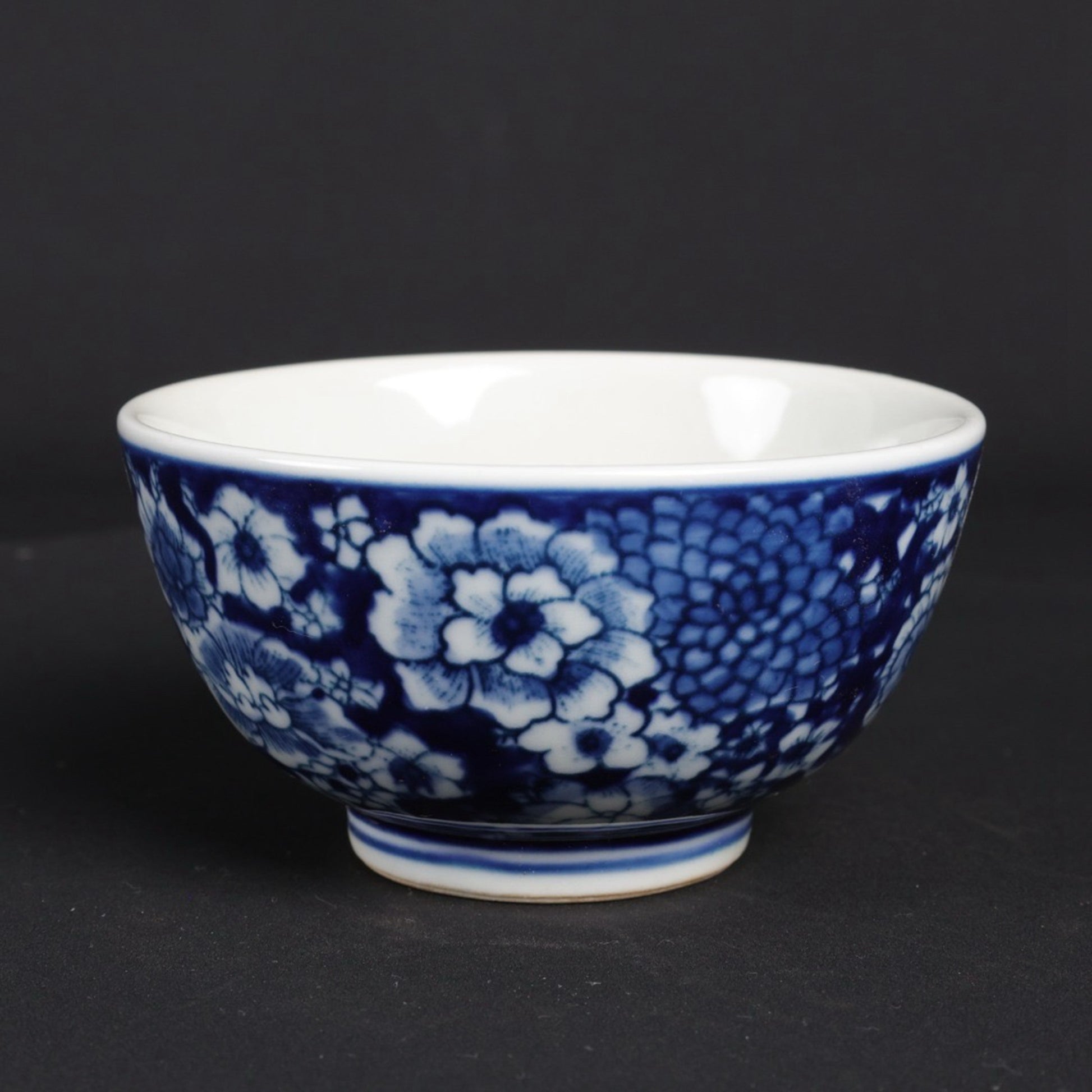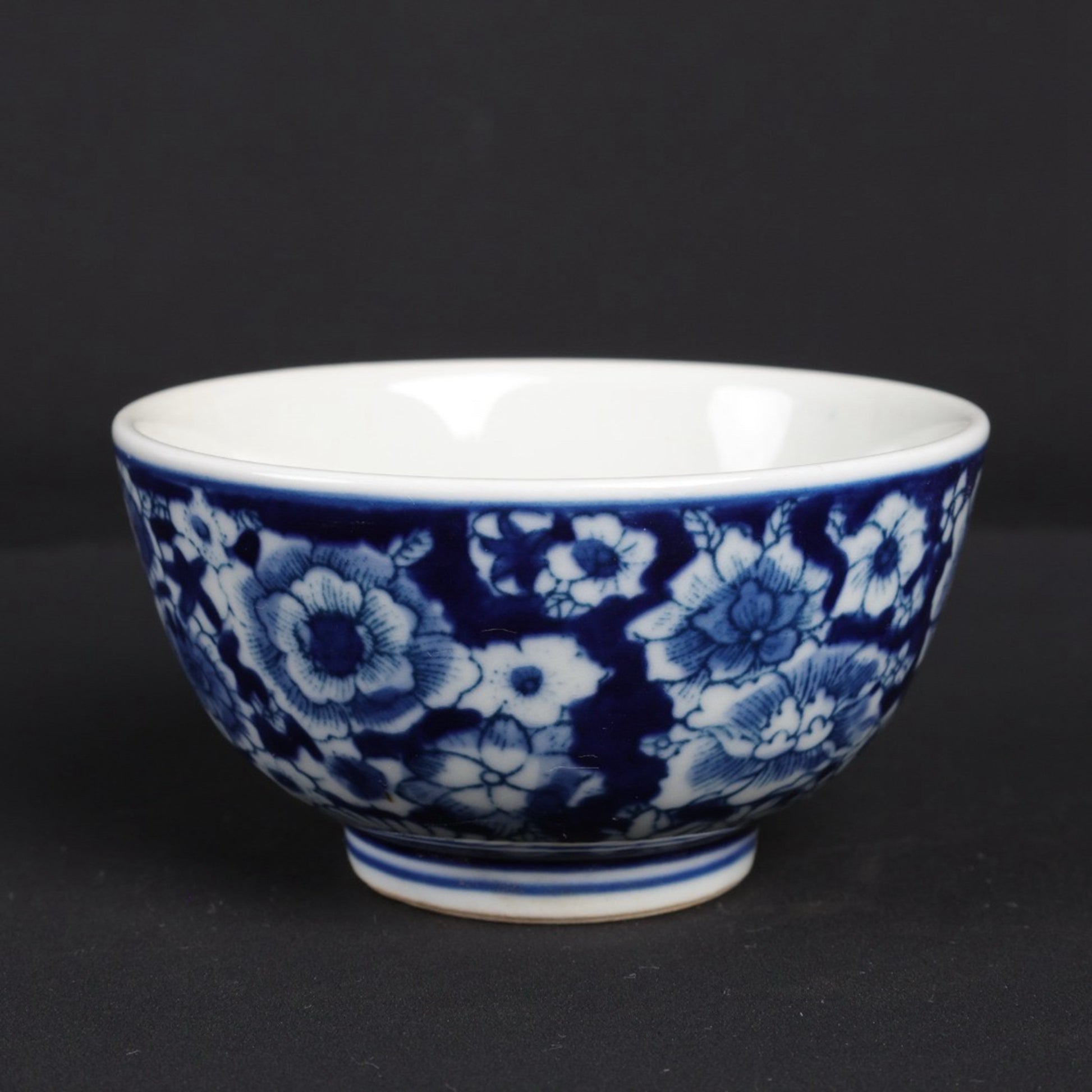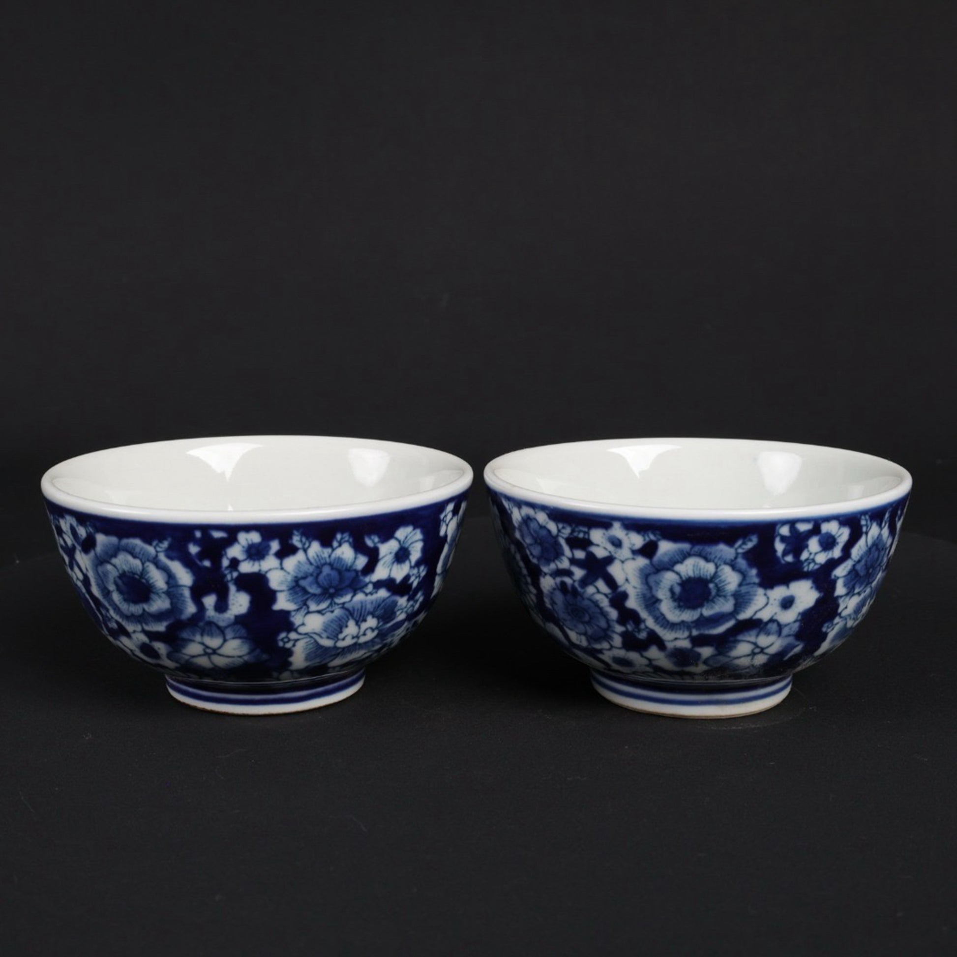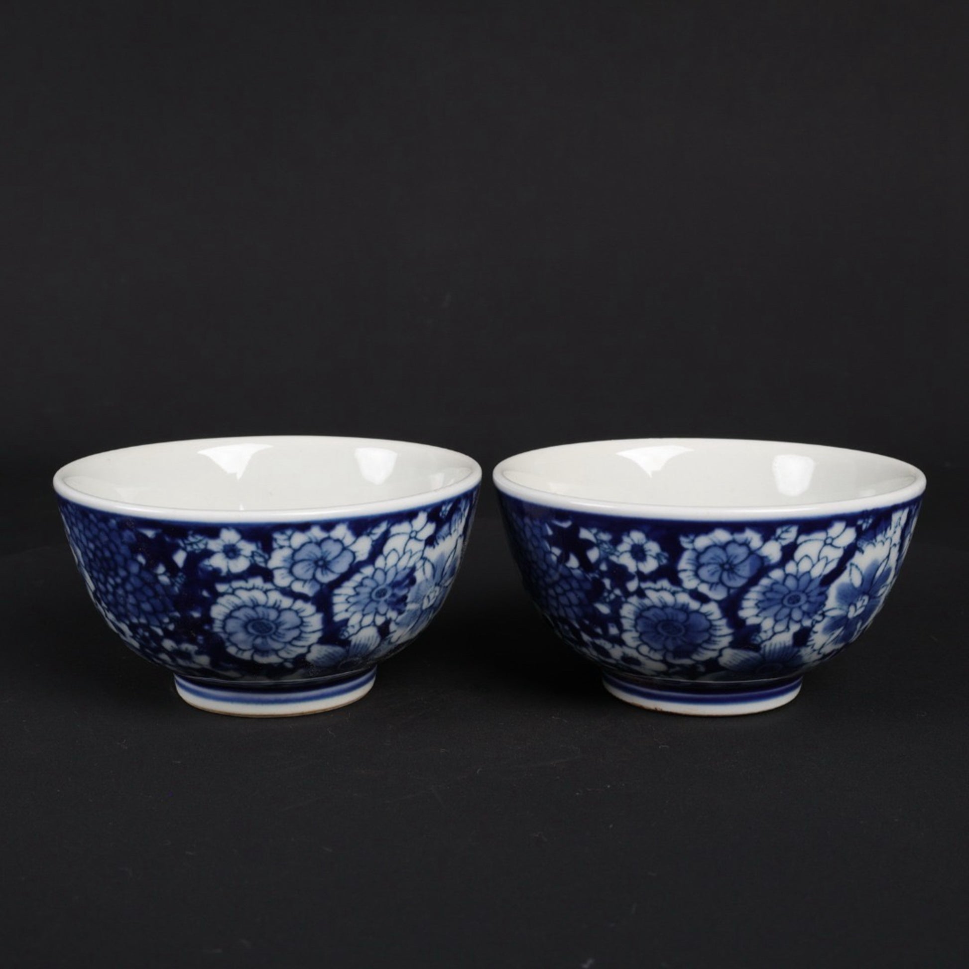A pair of blue and white flower patterned cups