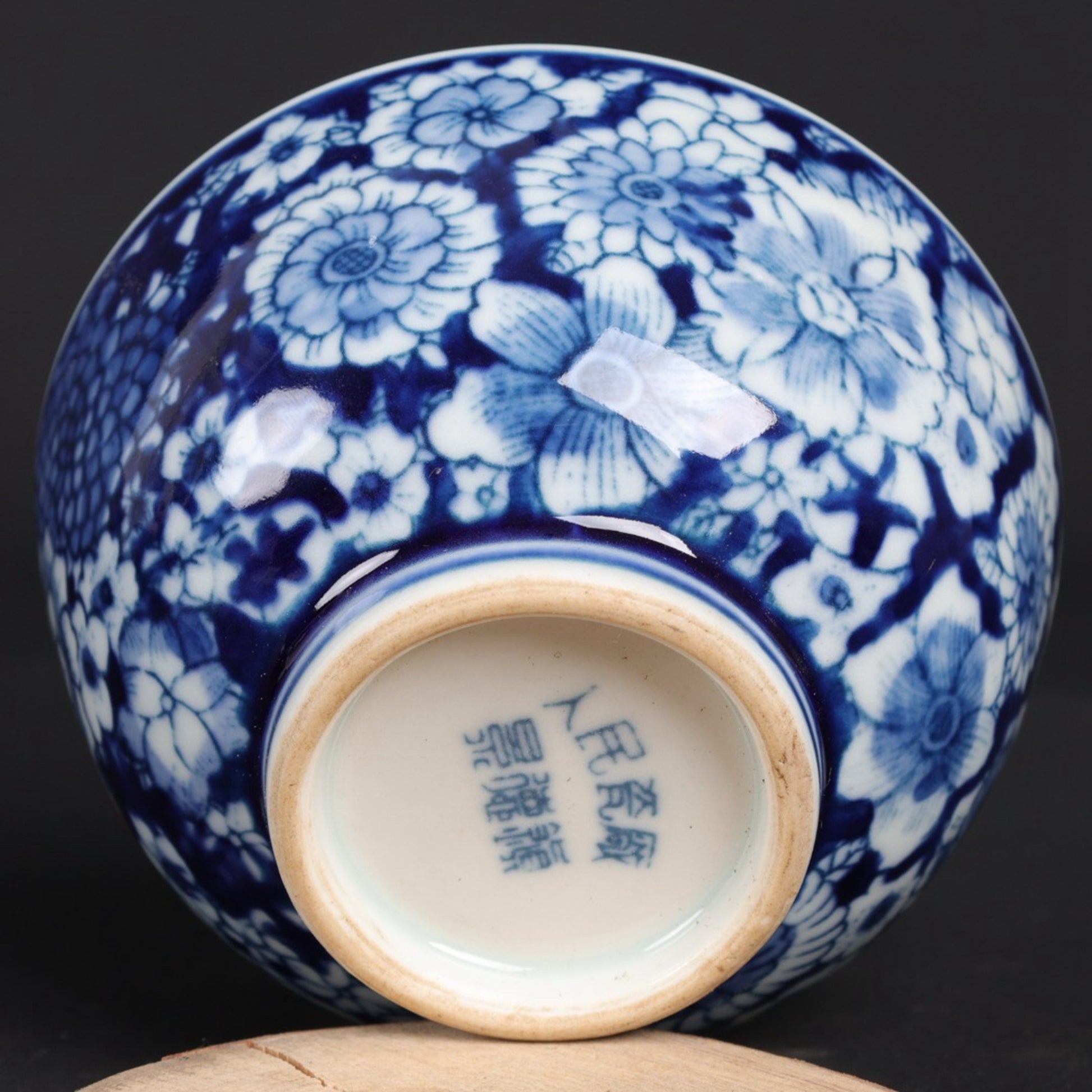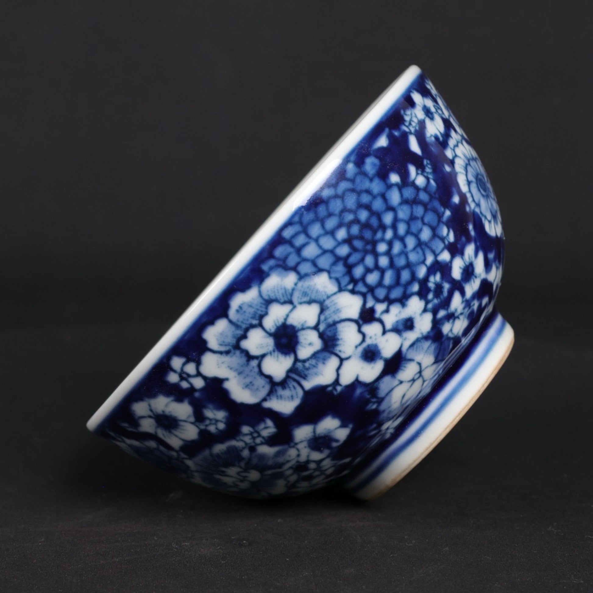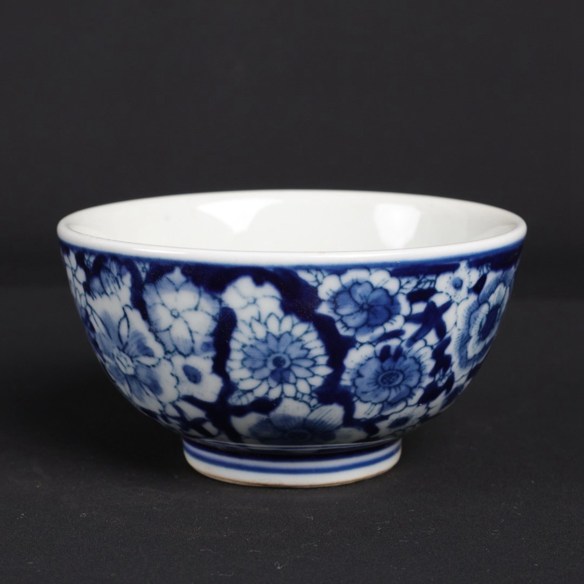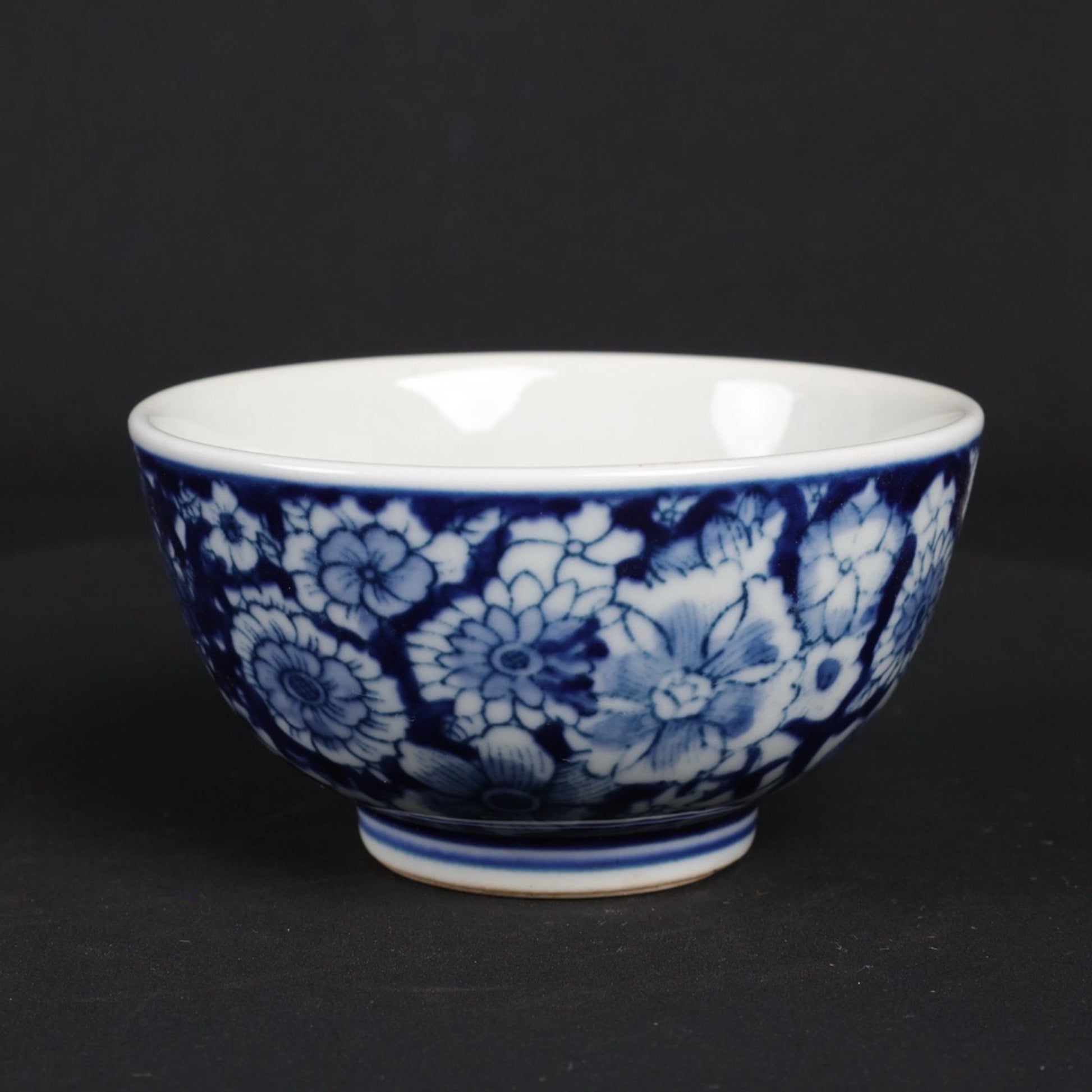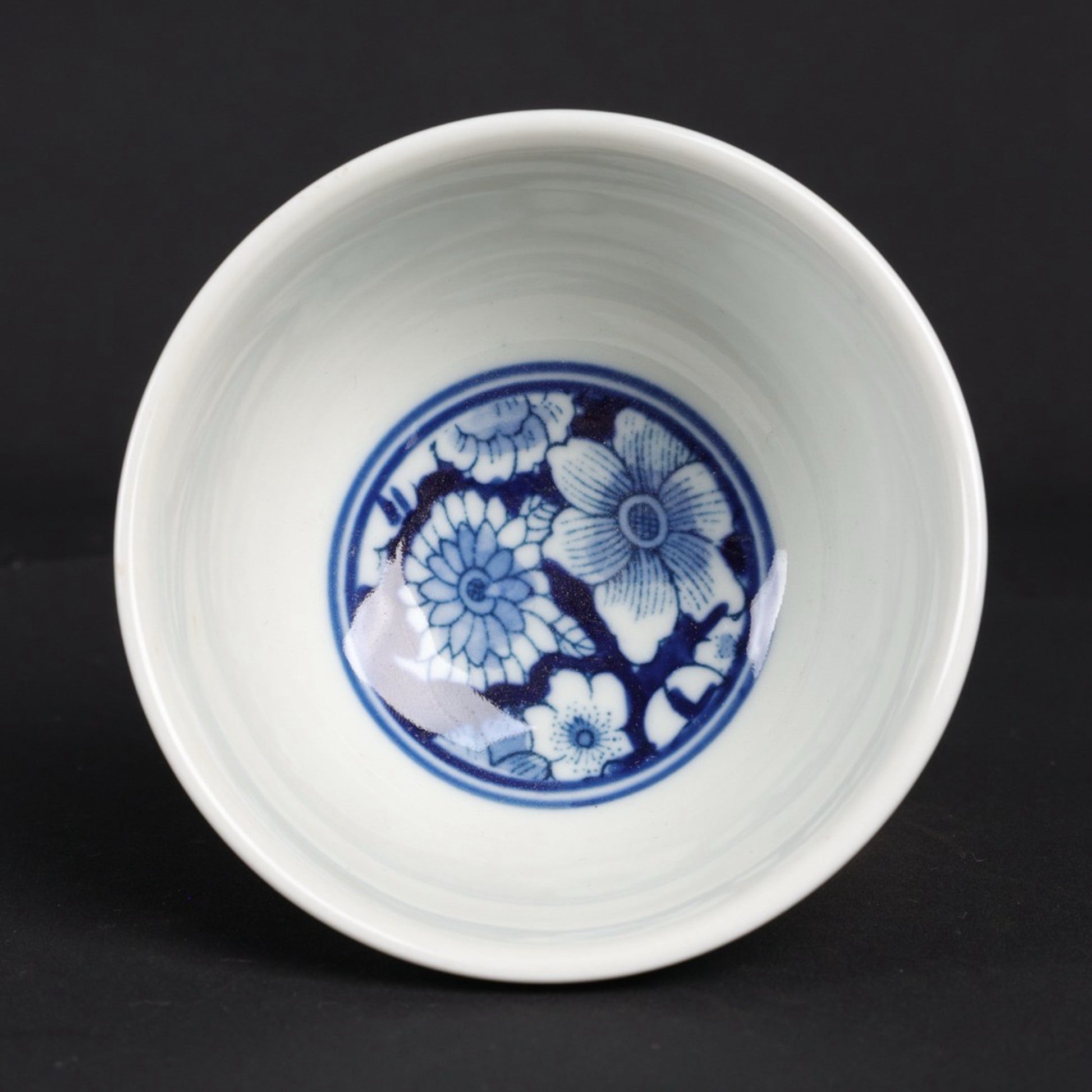 A pair of blue and white flower patterned cups