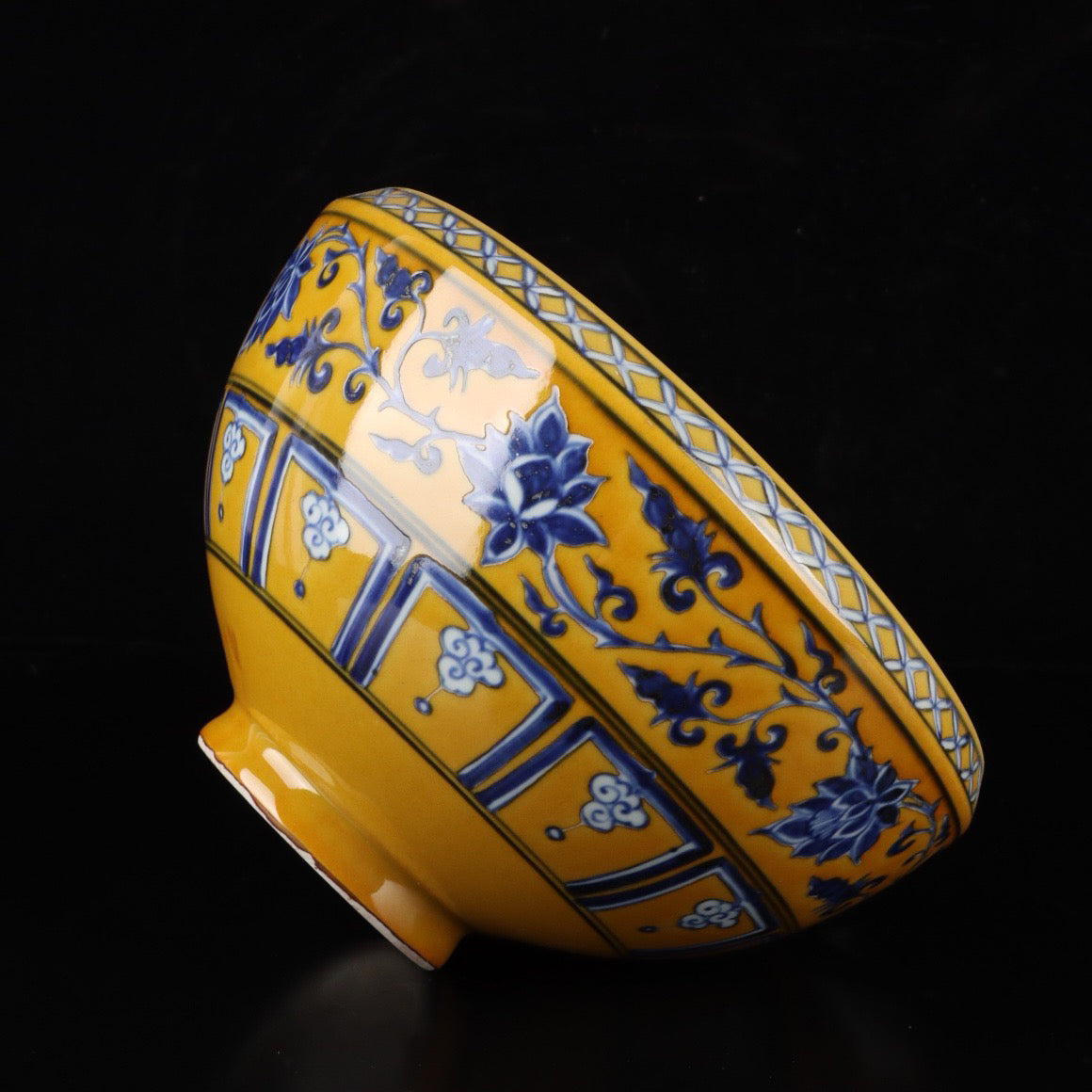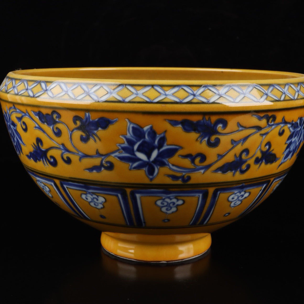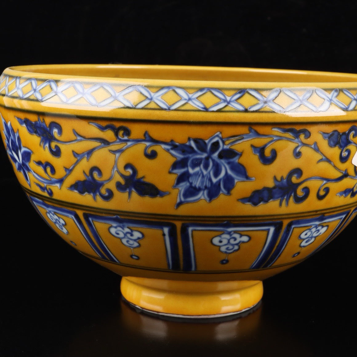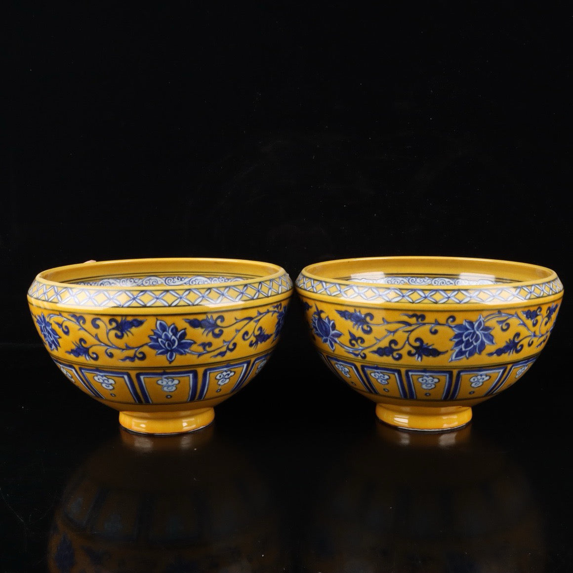 A pair of blue and white with yellow glaze and tangled branches and lotus pattern brush wash
