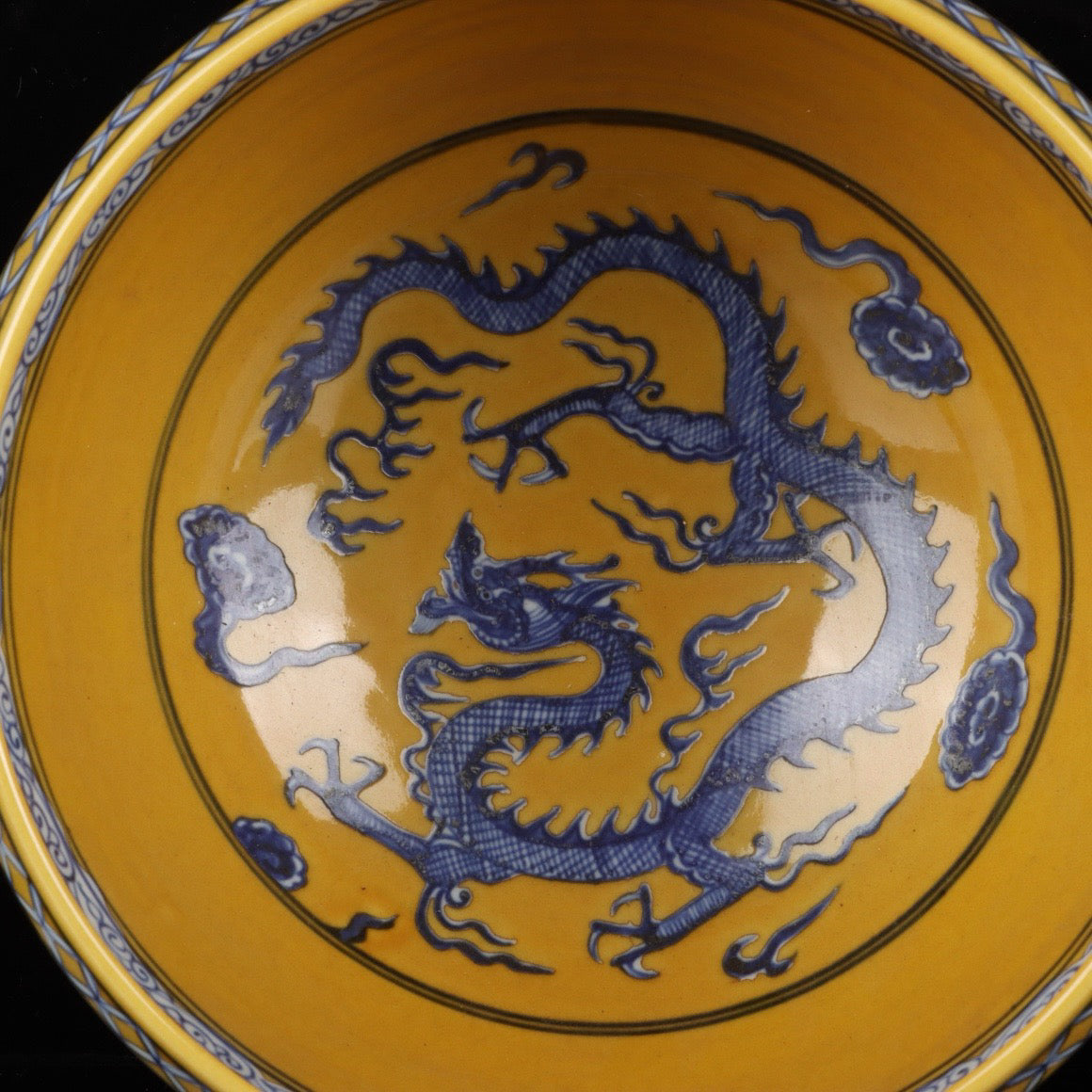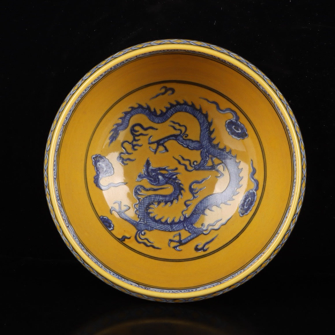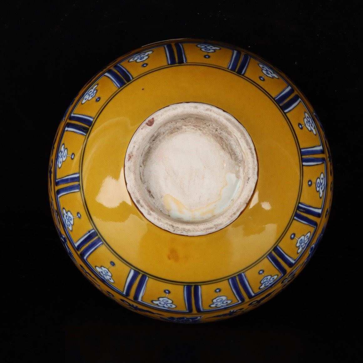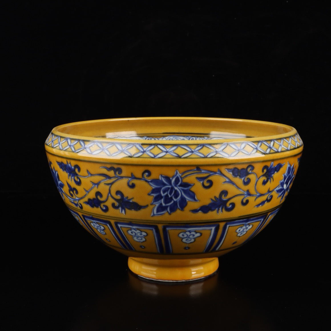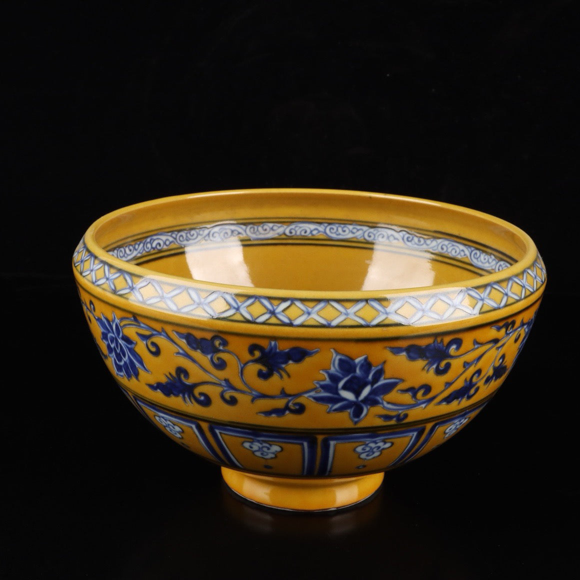 A pair of blue and white with yellow glaze and tangled branches and lotus pattern brush wash