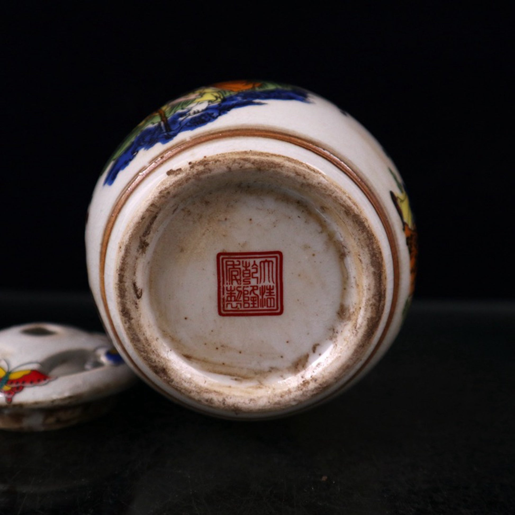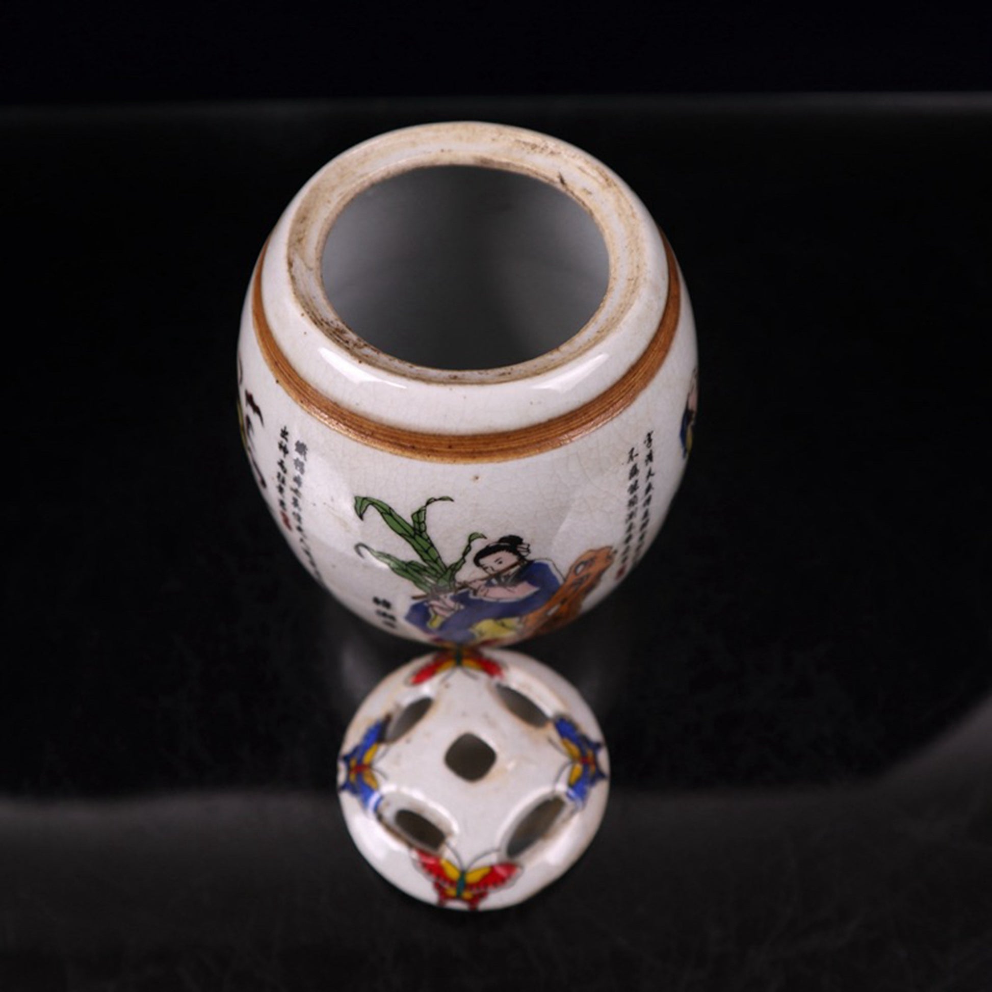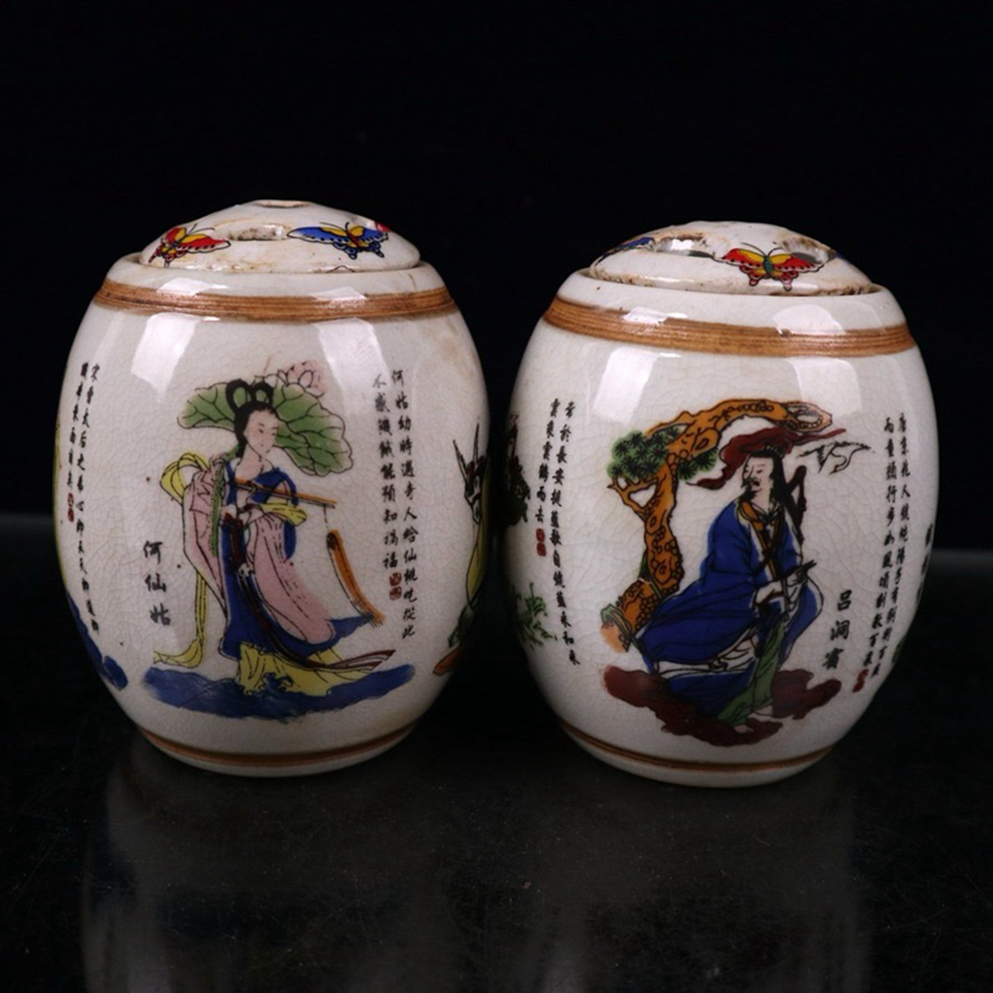 A pair of ceramic open panel pink Eight Immortals patterned waist drum lid jars