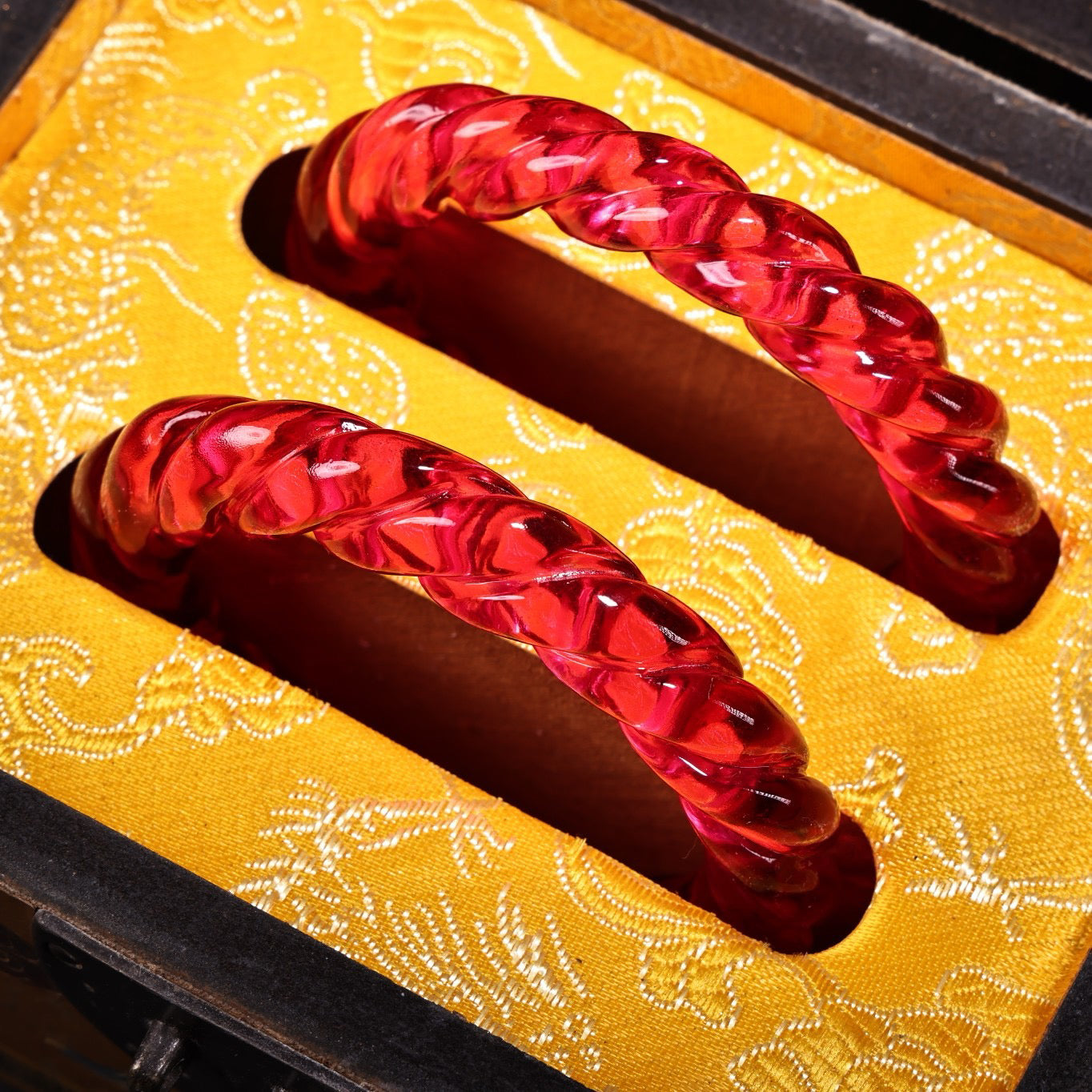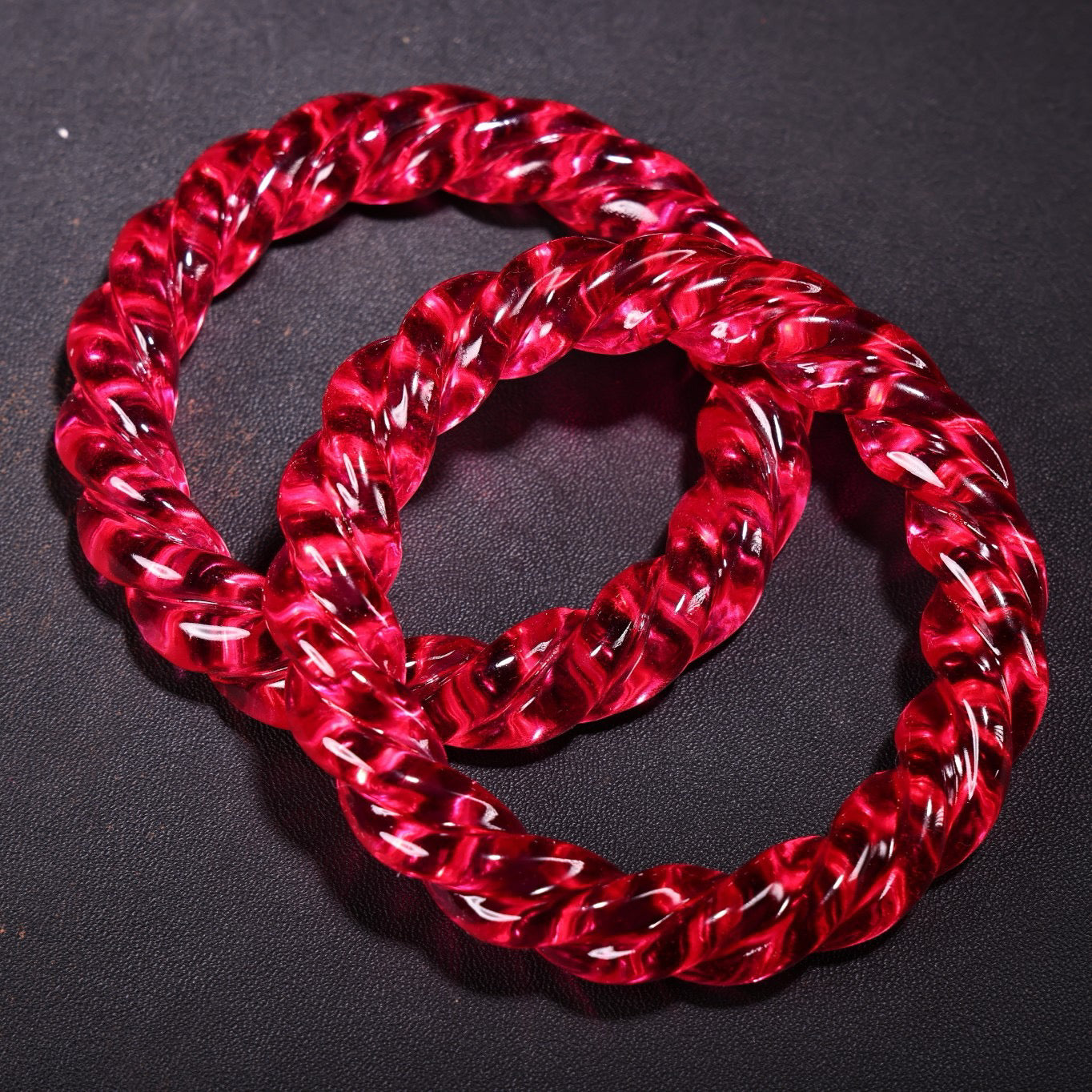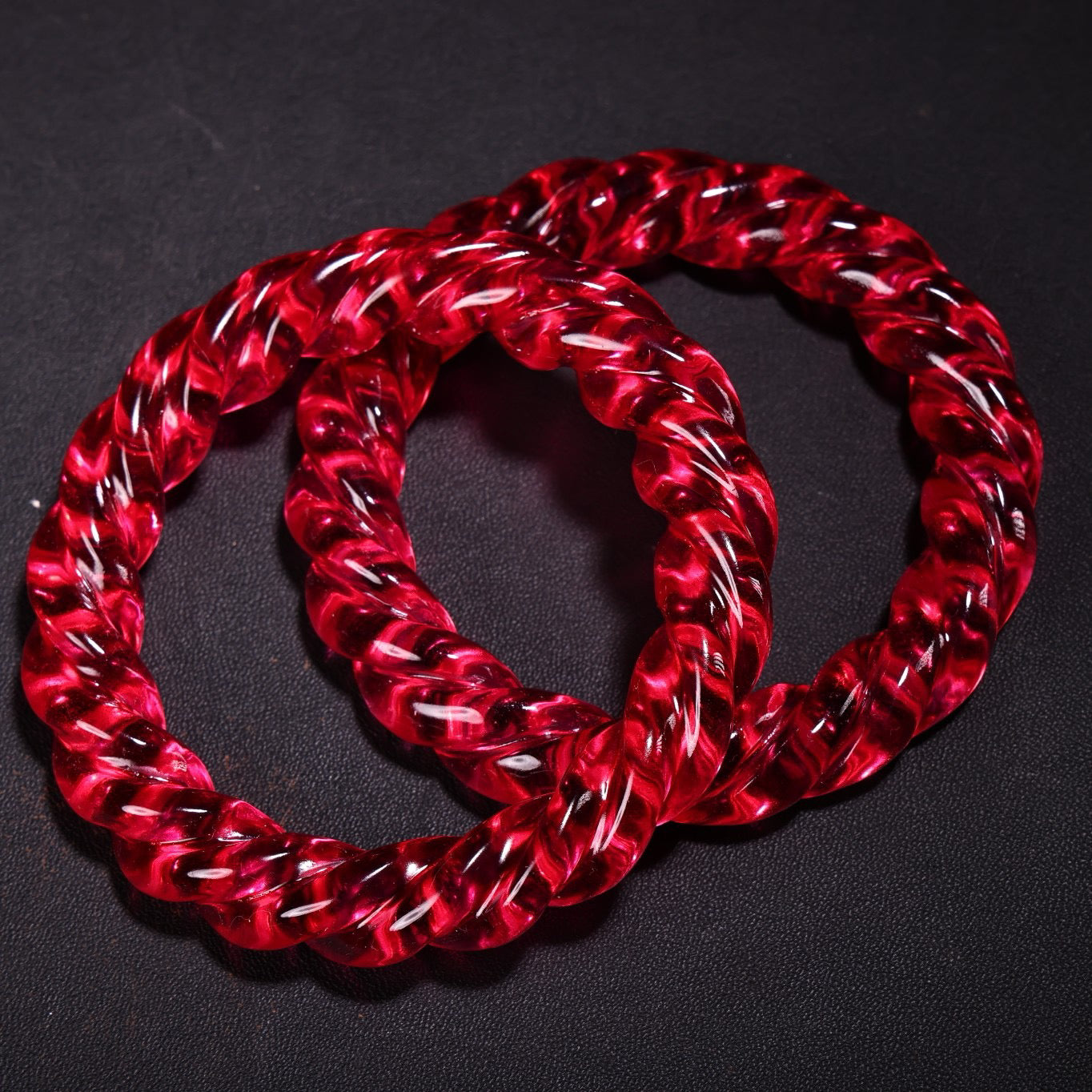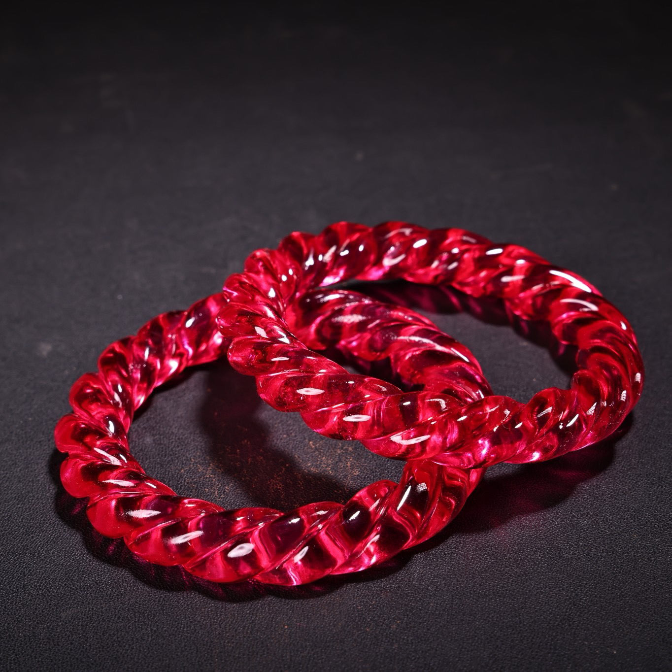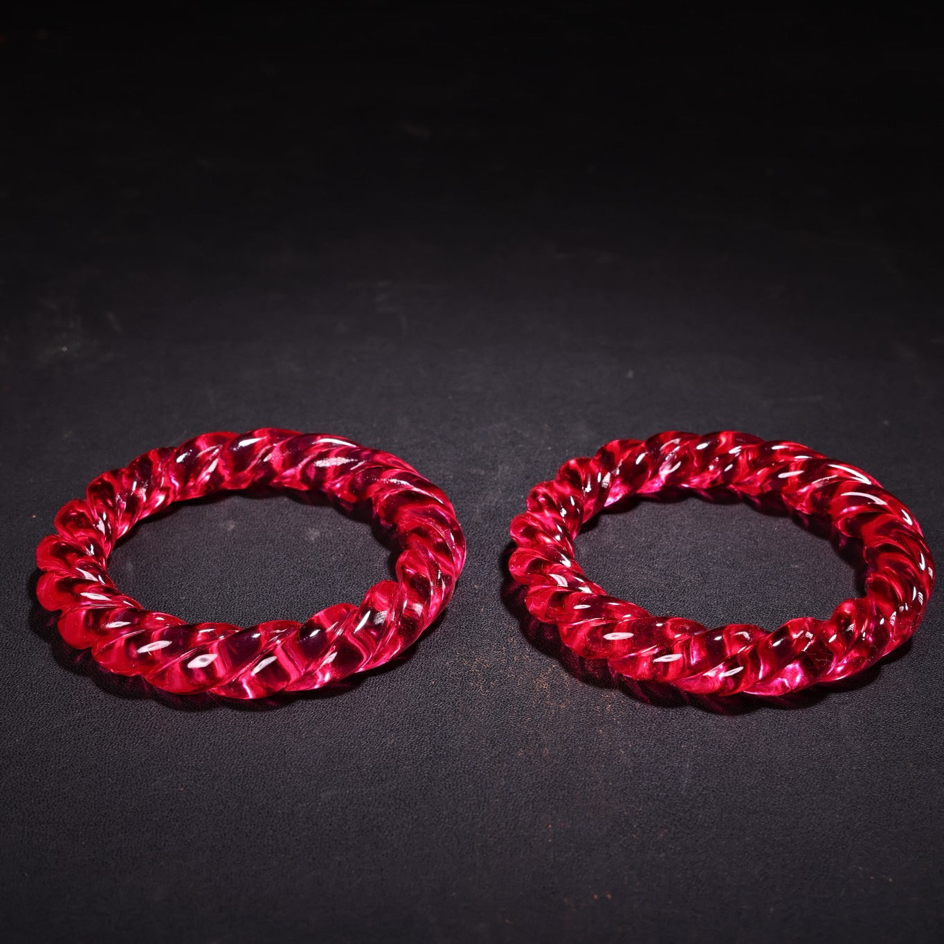 A pair of Chinese antique gemstone carved Fried Dough Twists bracelets