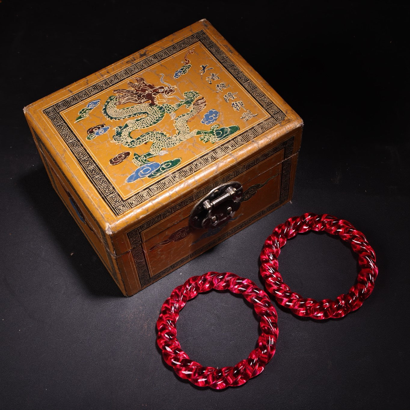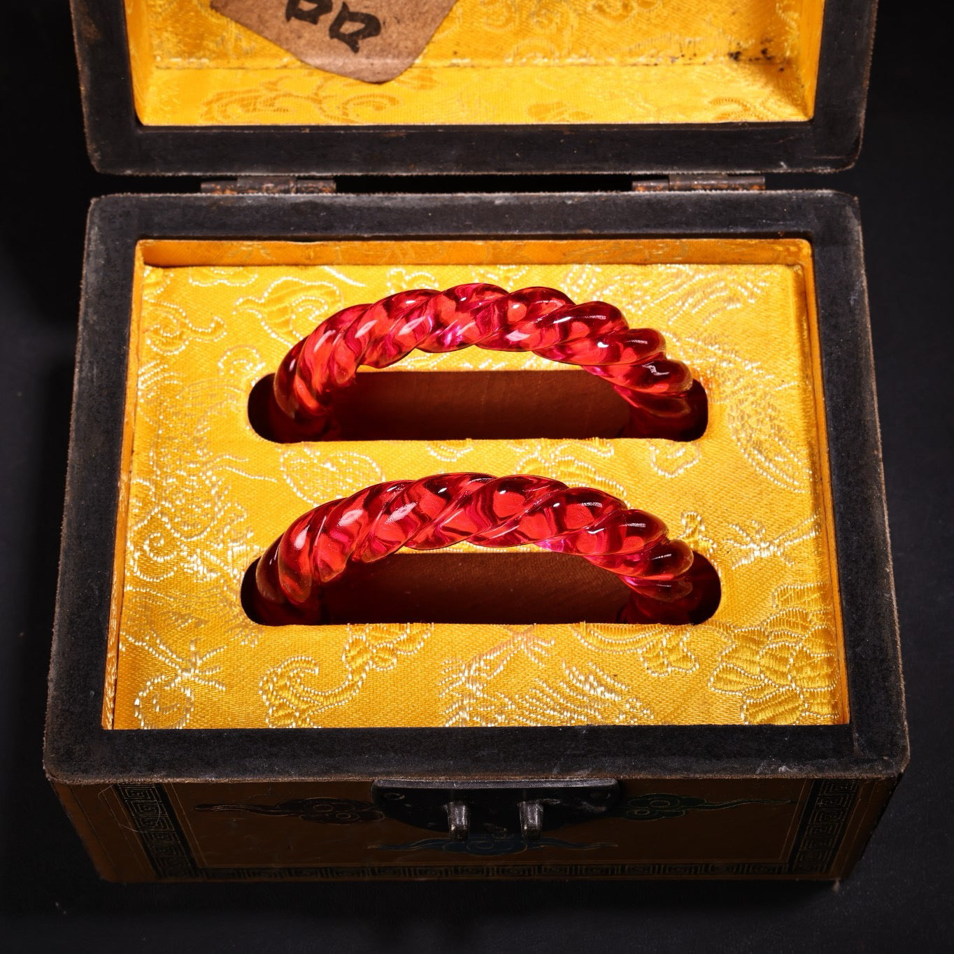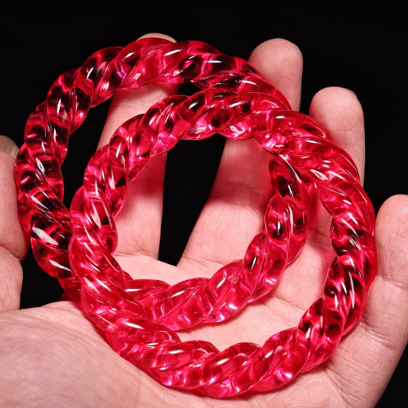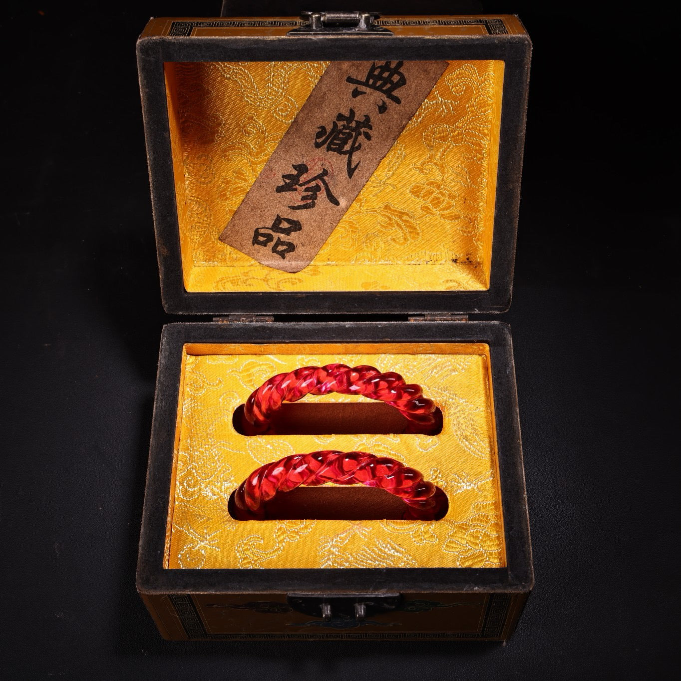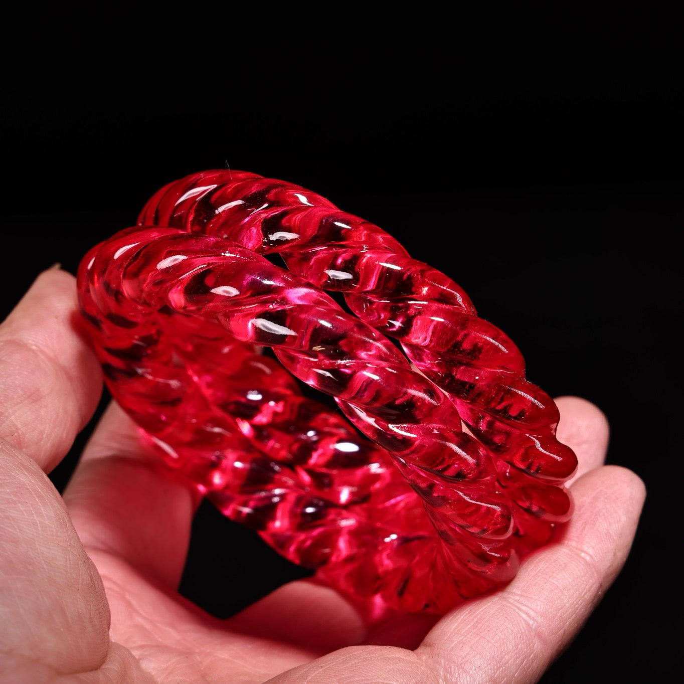 A pair of Chinese antique gemstone carved Fried Dough Twists bracelets