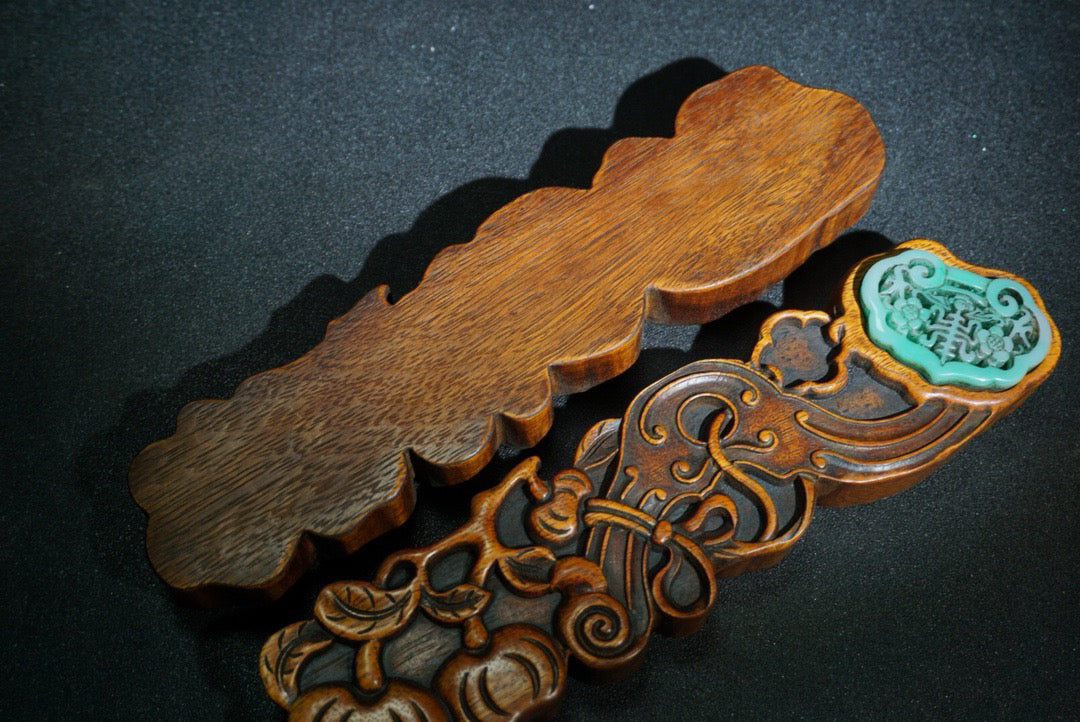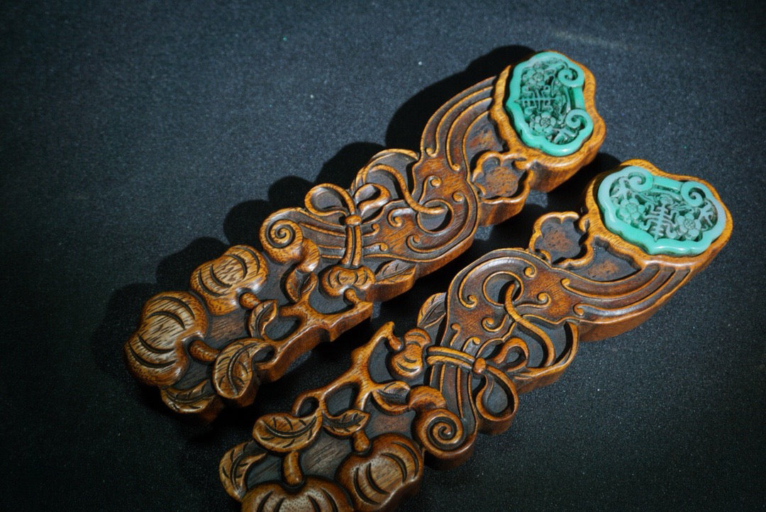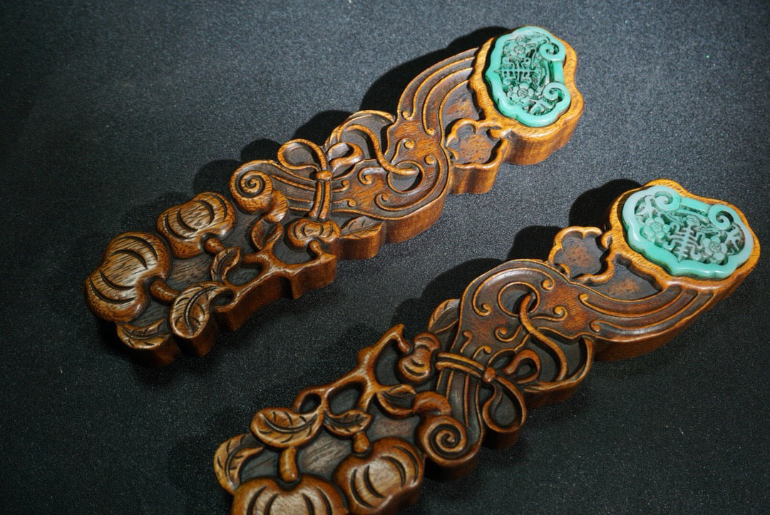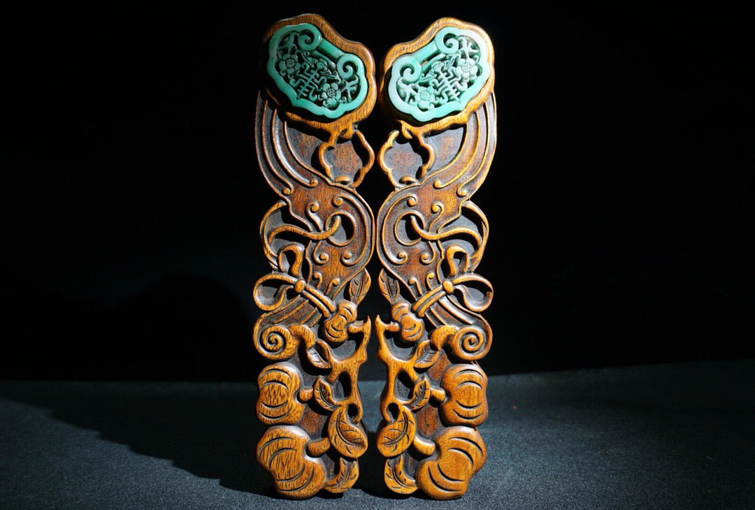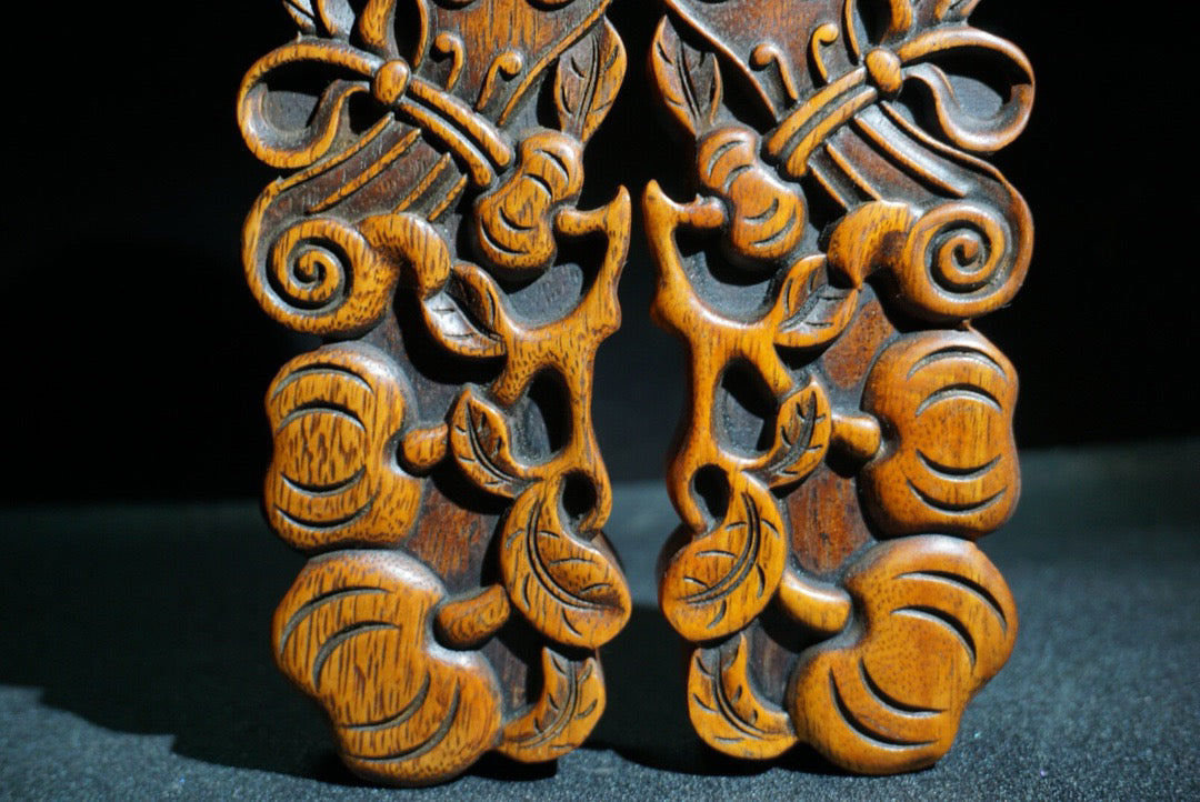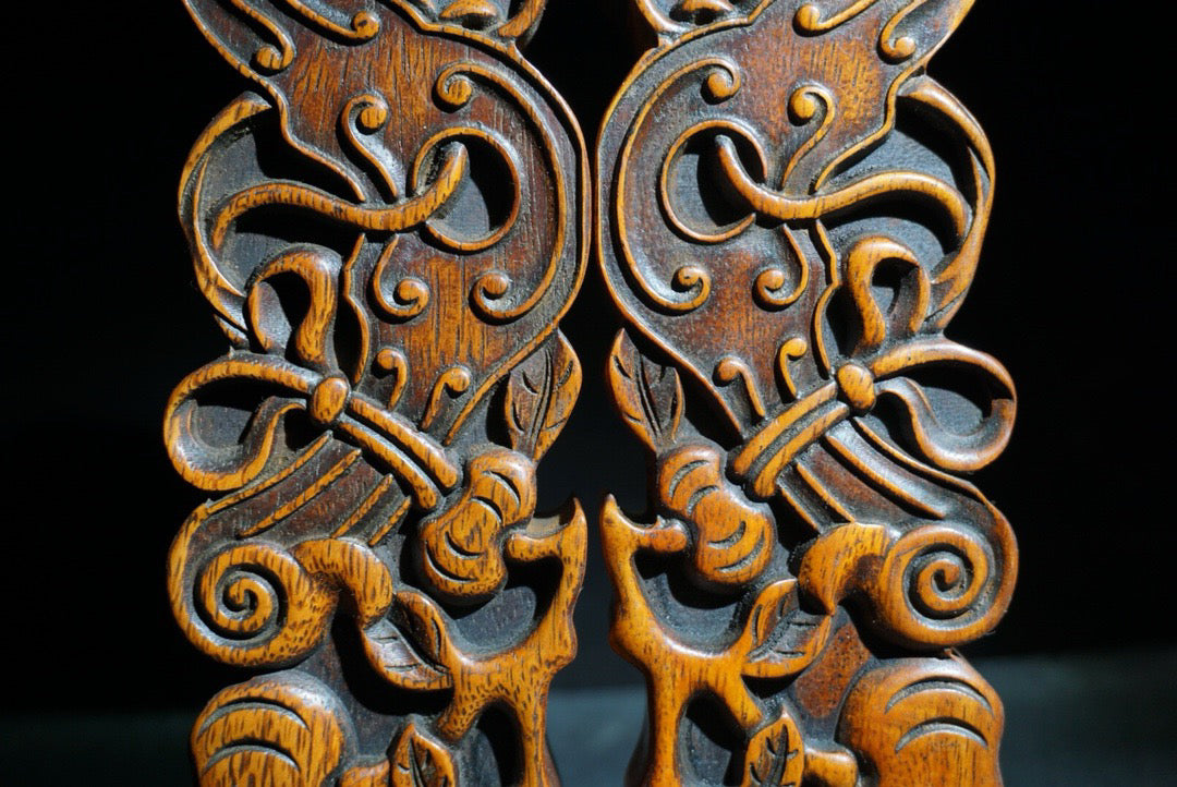 A pair of Chinese antique pear wood carved weighing scales
