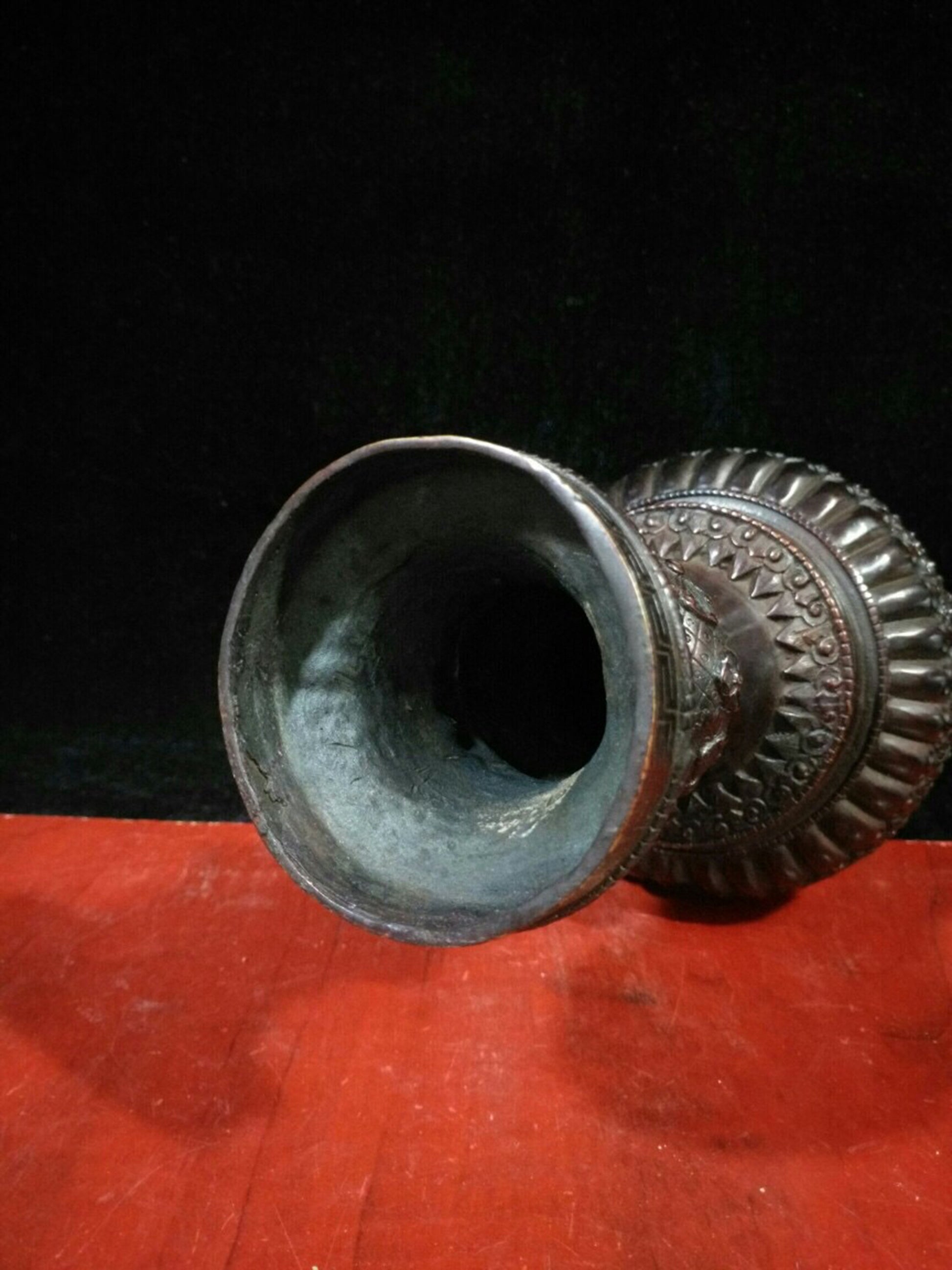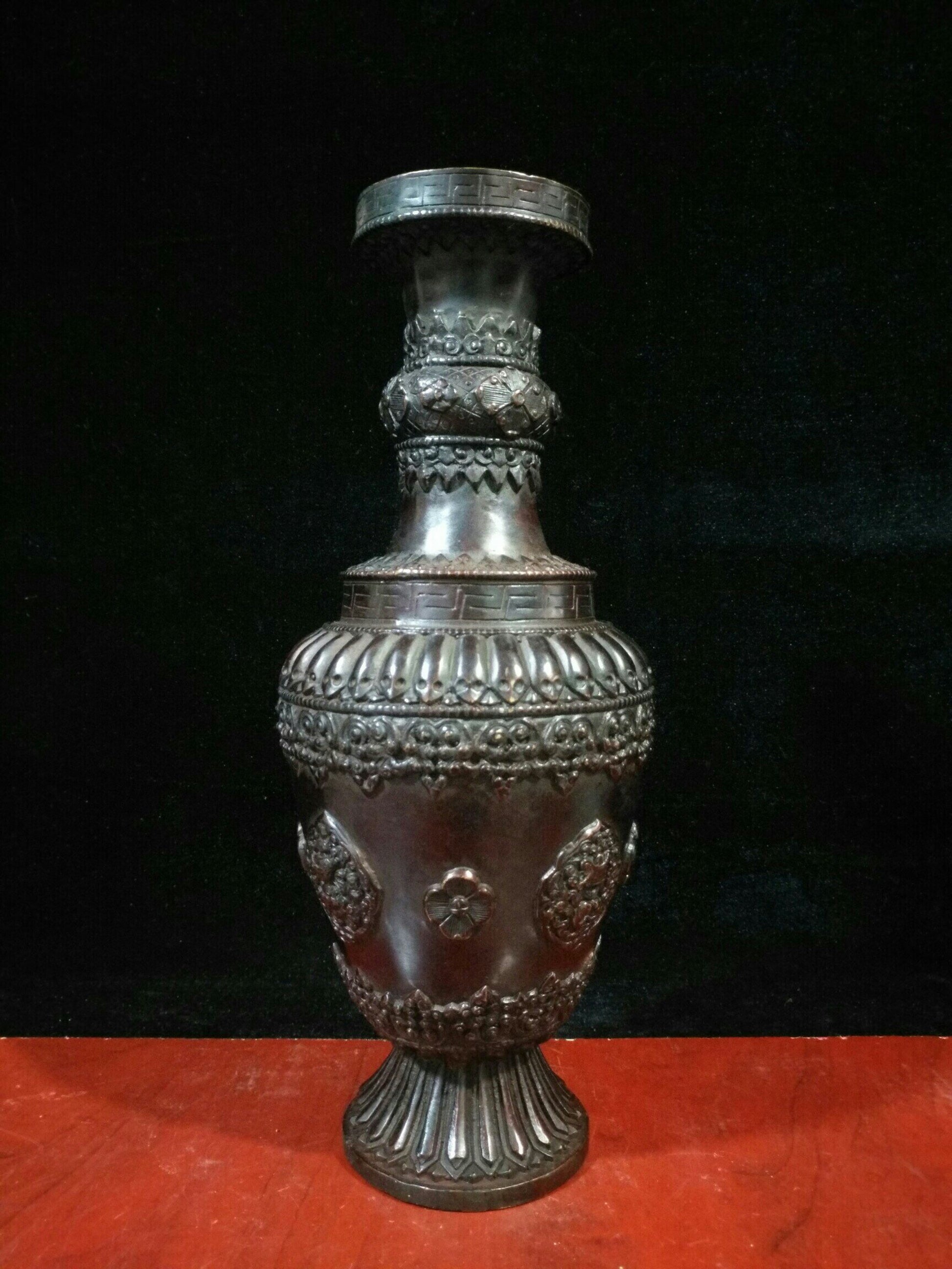 A pair of Chinese antique pure copper "Eight Auspicious Vases"