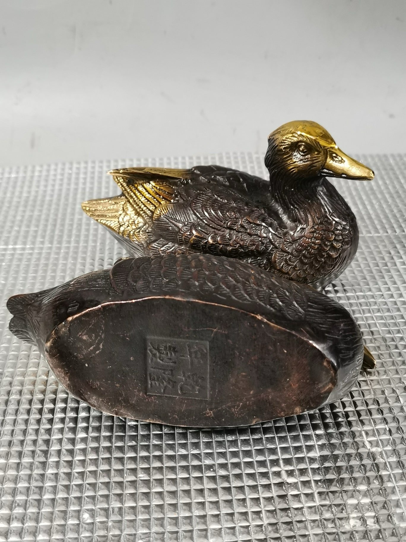 A pair of Chinese antique pure copper gilded mandarin ducks