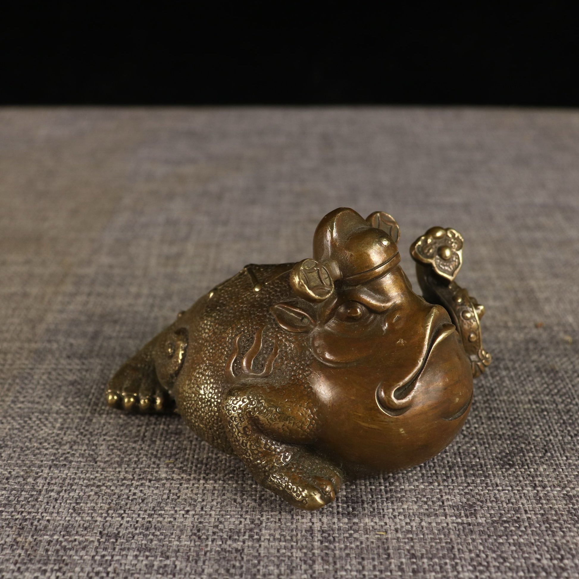 A pair of Chinese antique pure copper golden toads promoted to fame and wealth
