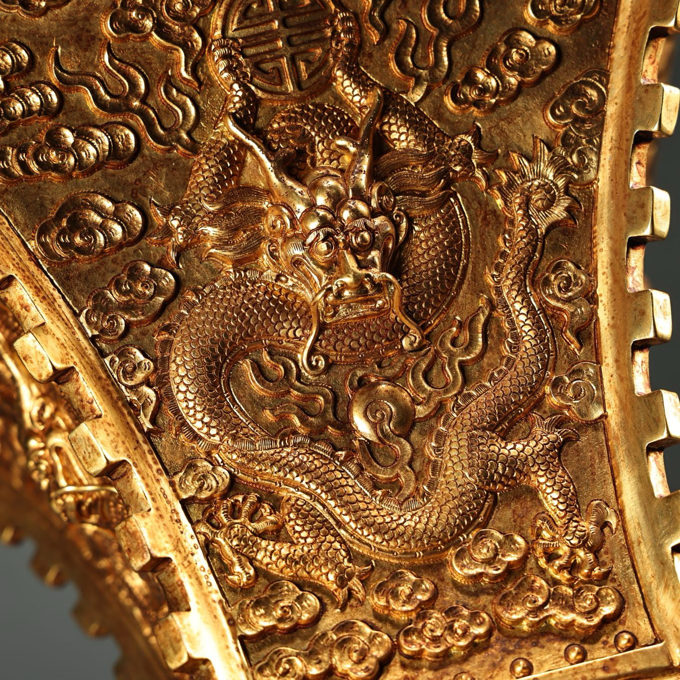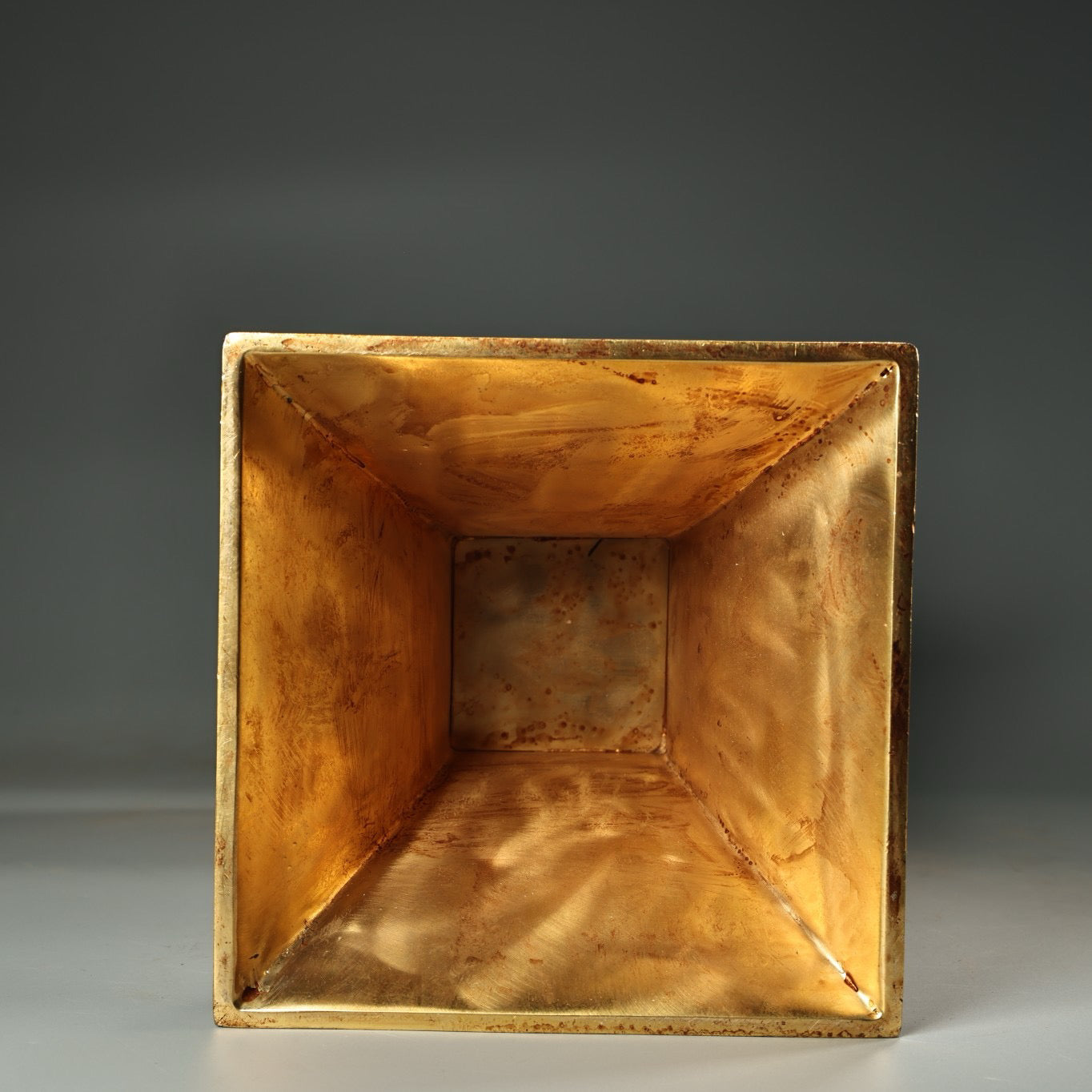 A pair of Chinese antique pure copper high relief carved gilded square statues