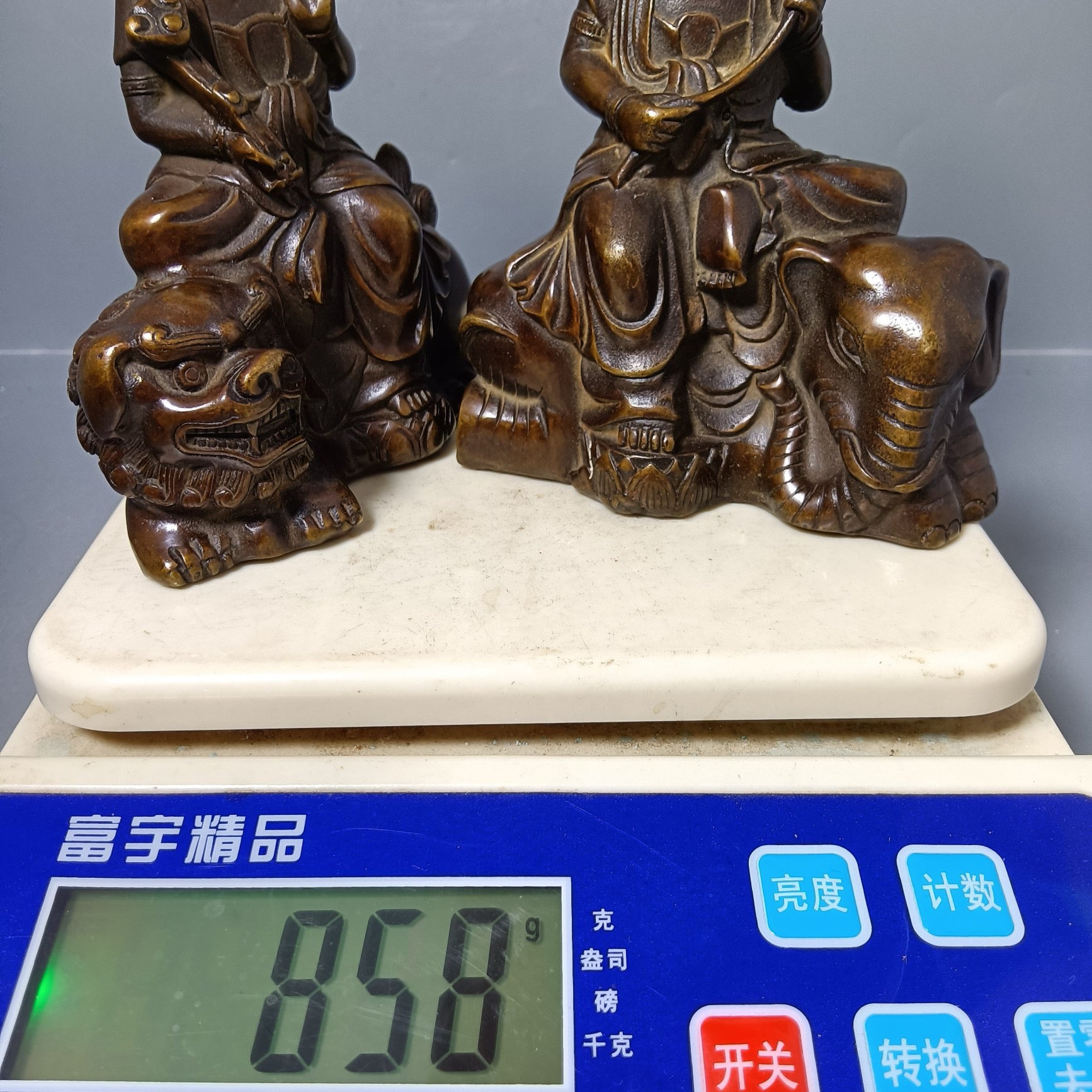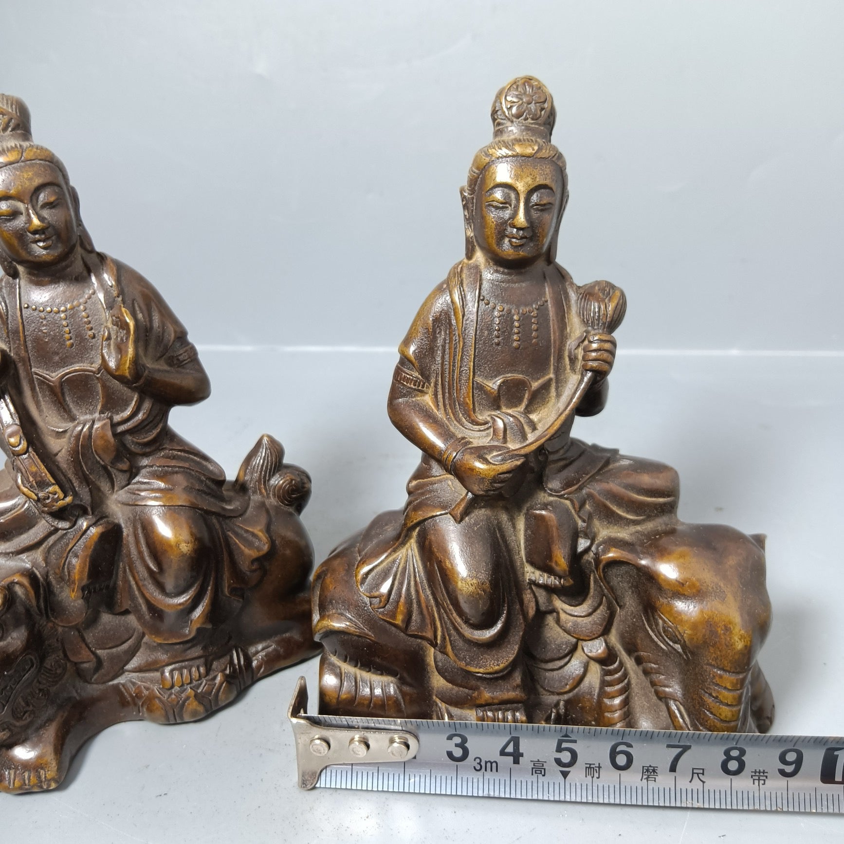 A pair of Chinese antique pure copper Manjushri universal sages