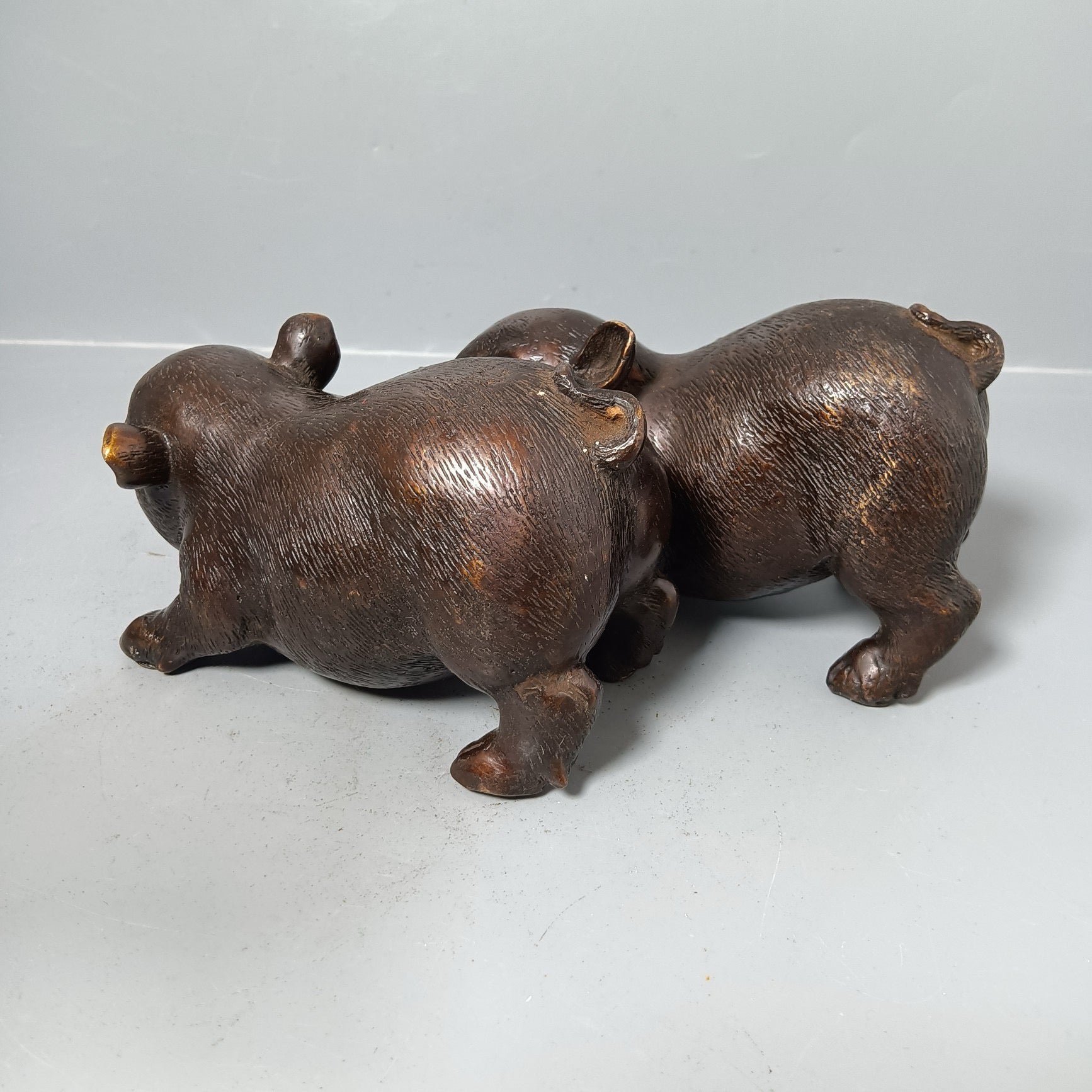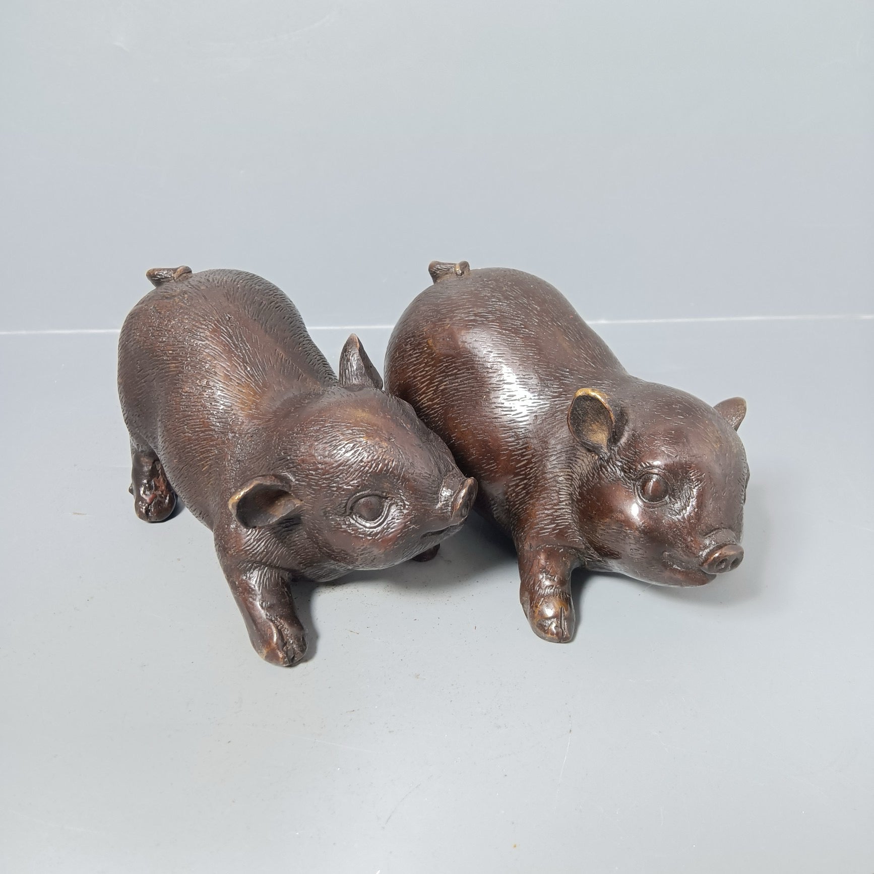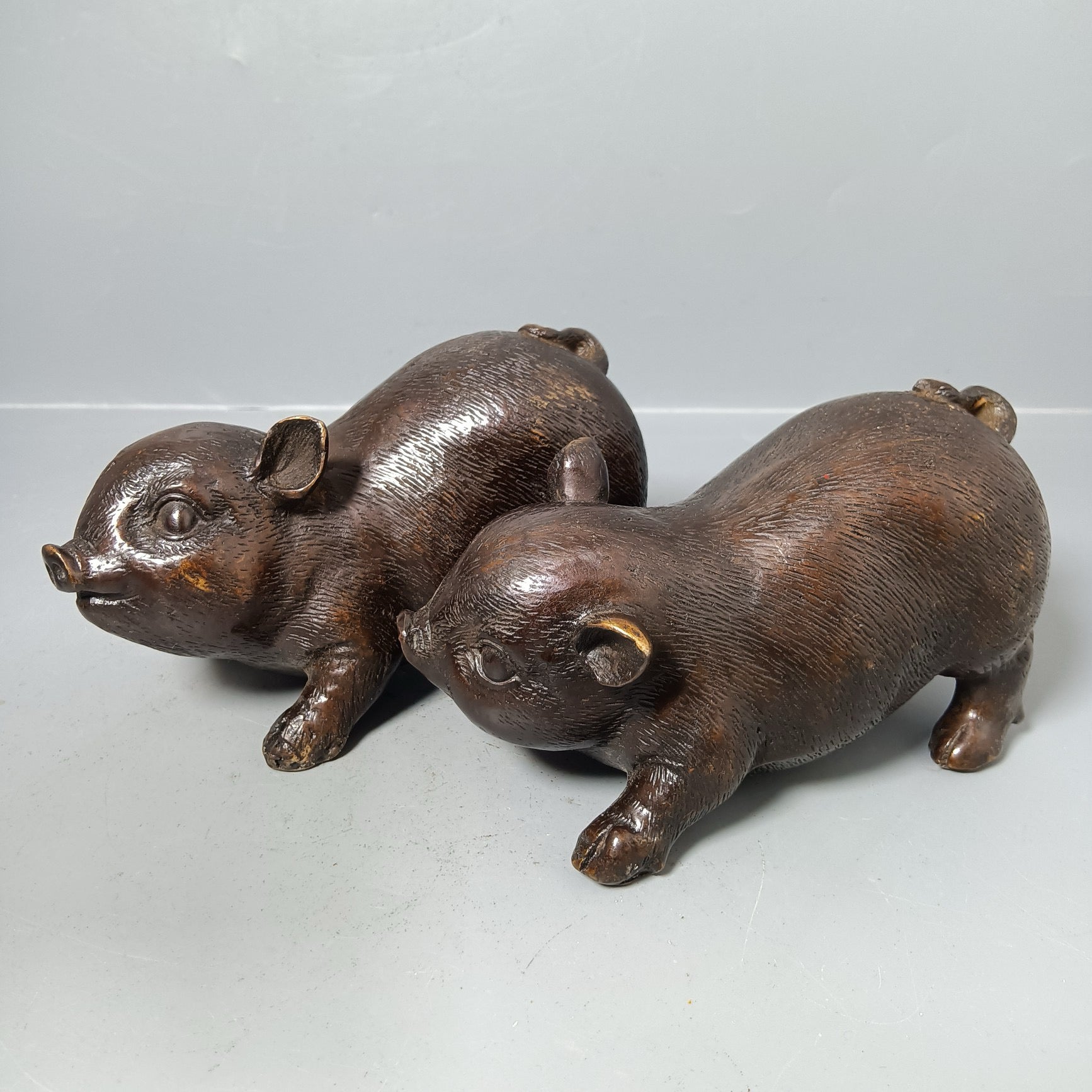 A pair of Chinese antique pure copper pigs