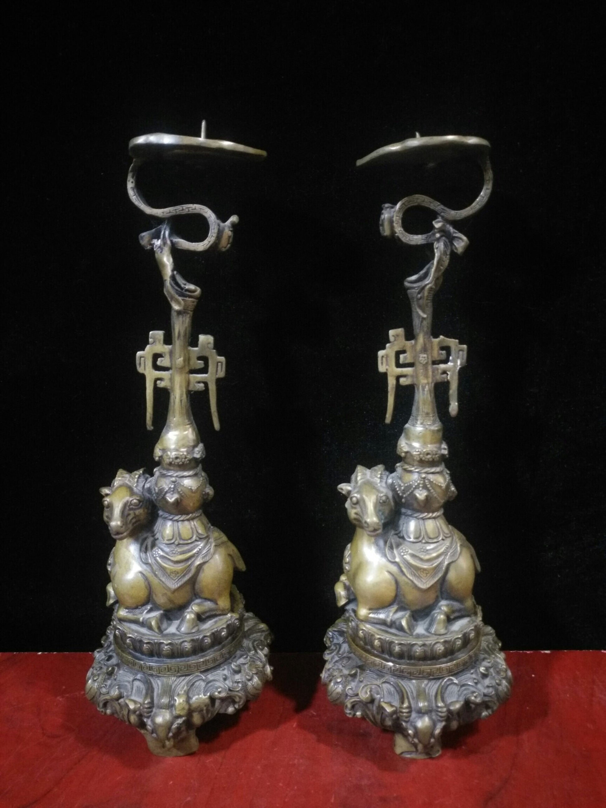 A pair of Chinese antique pure copper "Sheep and Sheep Ruyi"