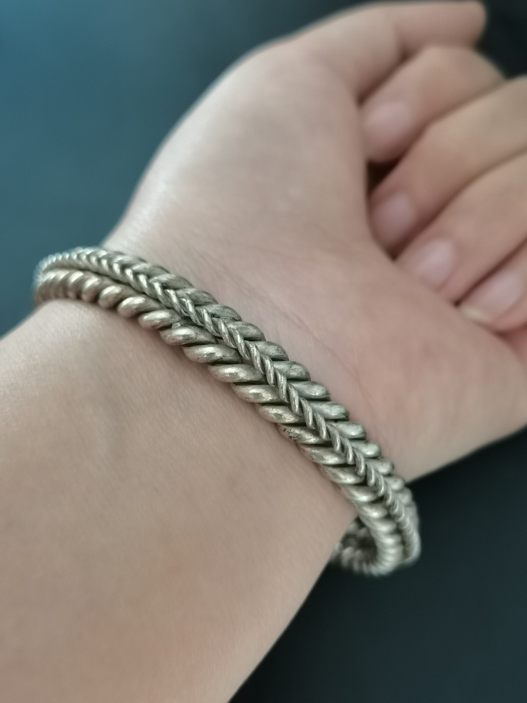 A pair of Chinese antique silver dragon head bracelets
