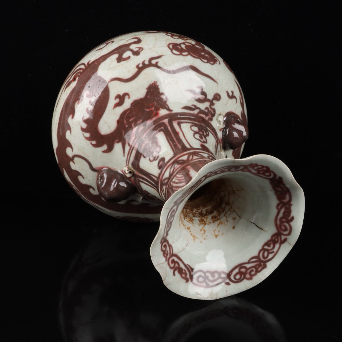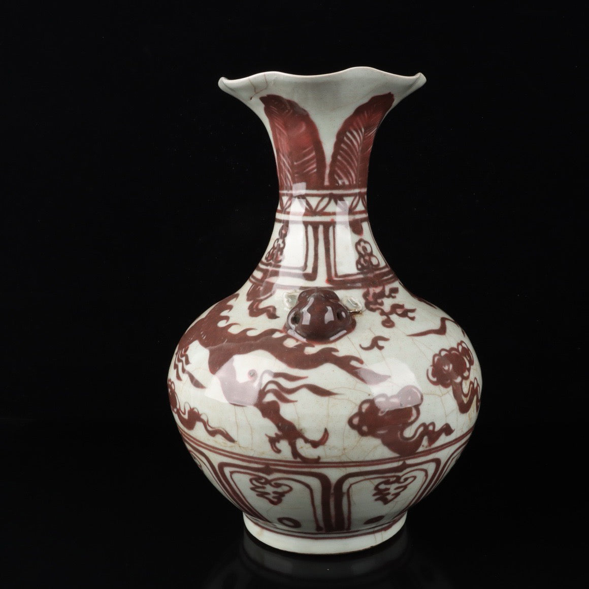 A pair of cloud dragon patterned beast ear bottles