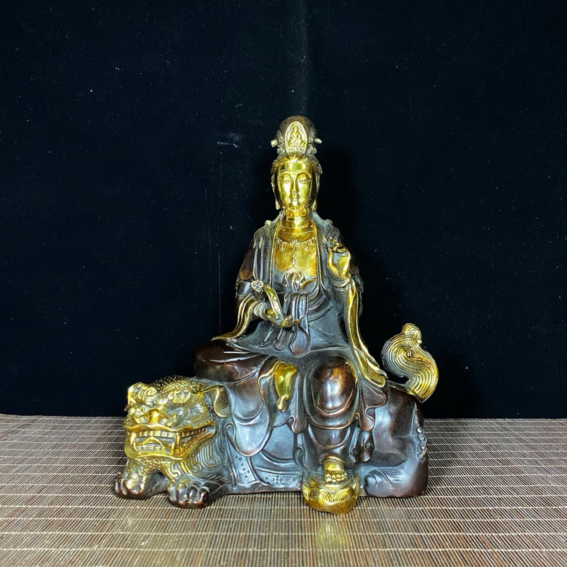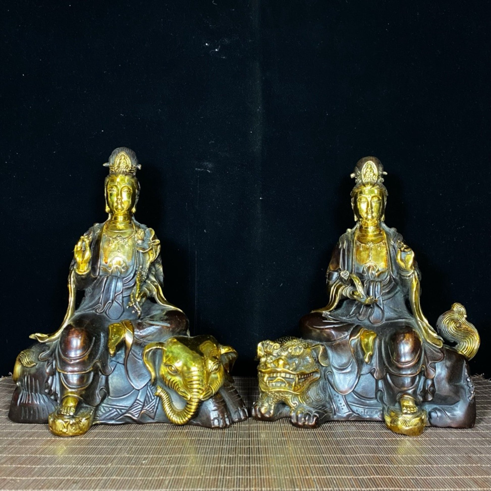 A pair of pure copper gilded large Manjushri Bodhisattva and Samantabhadra Bodhisattva