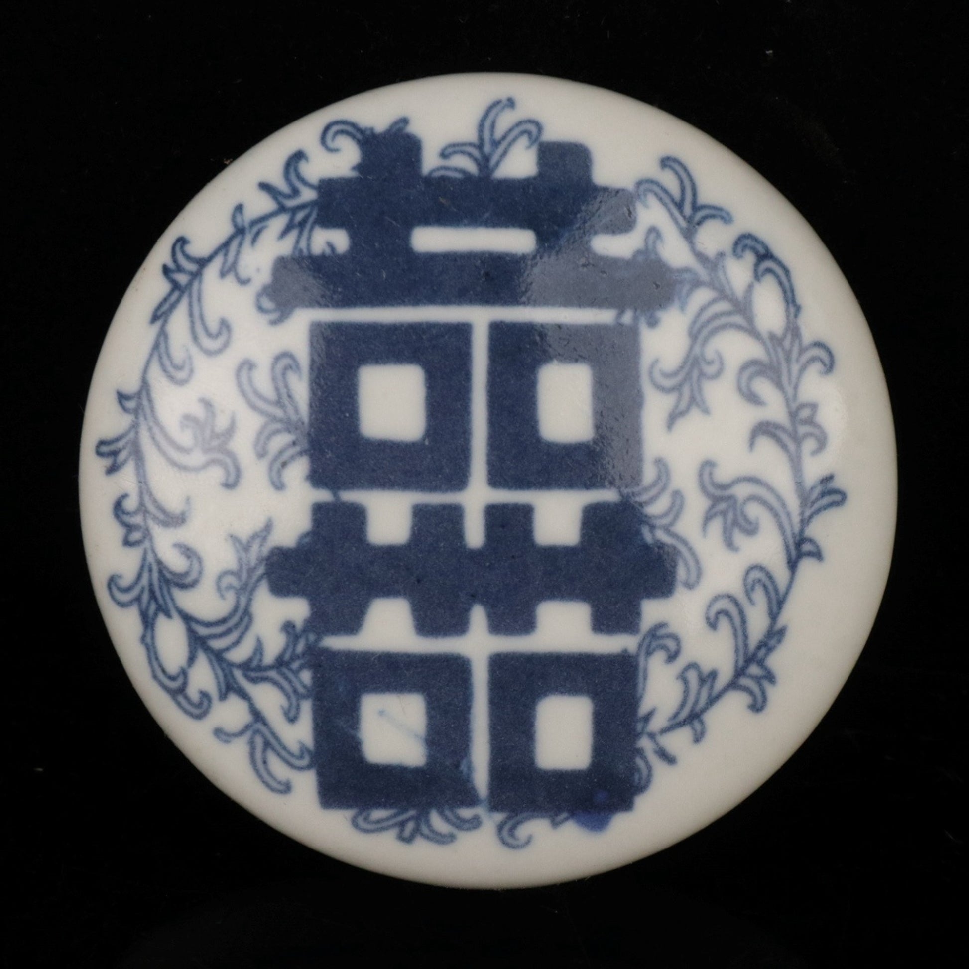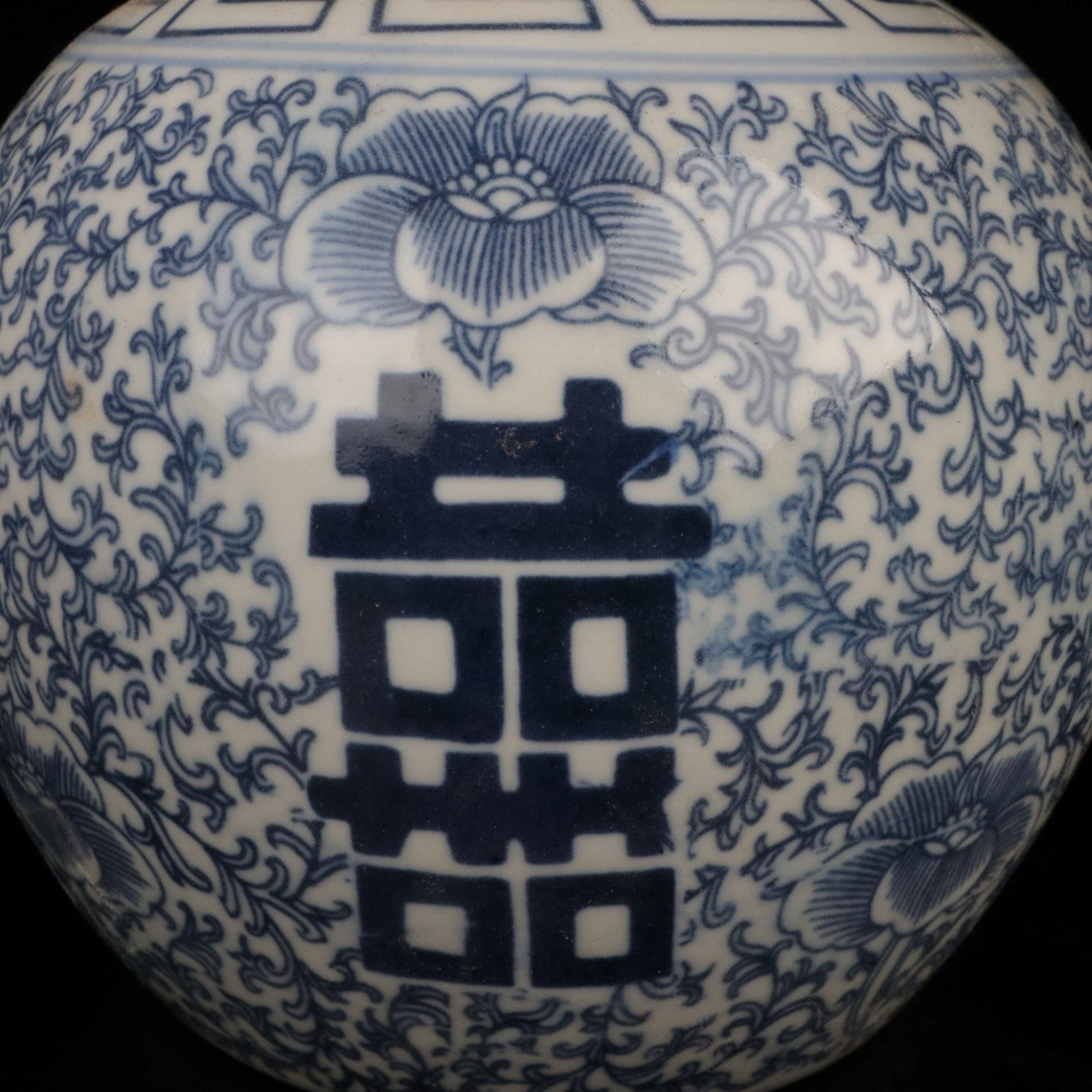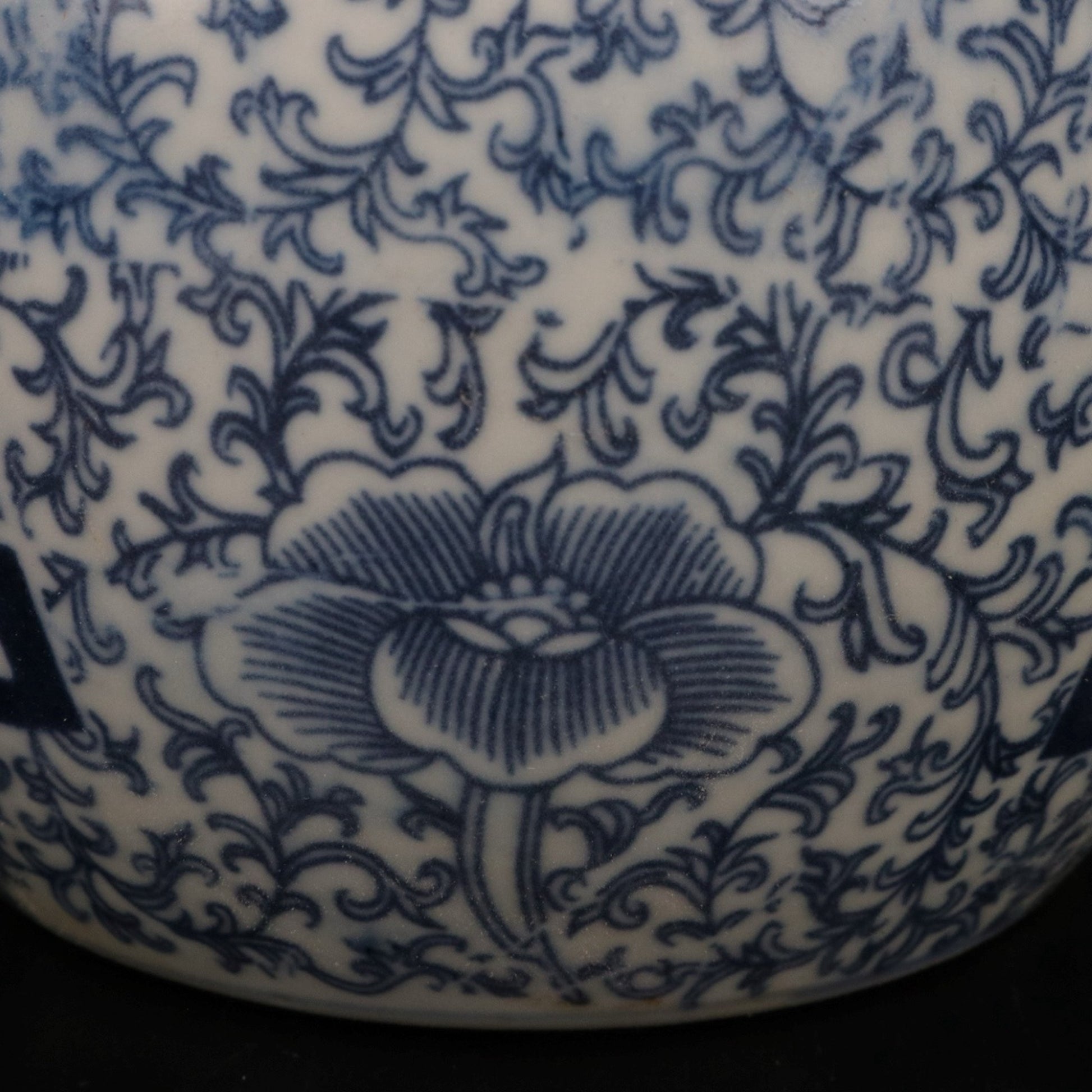 Blue and white auspicious characters, floral patterns, and precious pearl altar