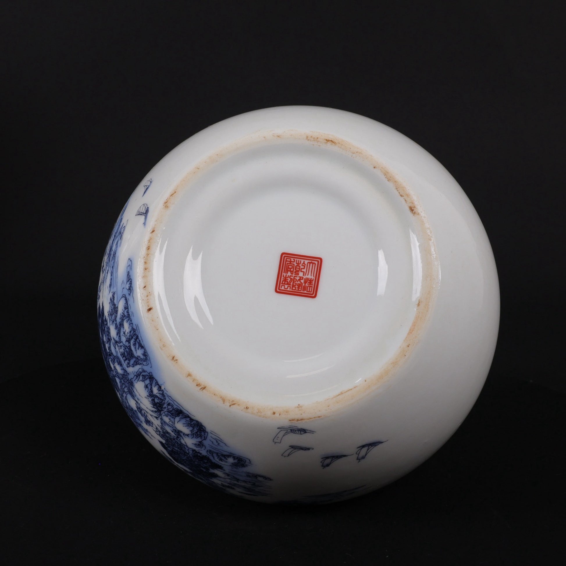 Blue and White Creek Mountain Travel Pattern Brush Wash