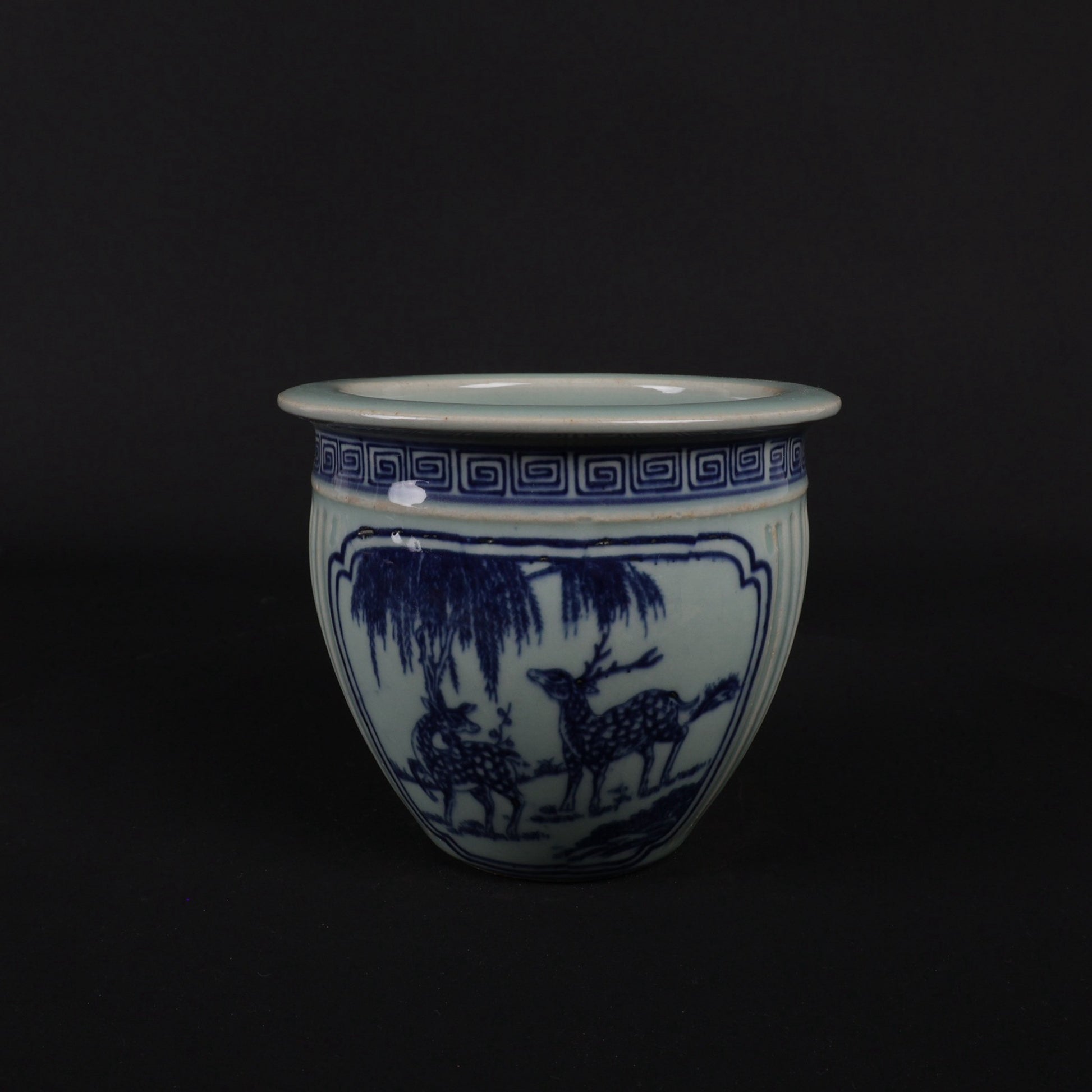 Blue and white double deer patterned small jar