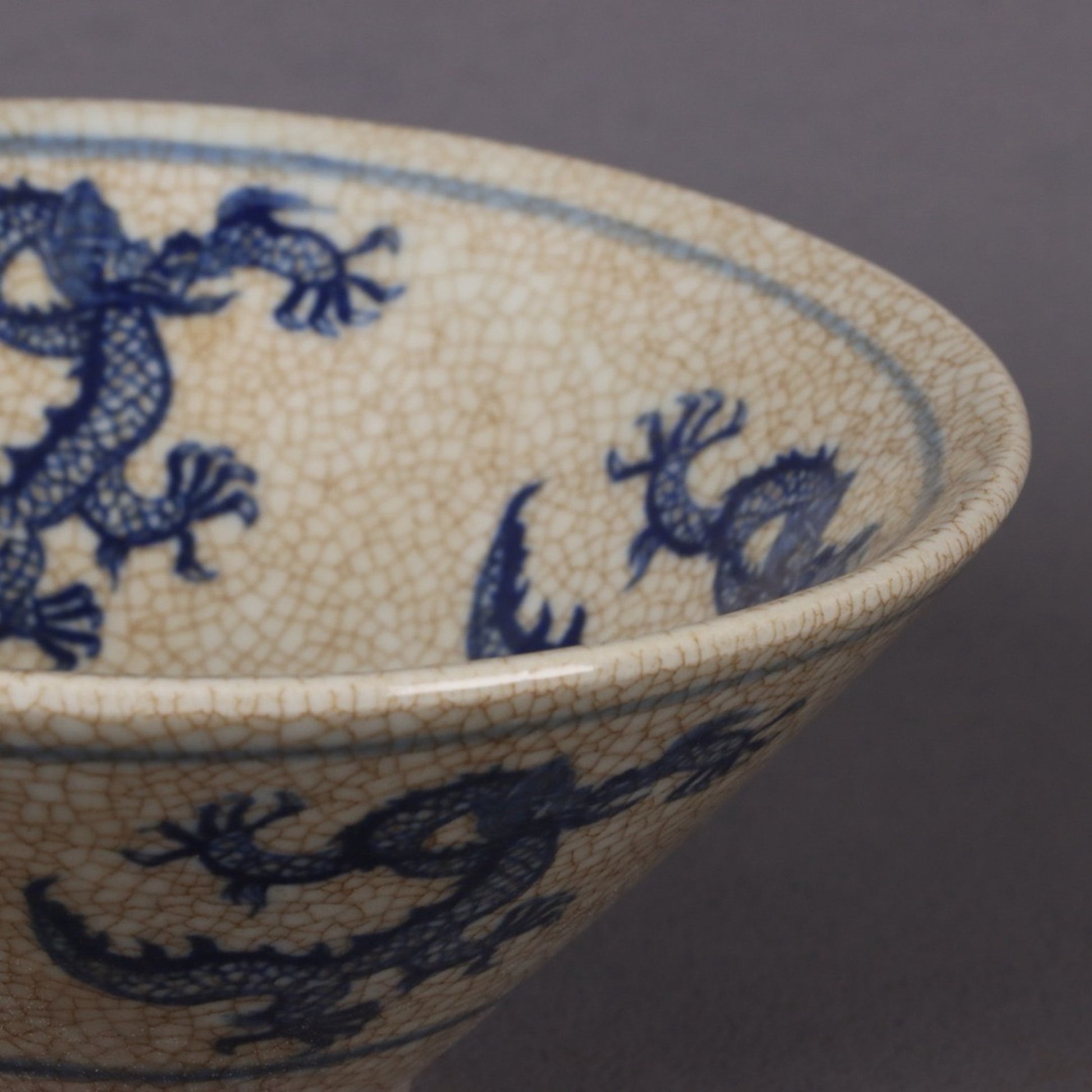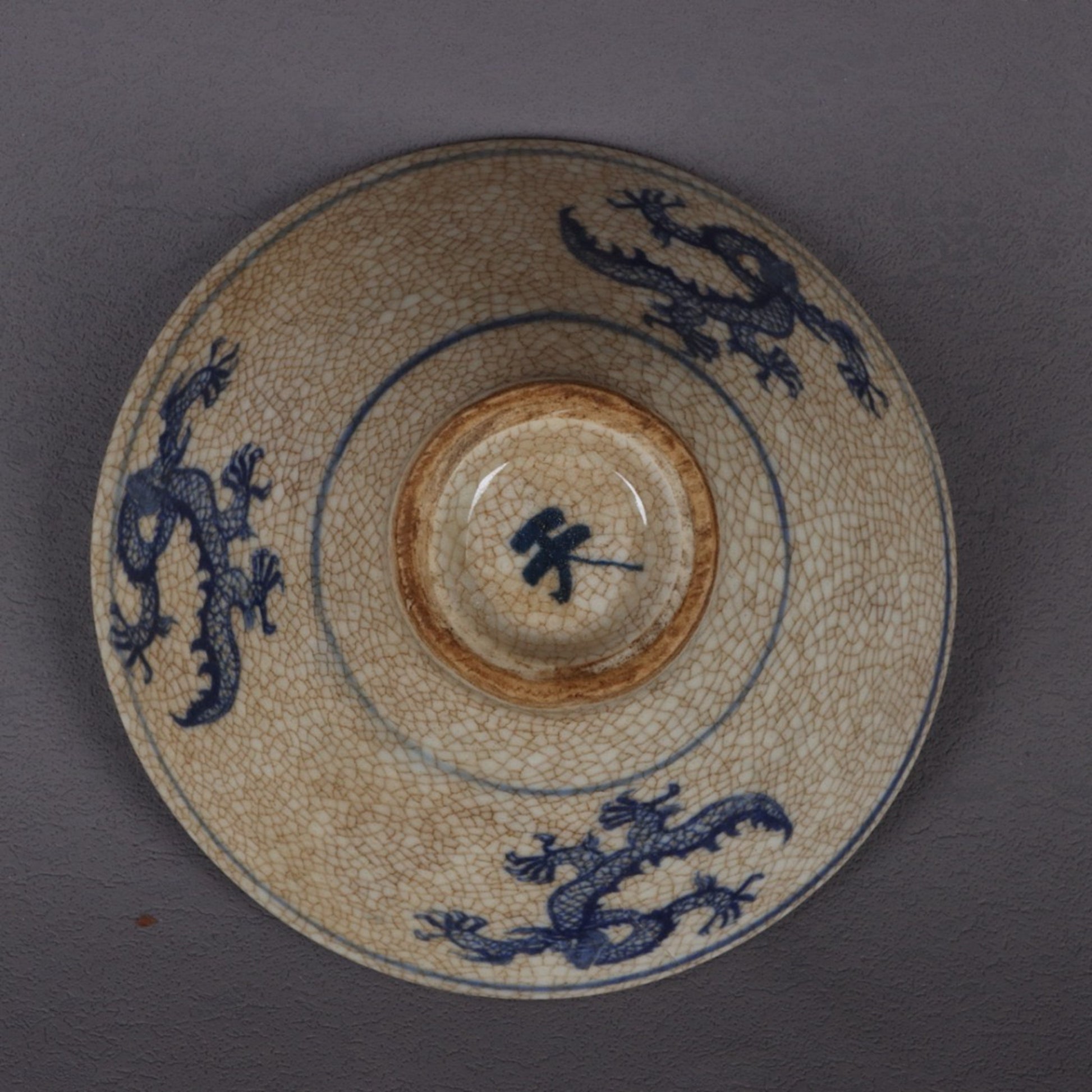 Blue and white dragon patterned sky shaped bamboo hat bowl