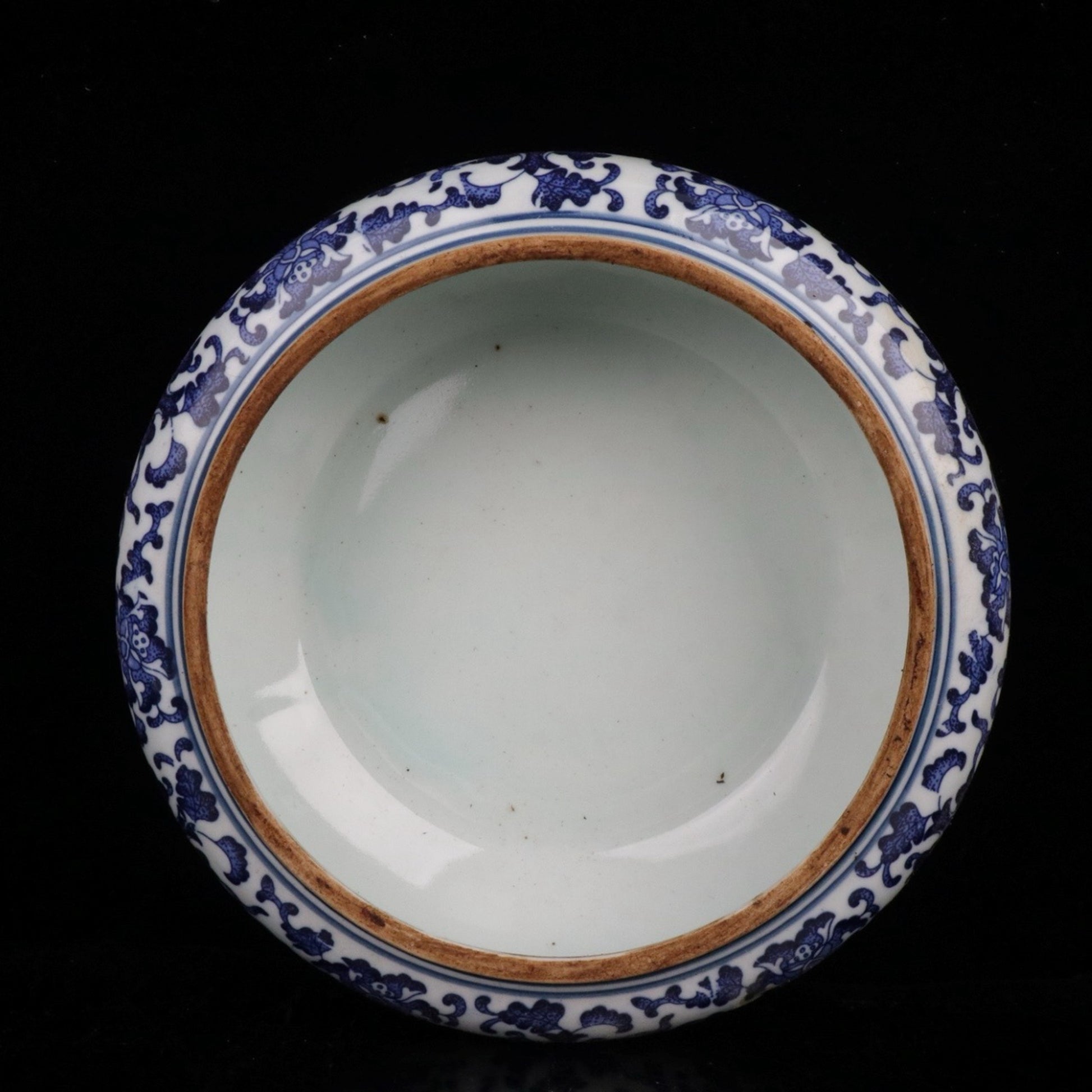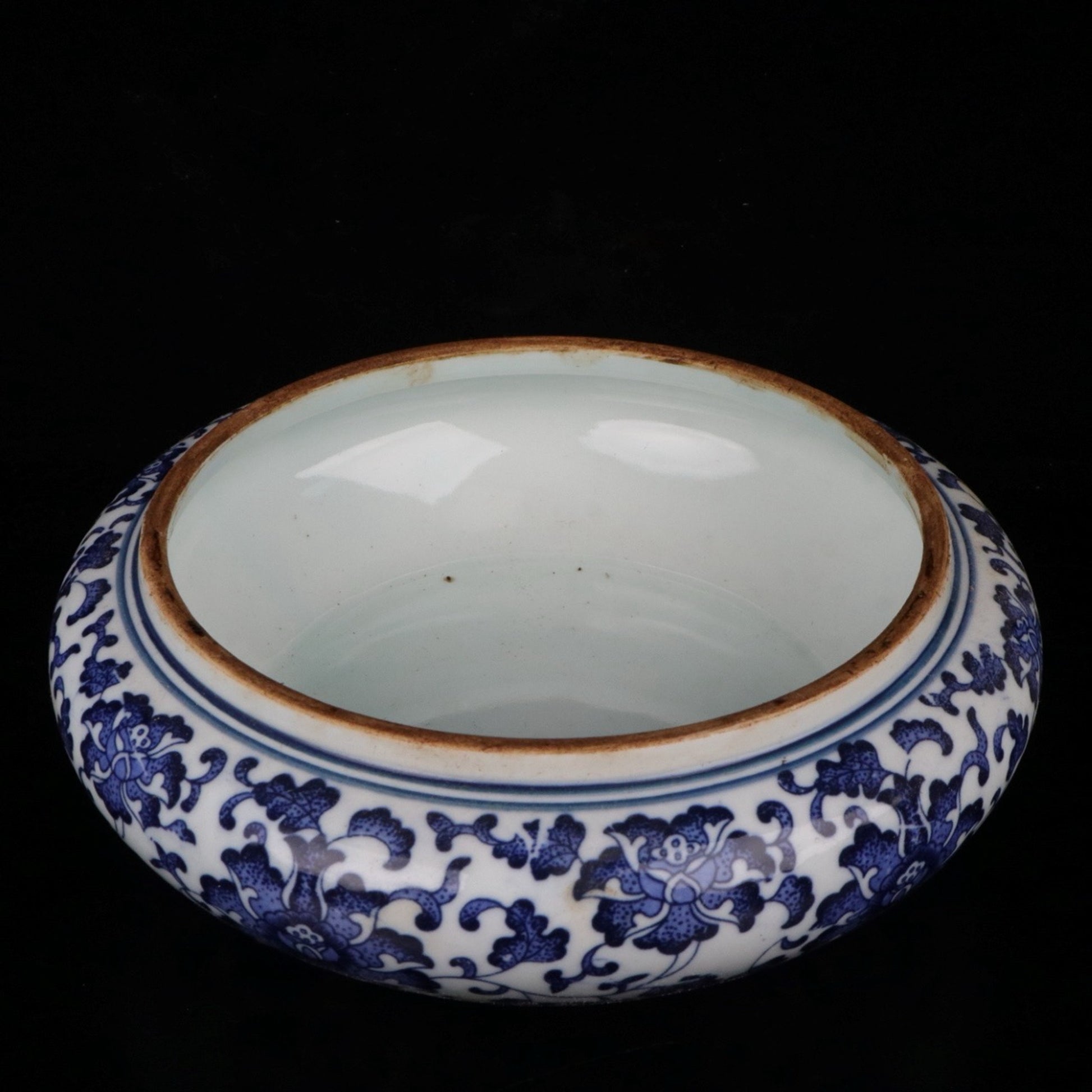 Blue and white entangled branches and lotus patterned tea cake lid jar