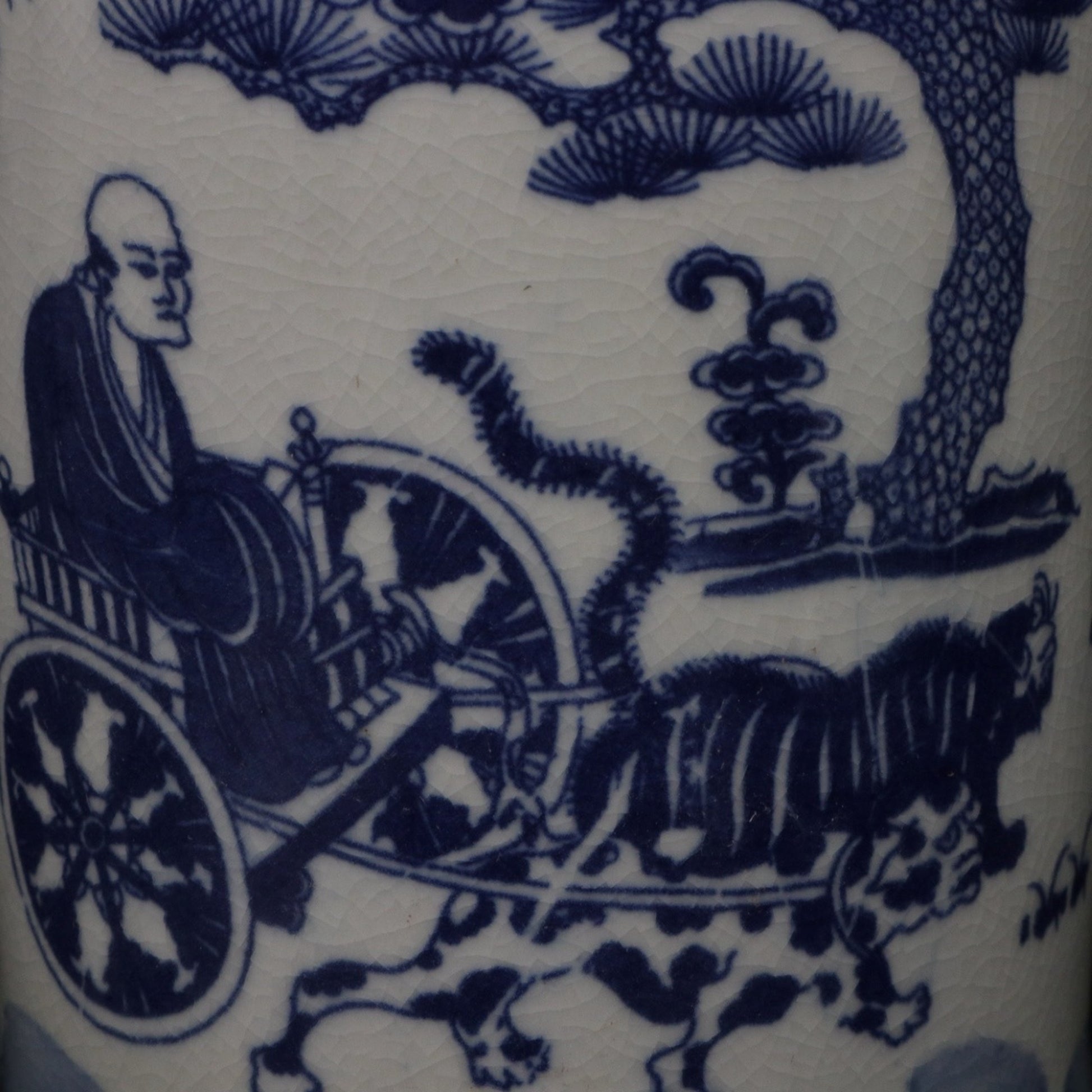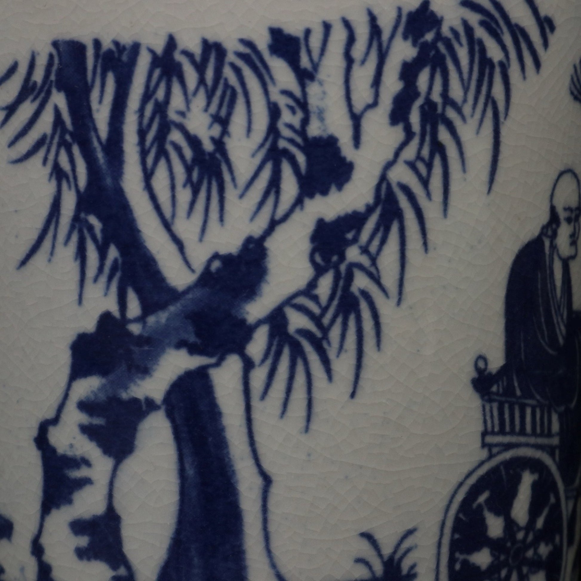 Blue and White Ghost Valley Descending Mountain Pattern Tea Jar