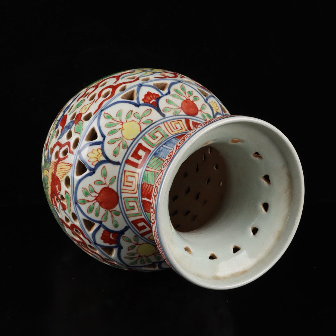Blue and white hollowed out bottle with colorful Kirin pattern