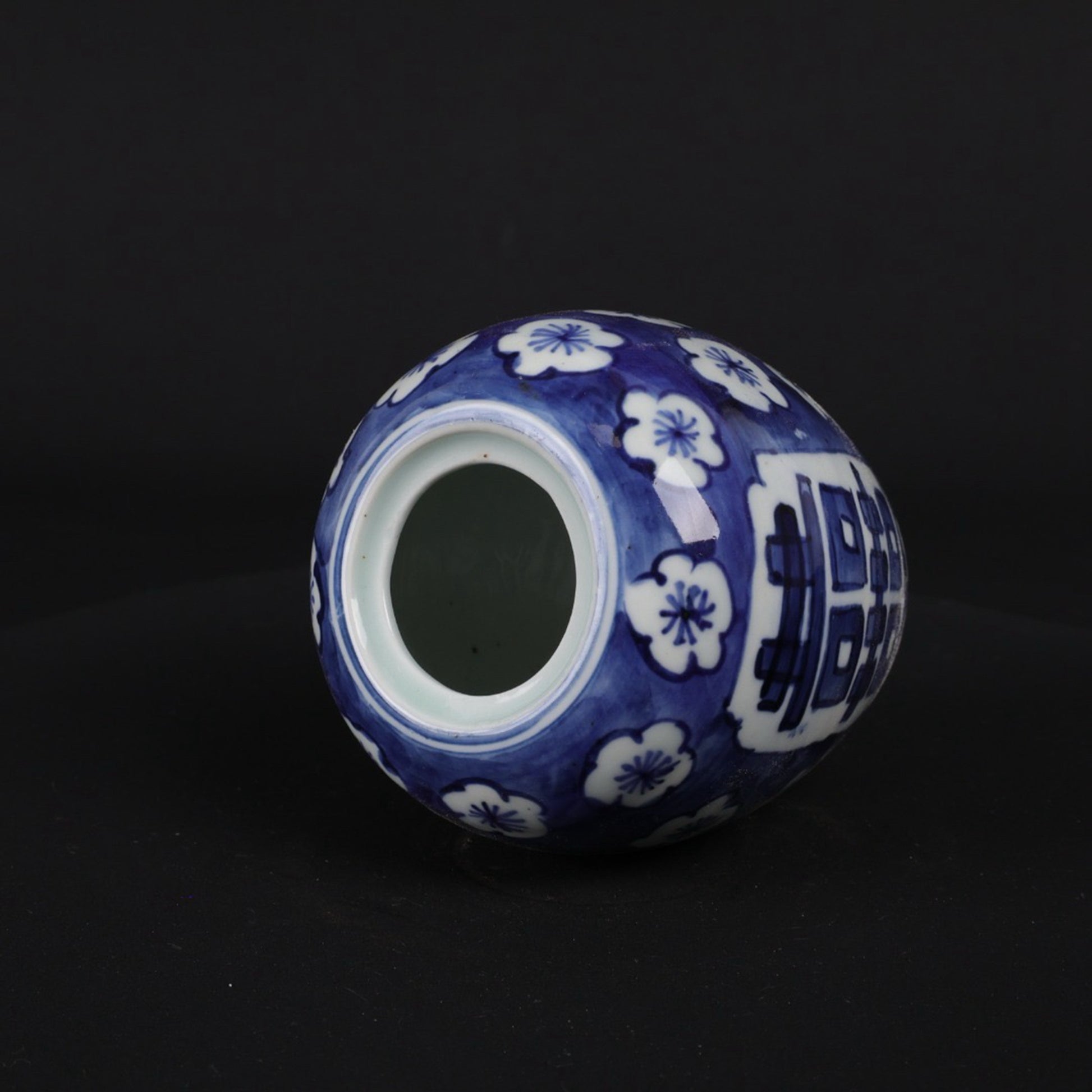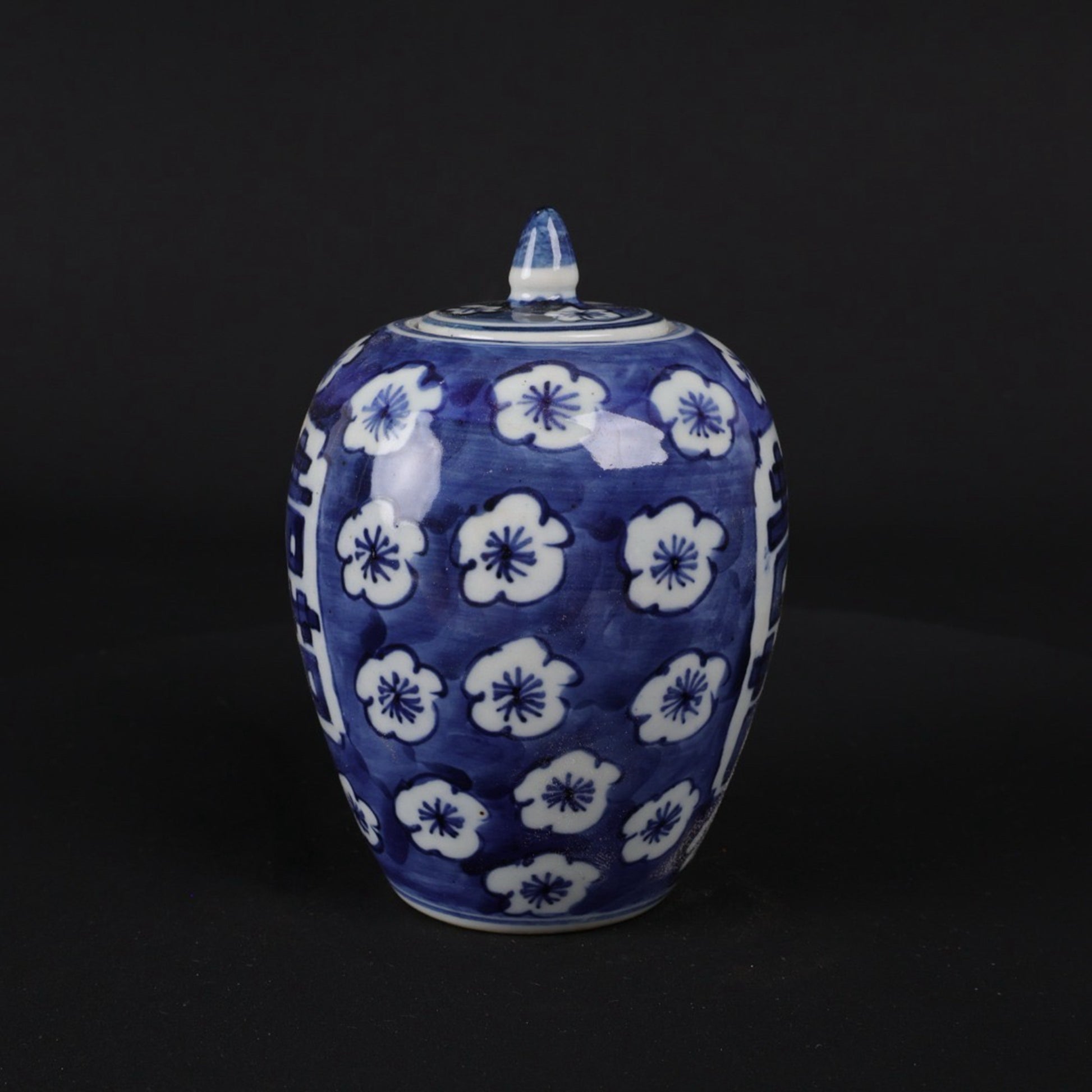Blue and white ice plum double happiness pattern small Donggua jar