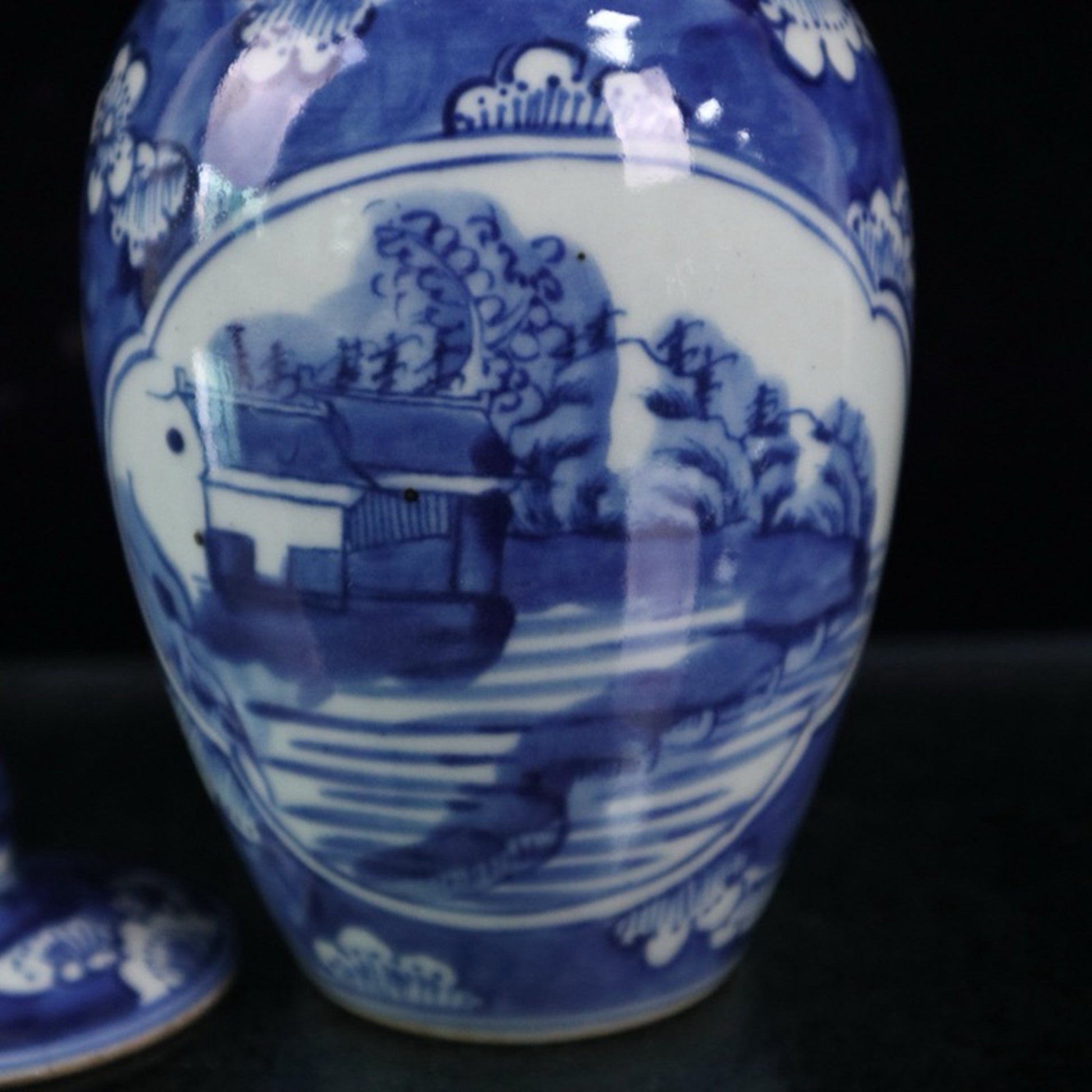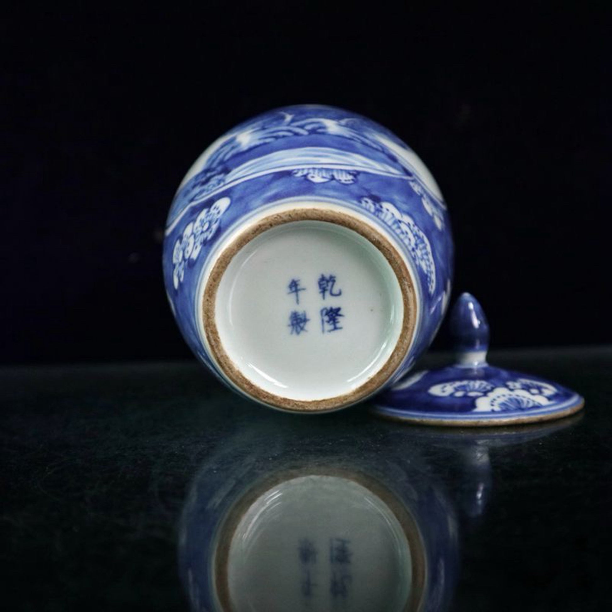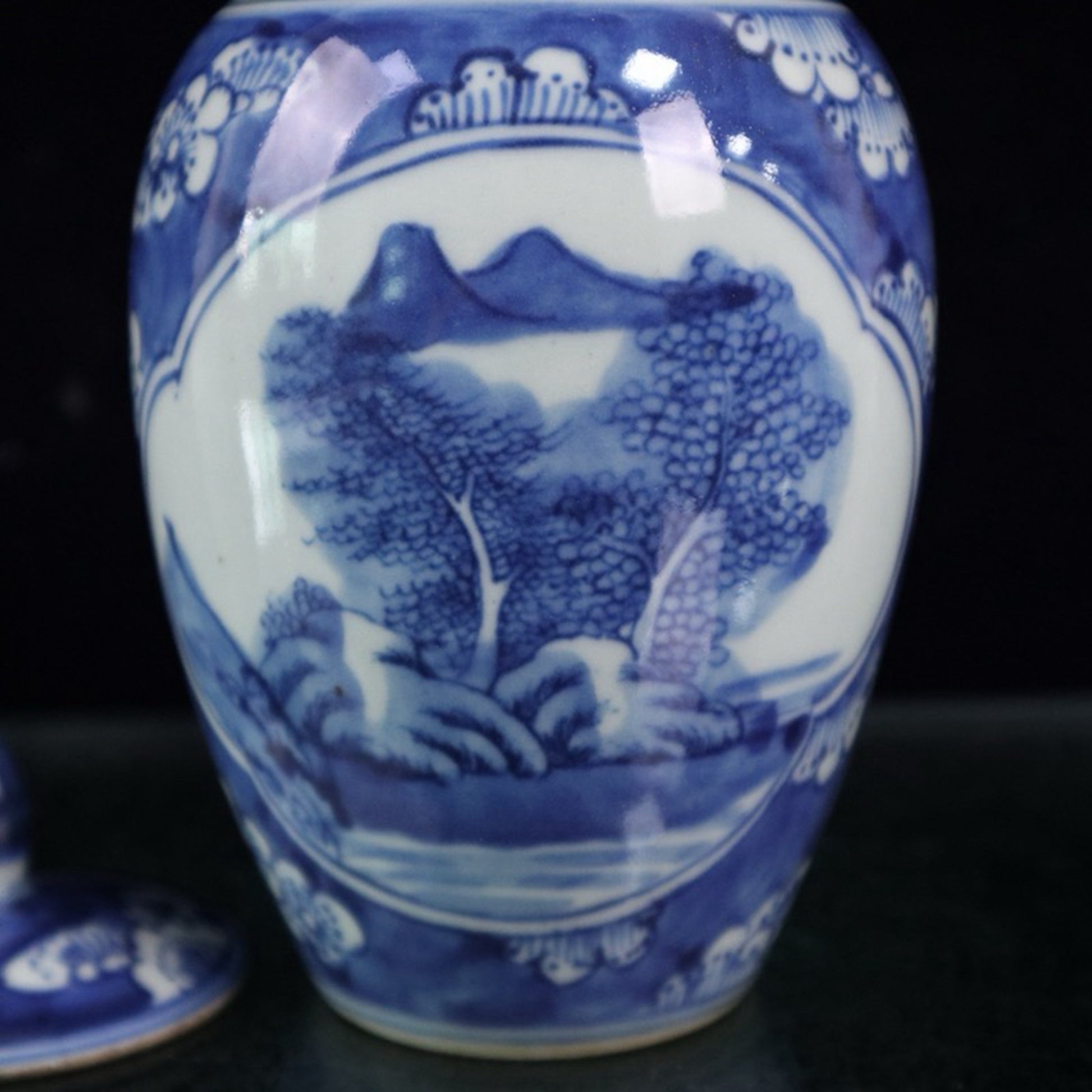 Blue and white ice plum patterned mountain and water patterned lid jar
