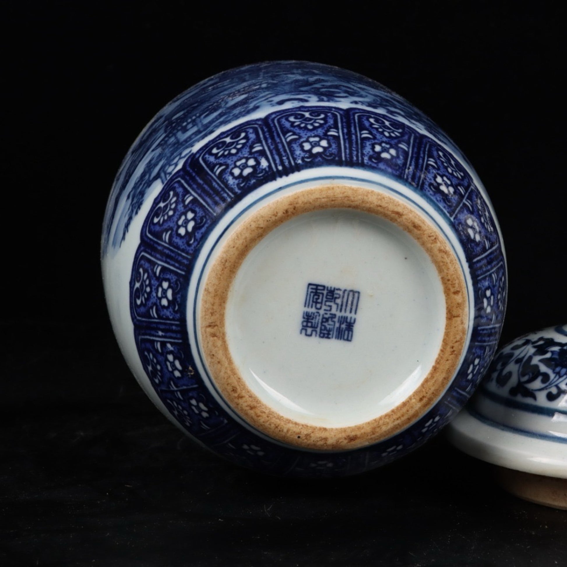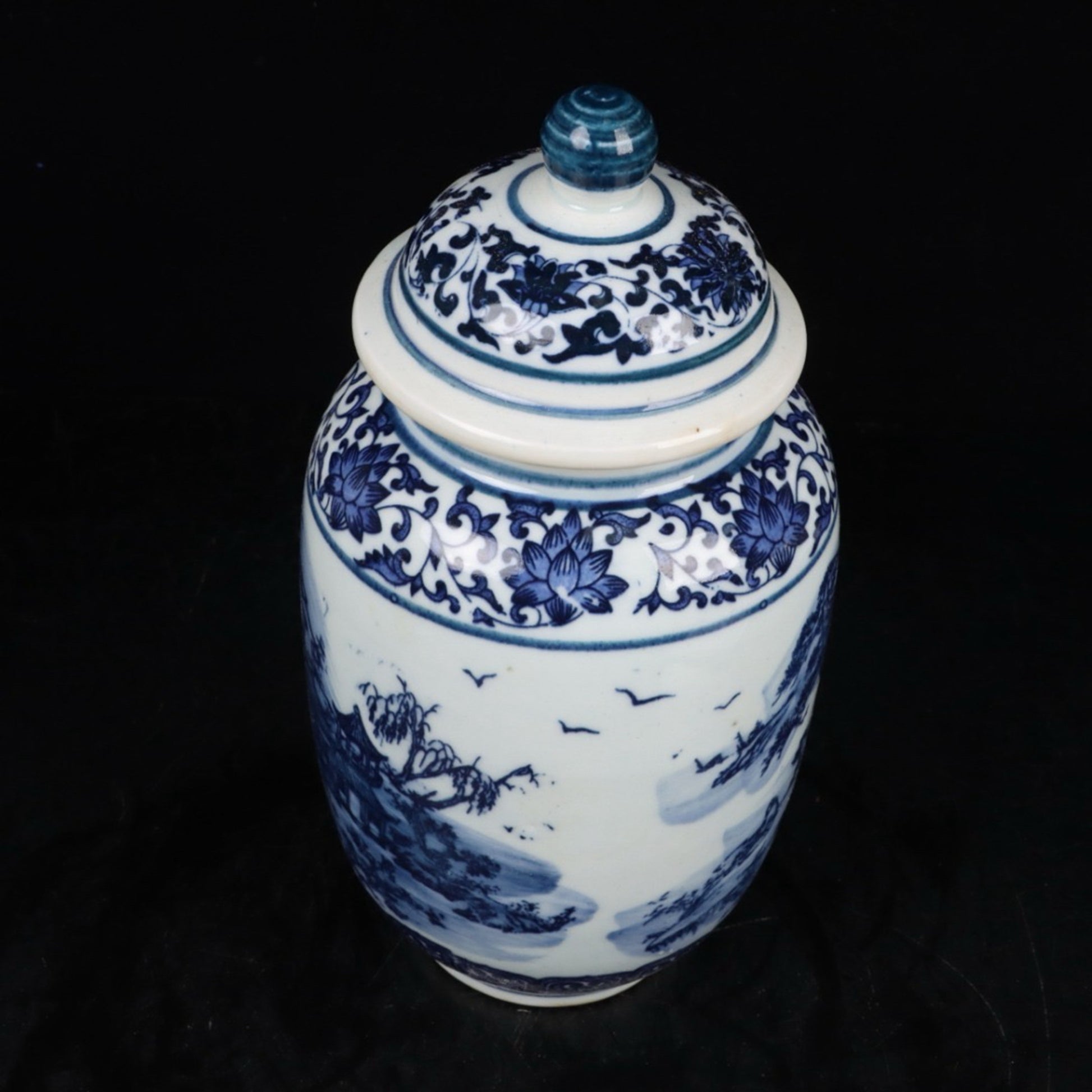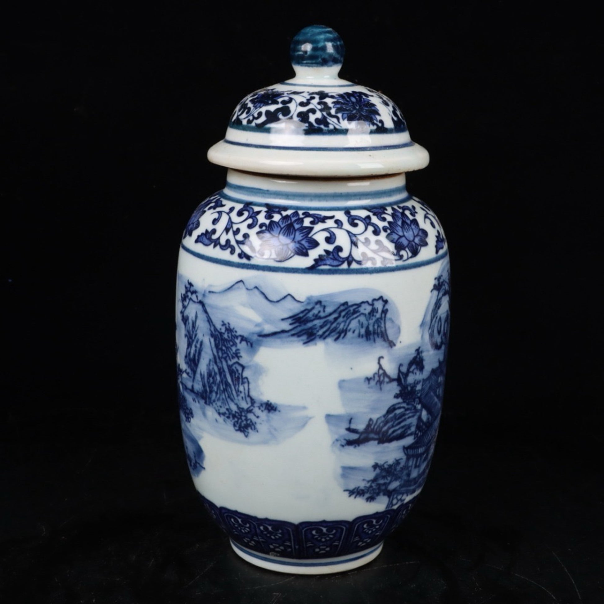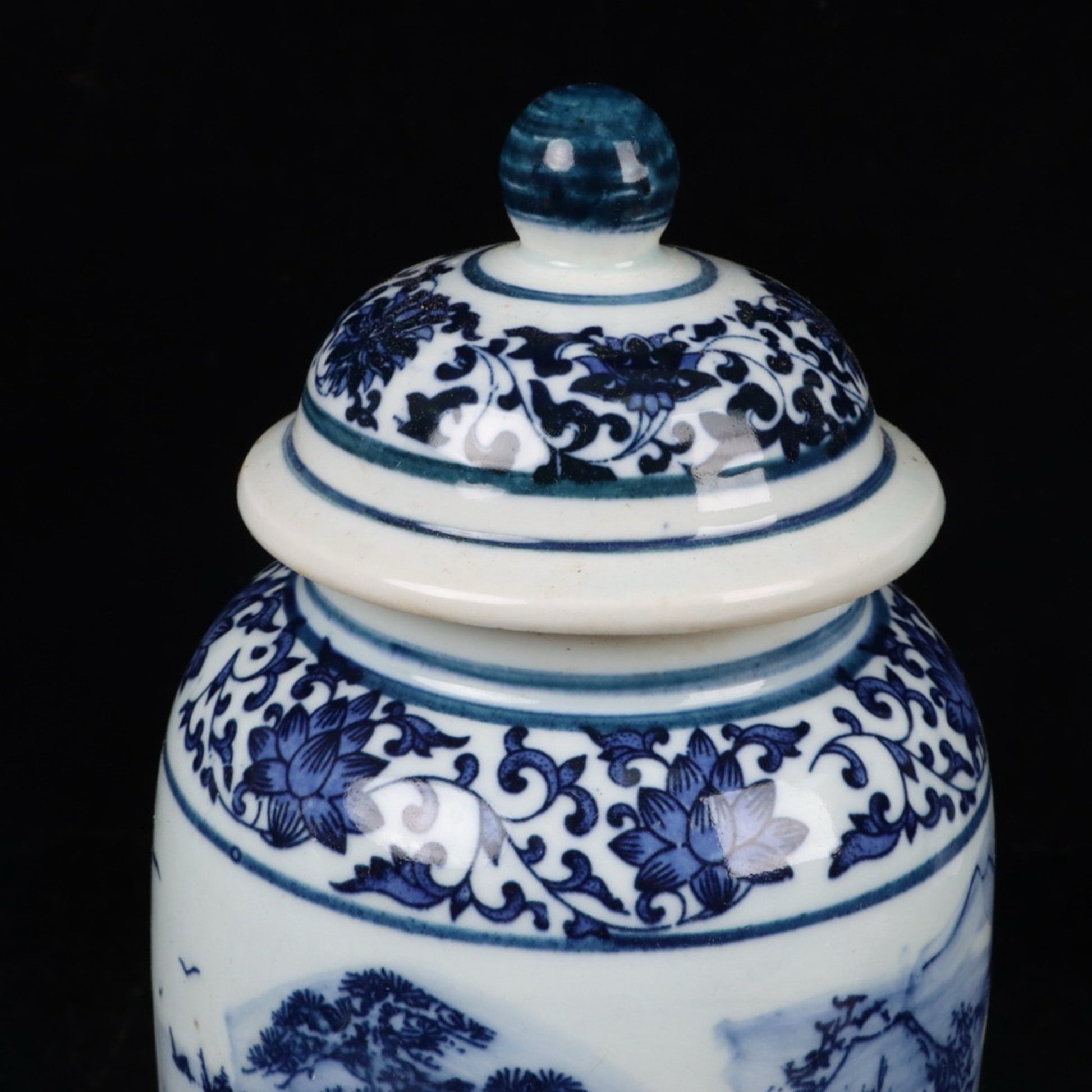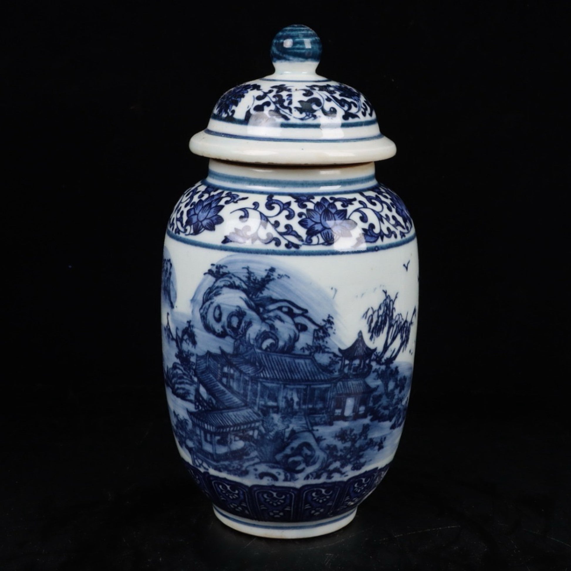 Blue and white landscape general jar
