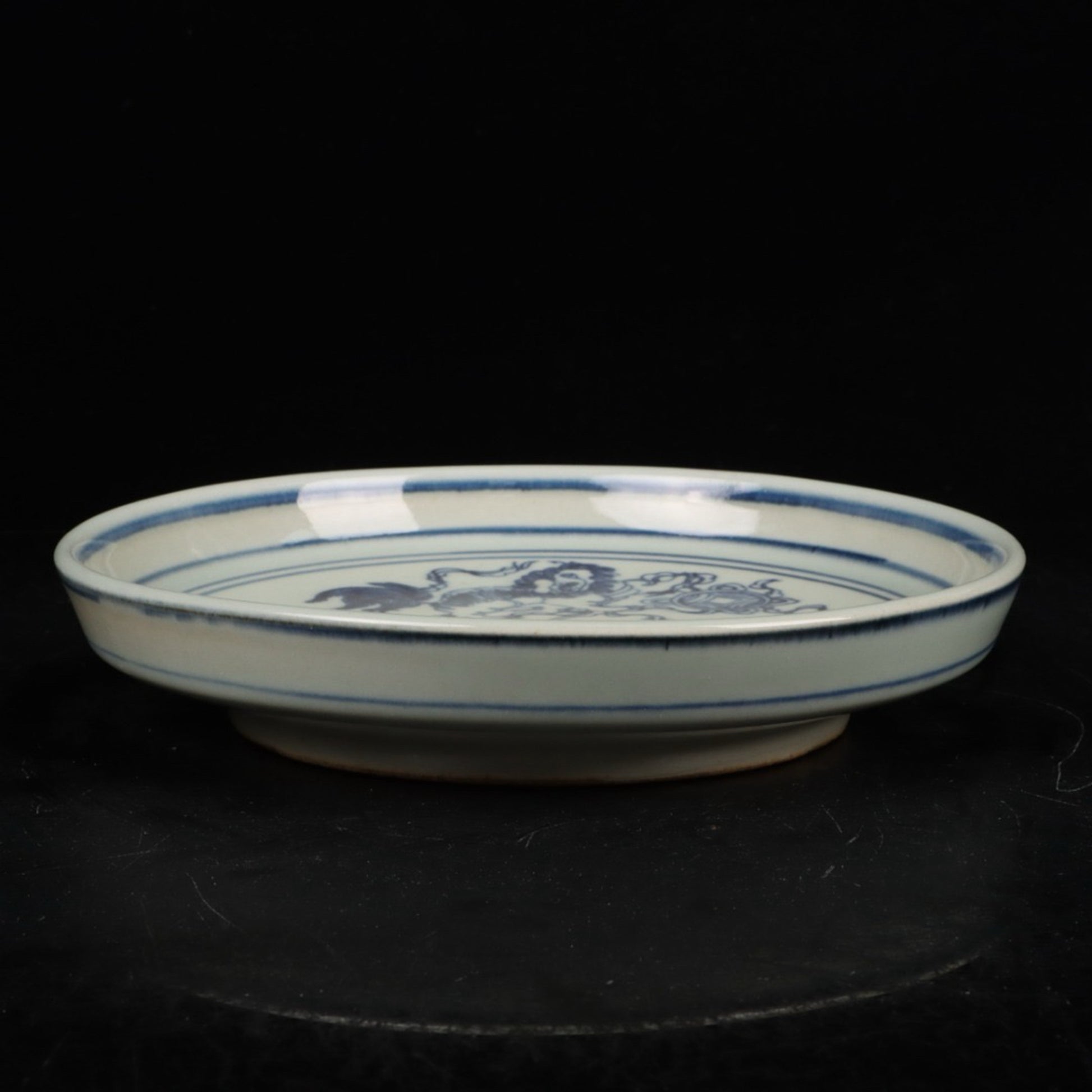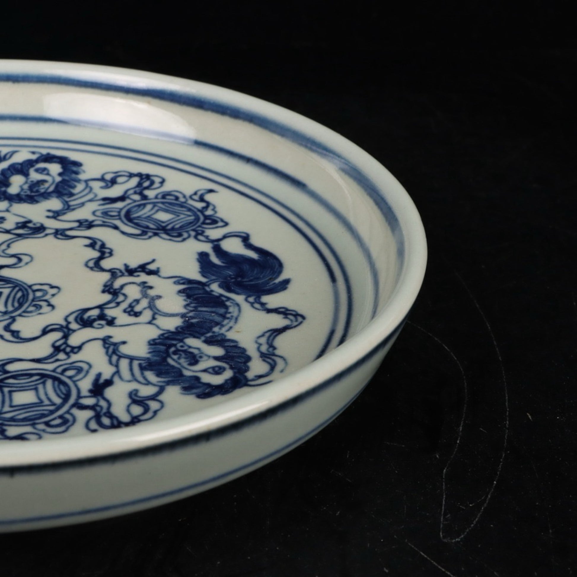Blue and white lion rolling embroidered ball patterned tea plate