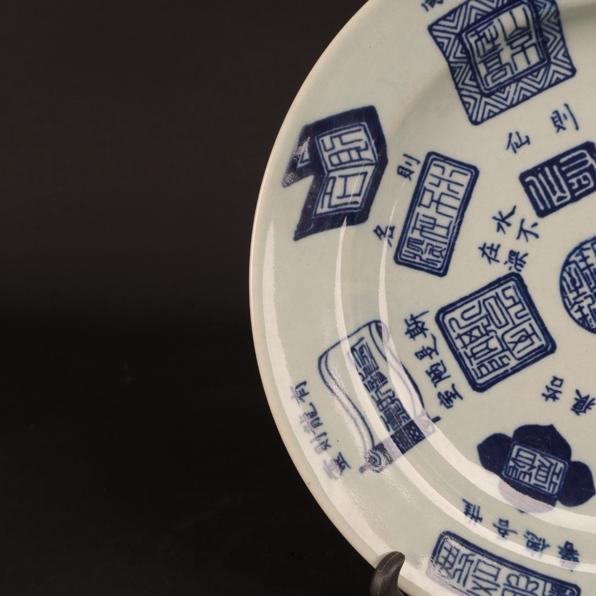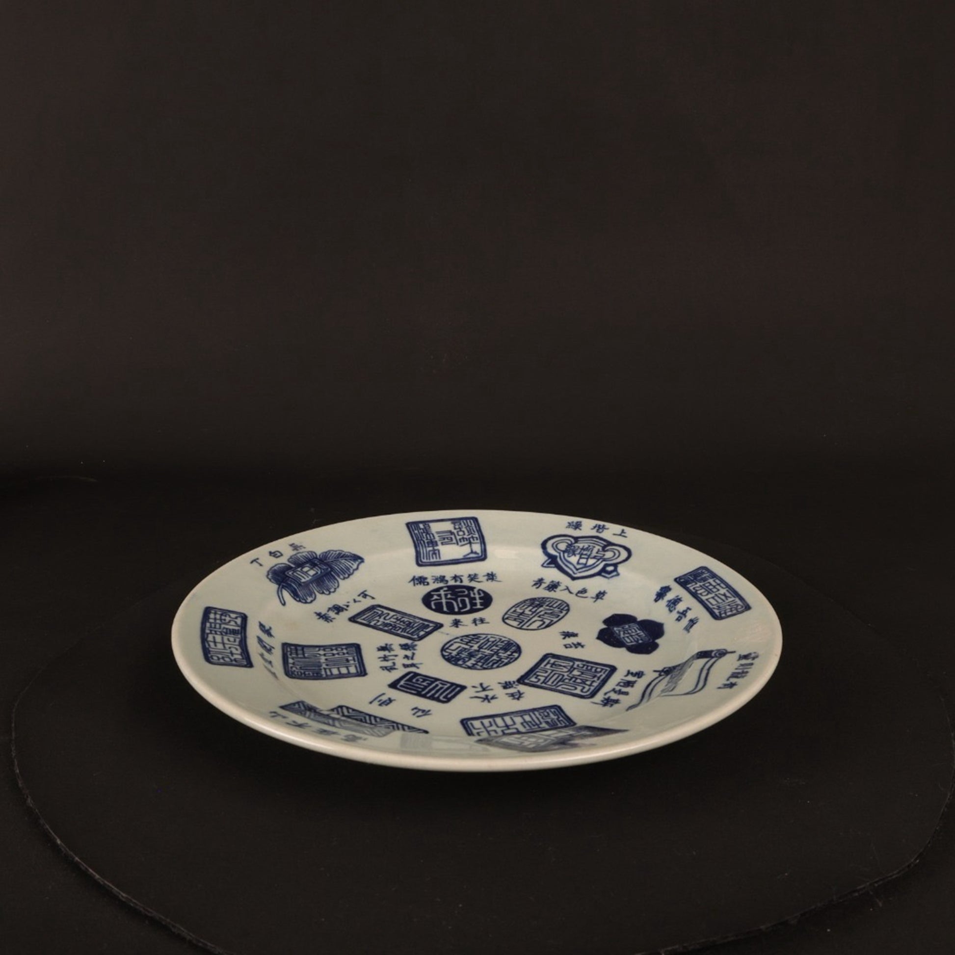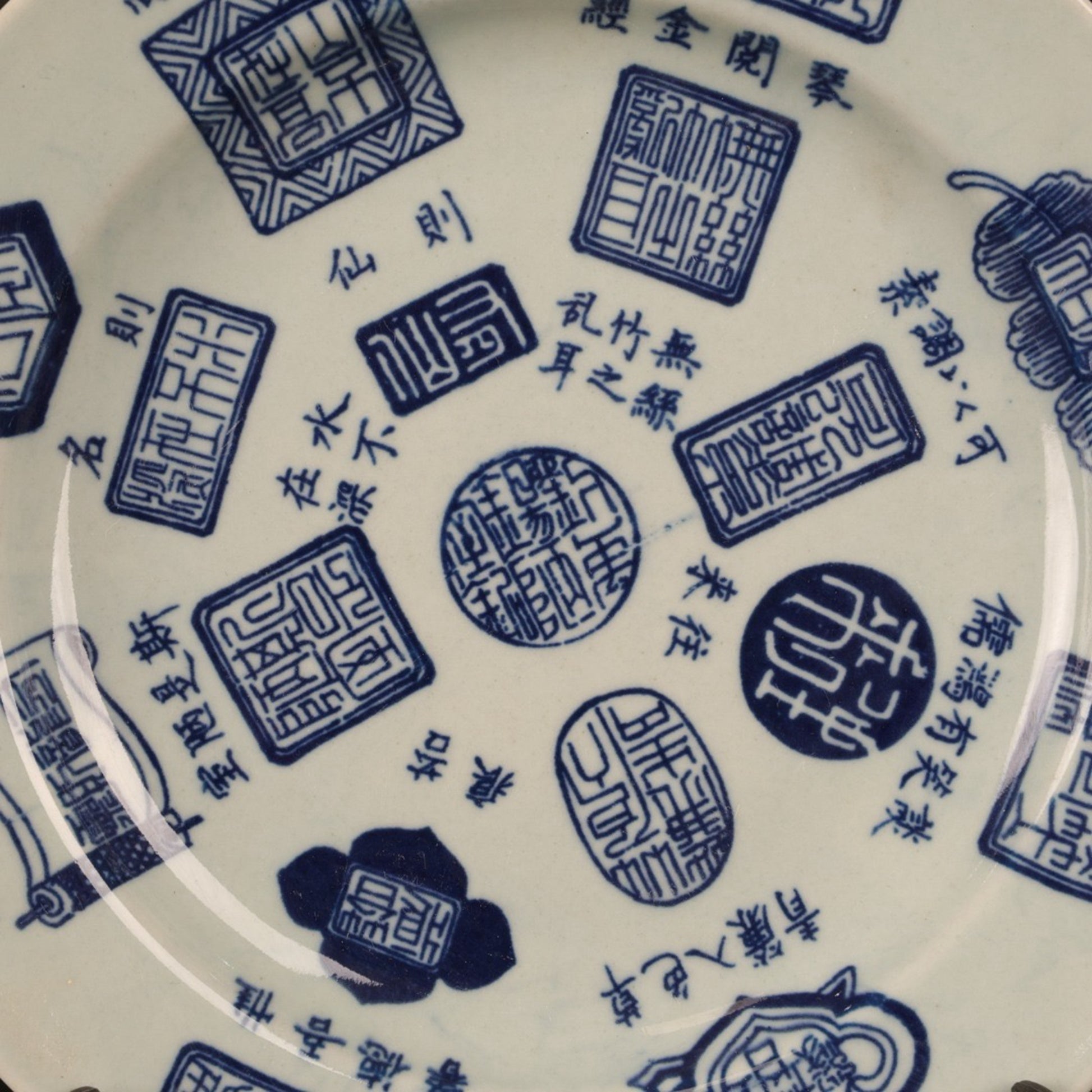 Blue and white shabby chamber inscription seal pattern appreciation plate