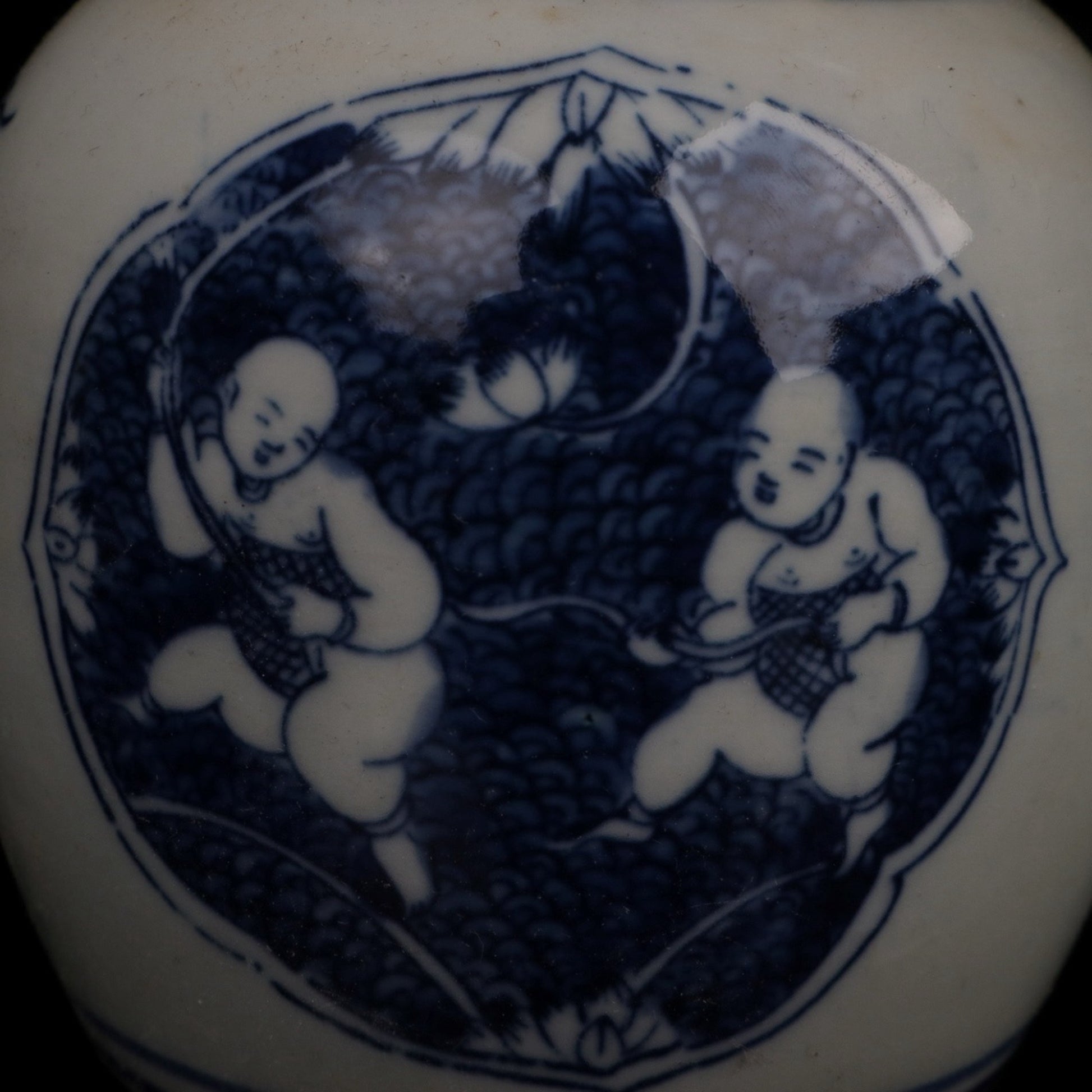 Blue and white twin noble son patterned small lid jar