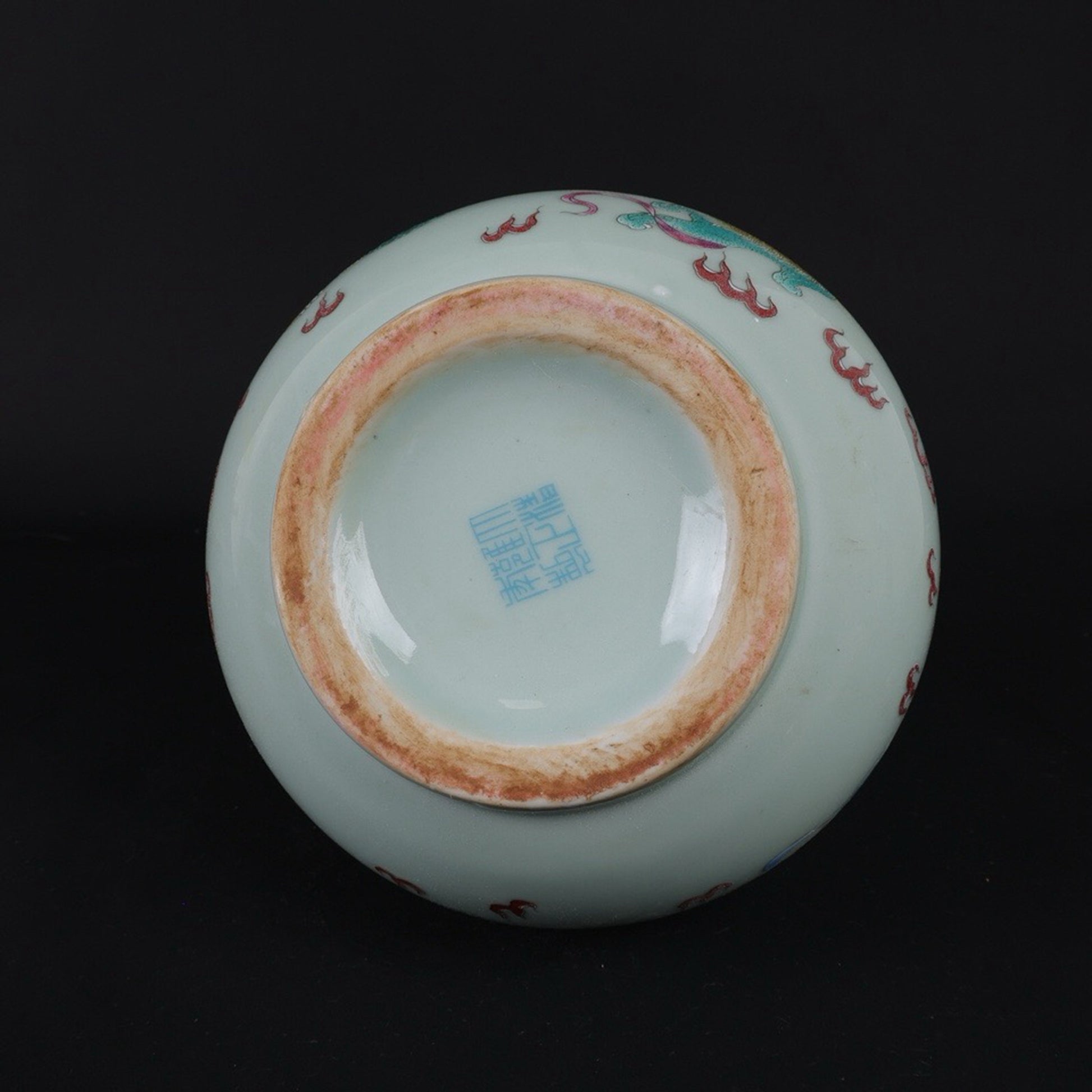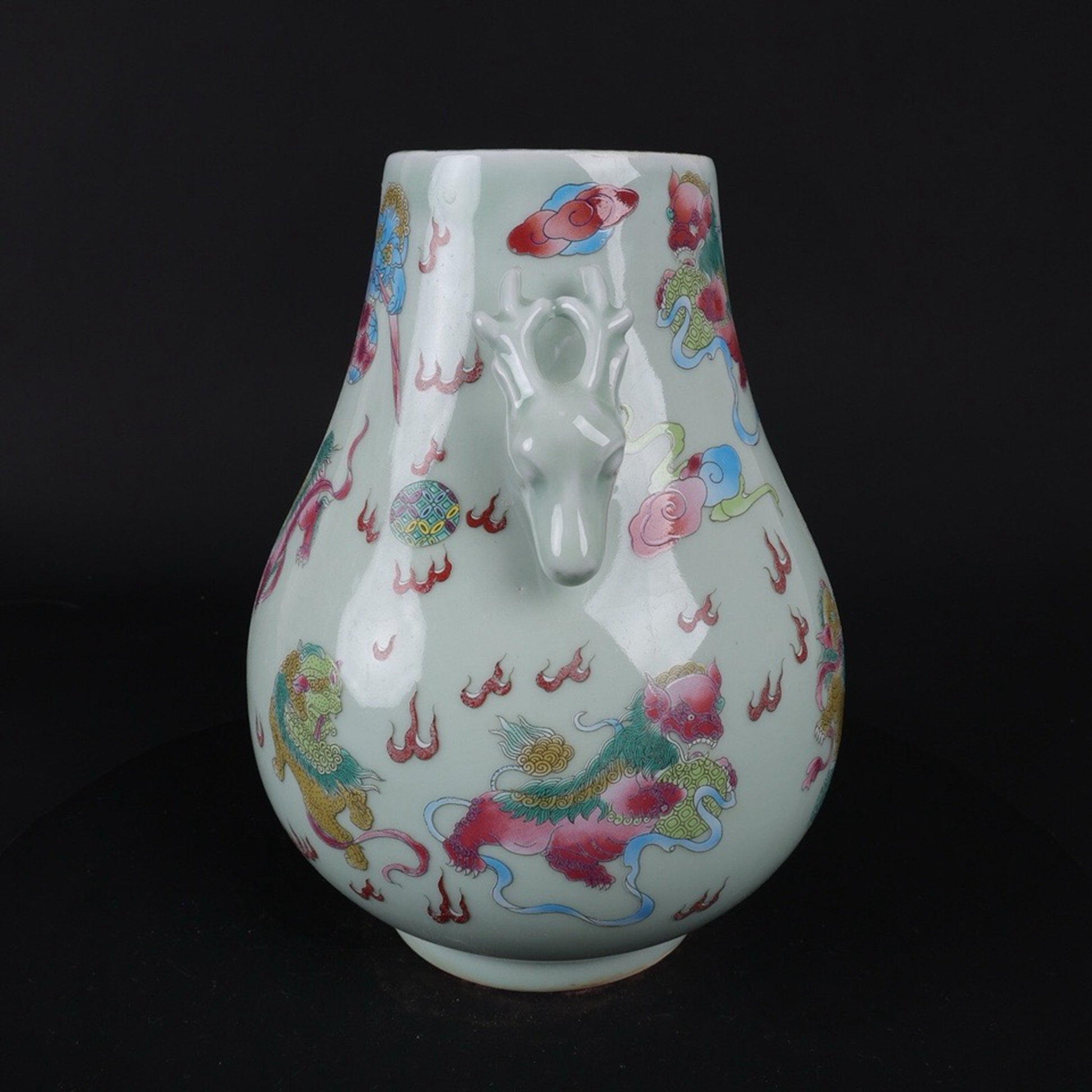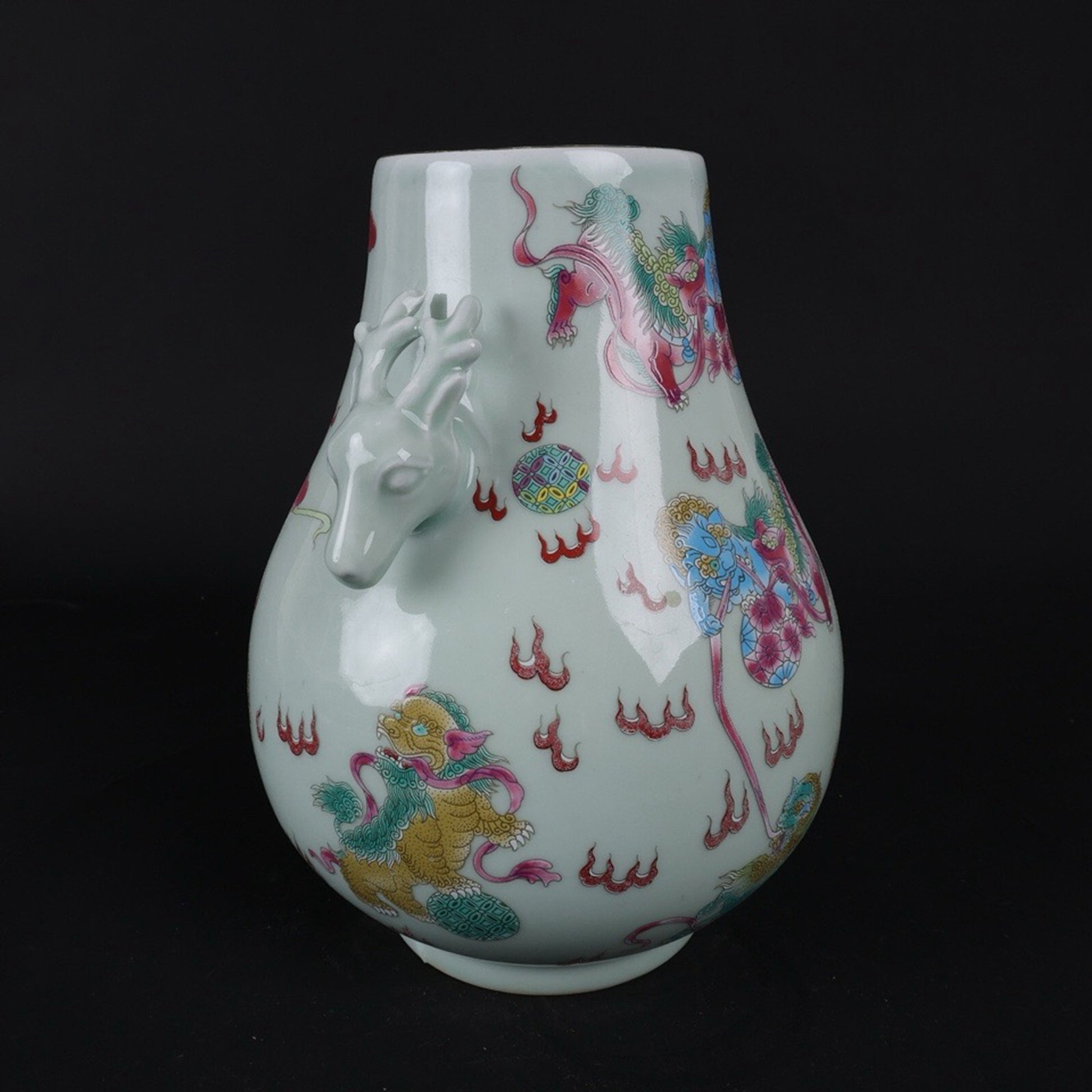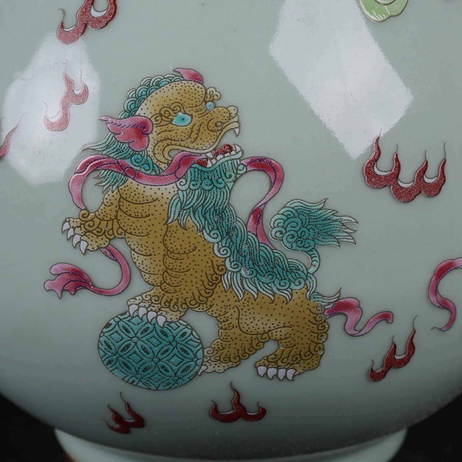 Blue glazed pink lion patterned sheep head statue