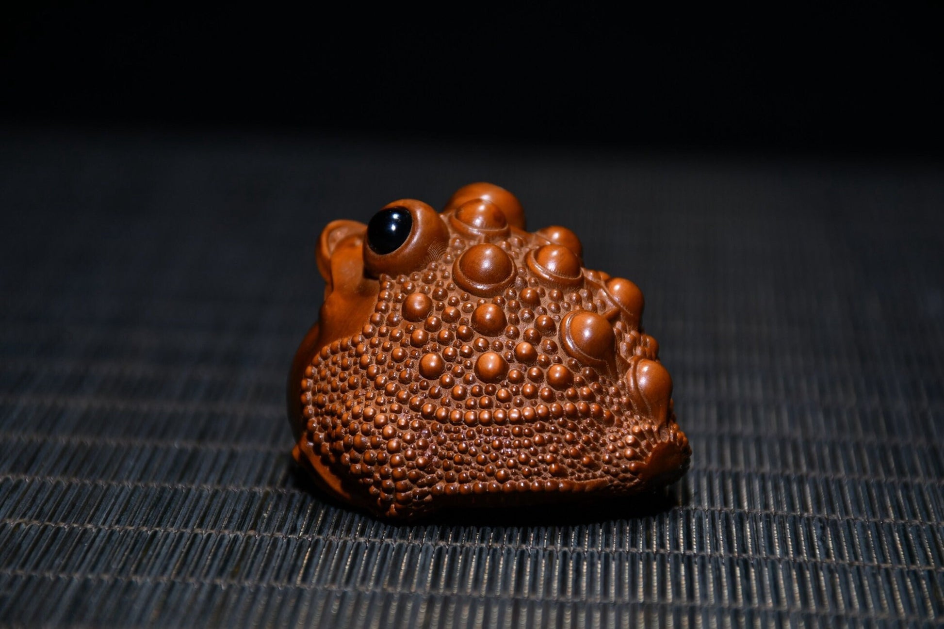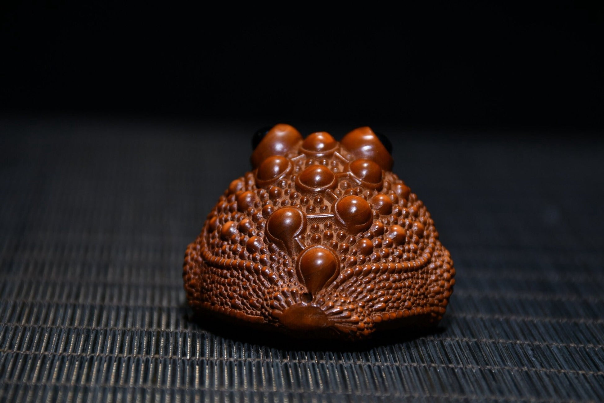 Boxwood statue Hand carved Golden Toad statue.drrs