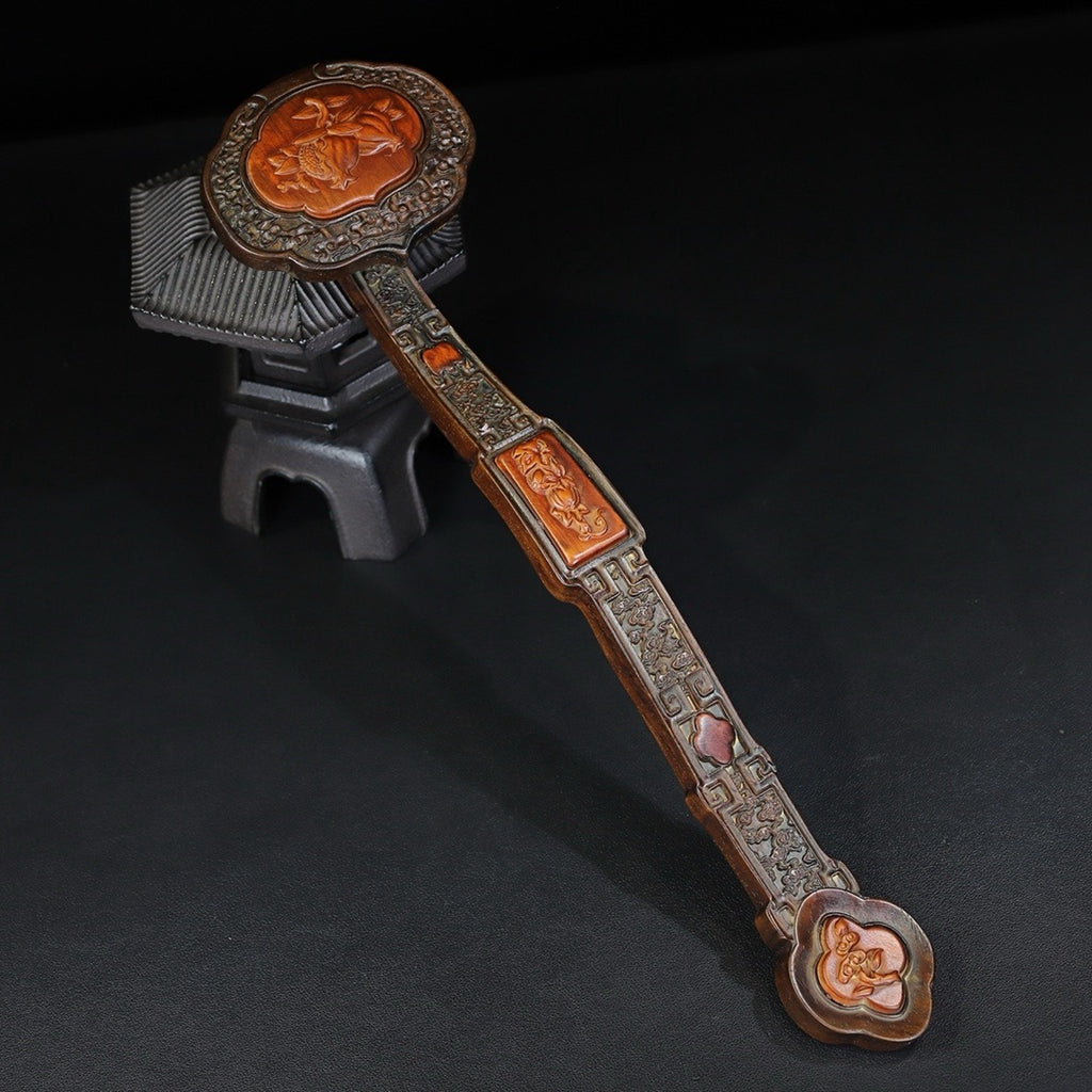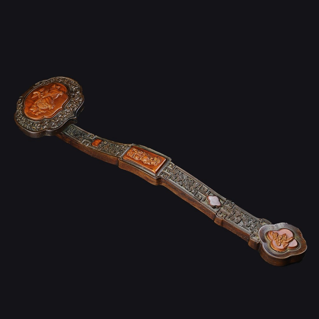 Carved rosewood auspicious cloud, melon and fruit ornaments