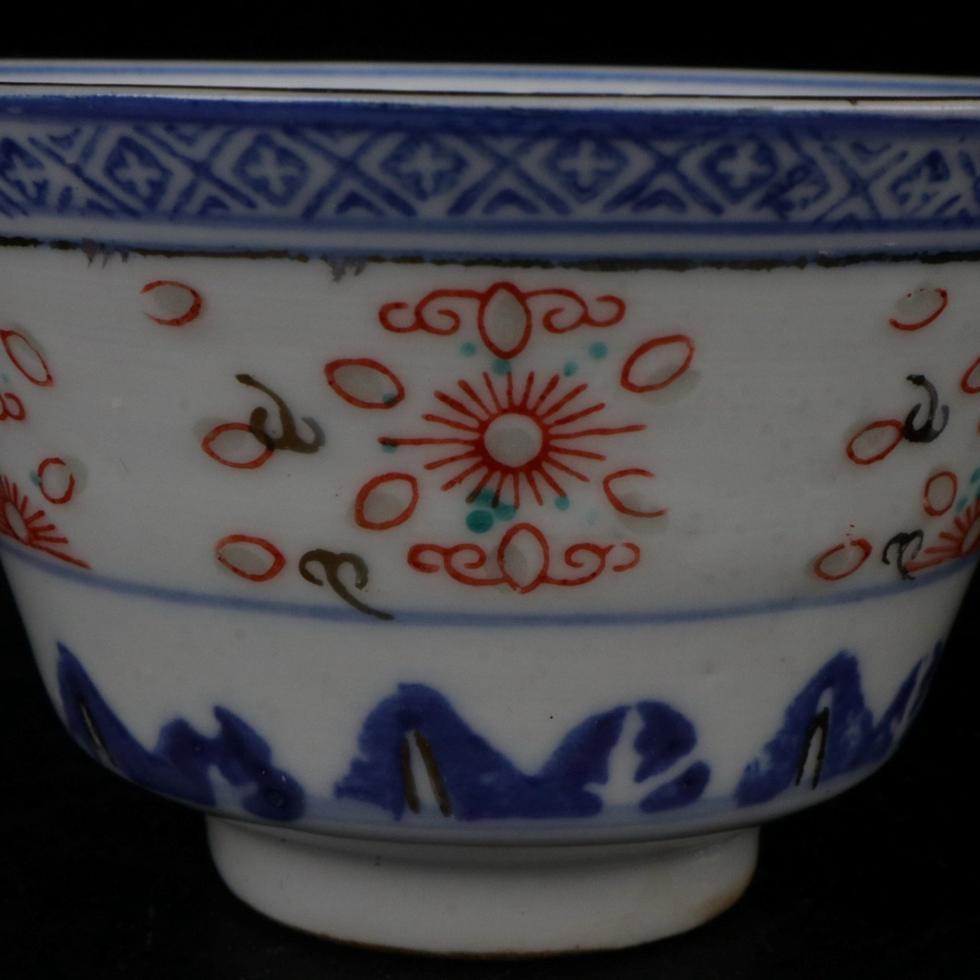Ceramic blue and white glazed covered bowl