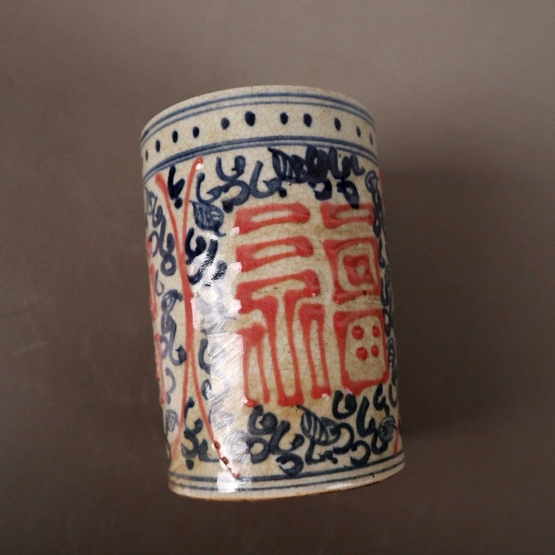 Ceramic blue and white glazed pen holder